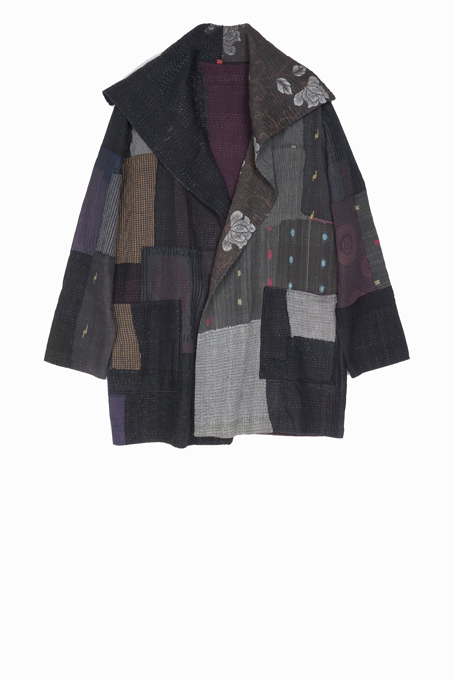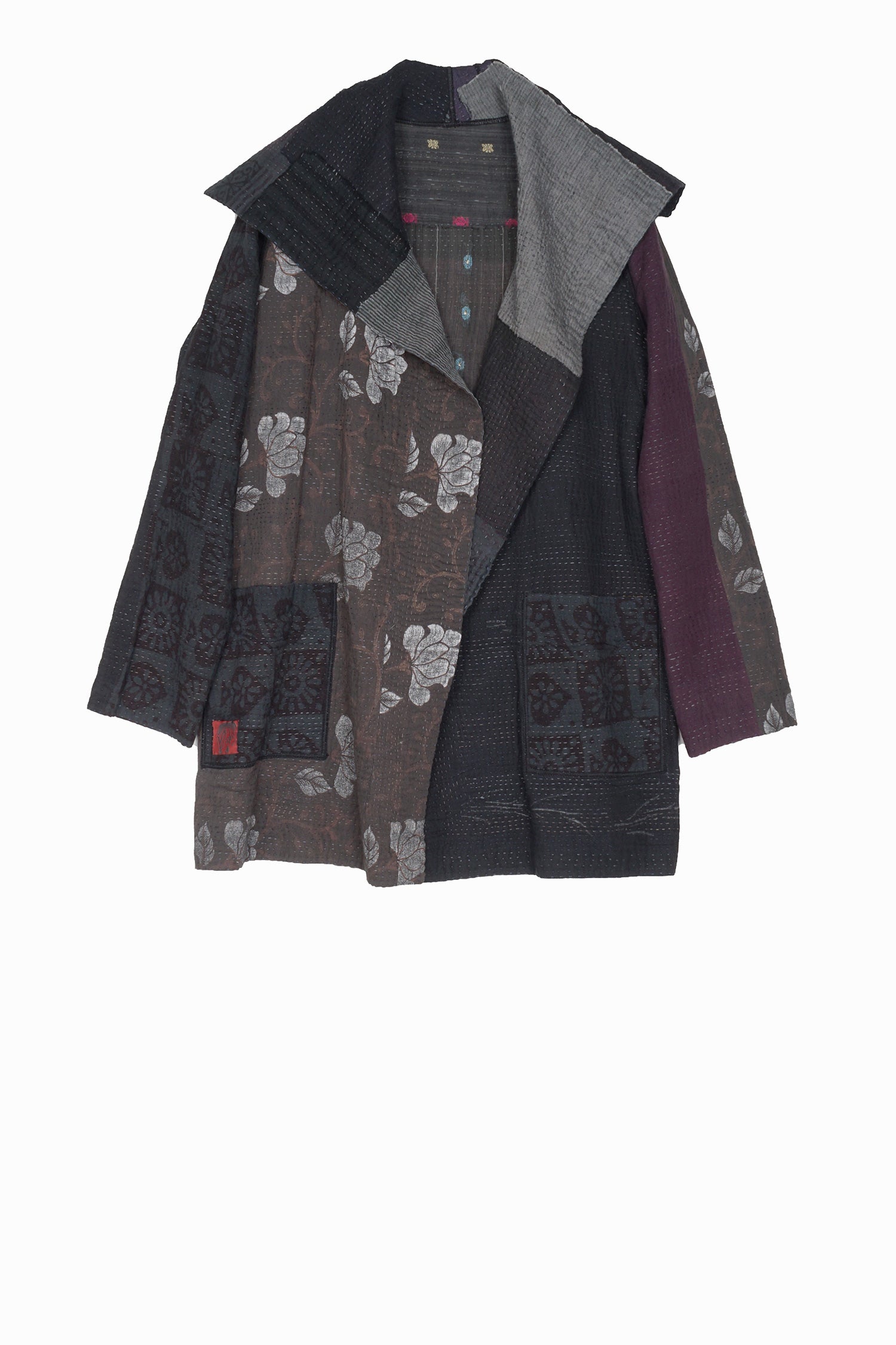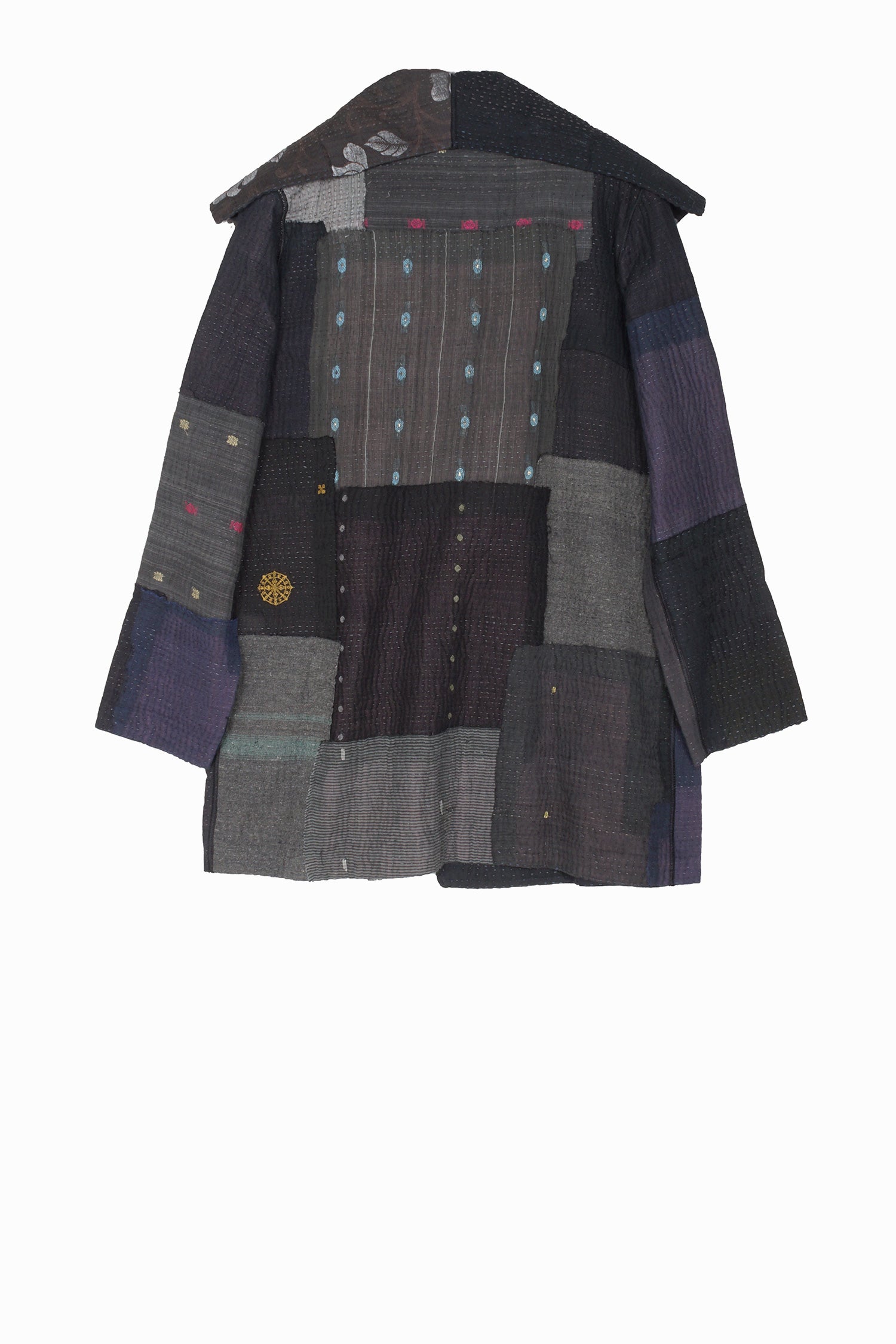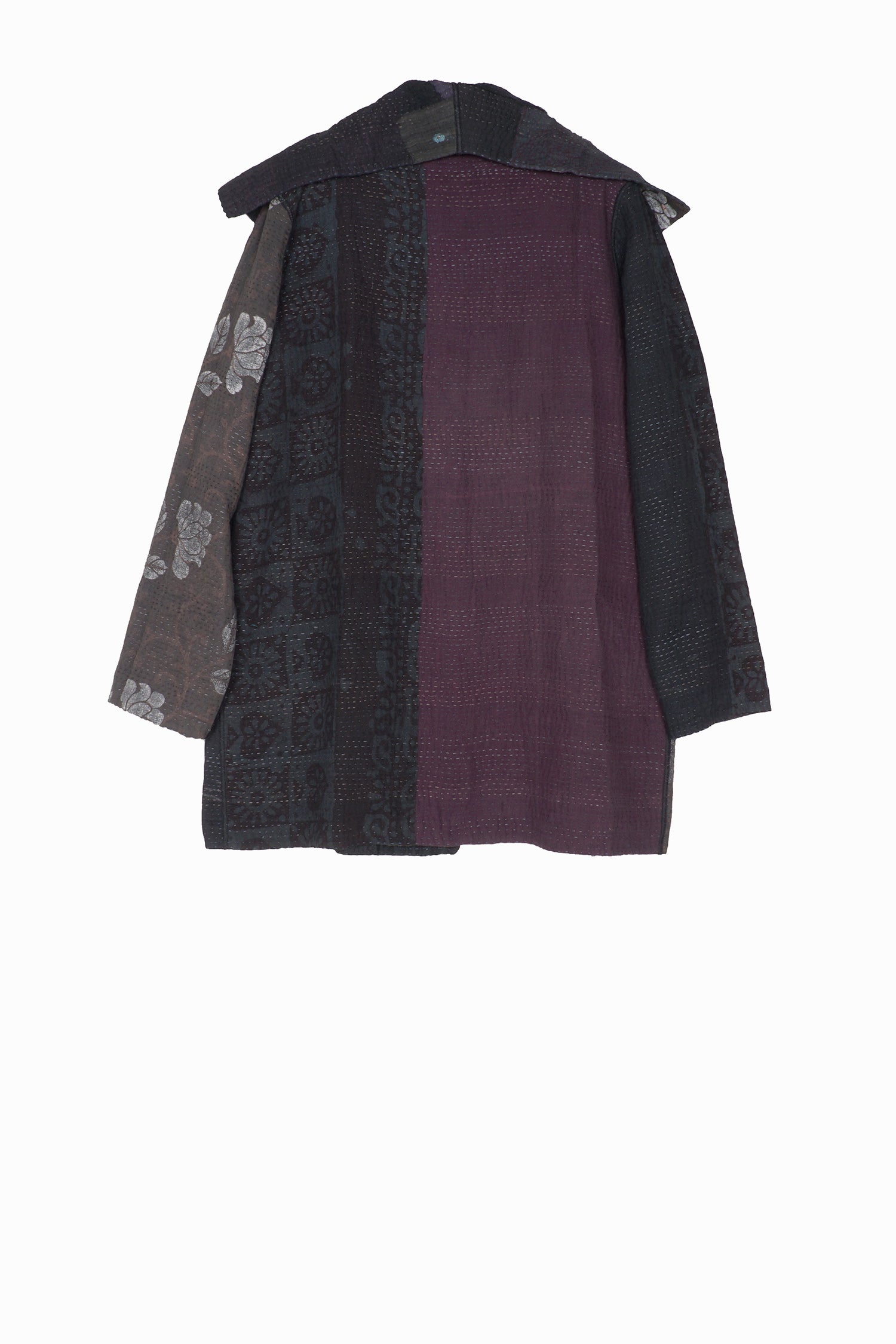 FRAYED PATCH MIX KANTHA POCKET JKT - fm4002-blk -