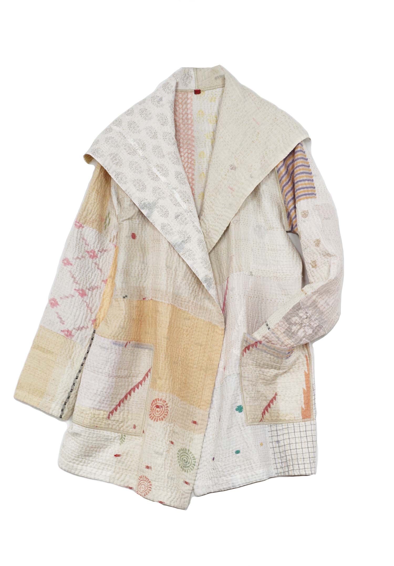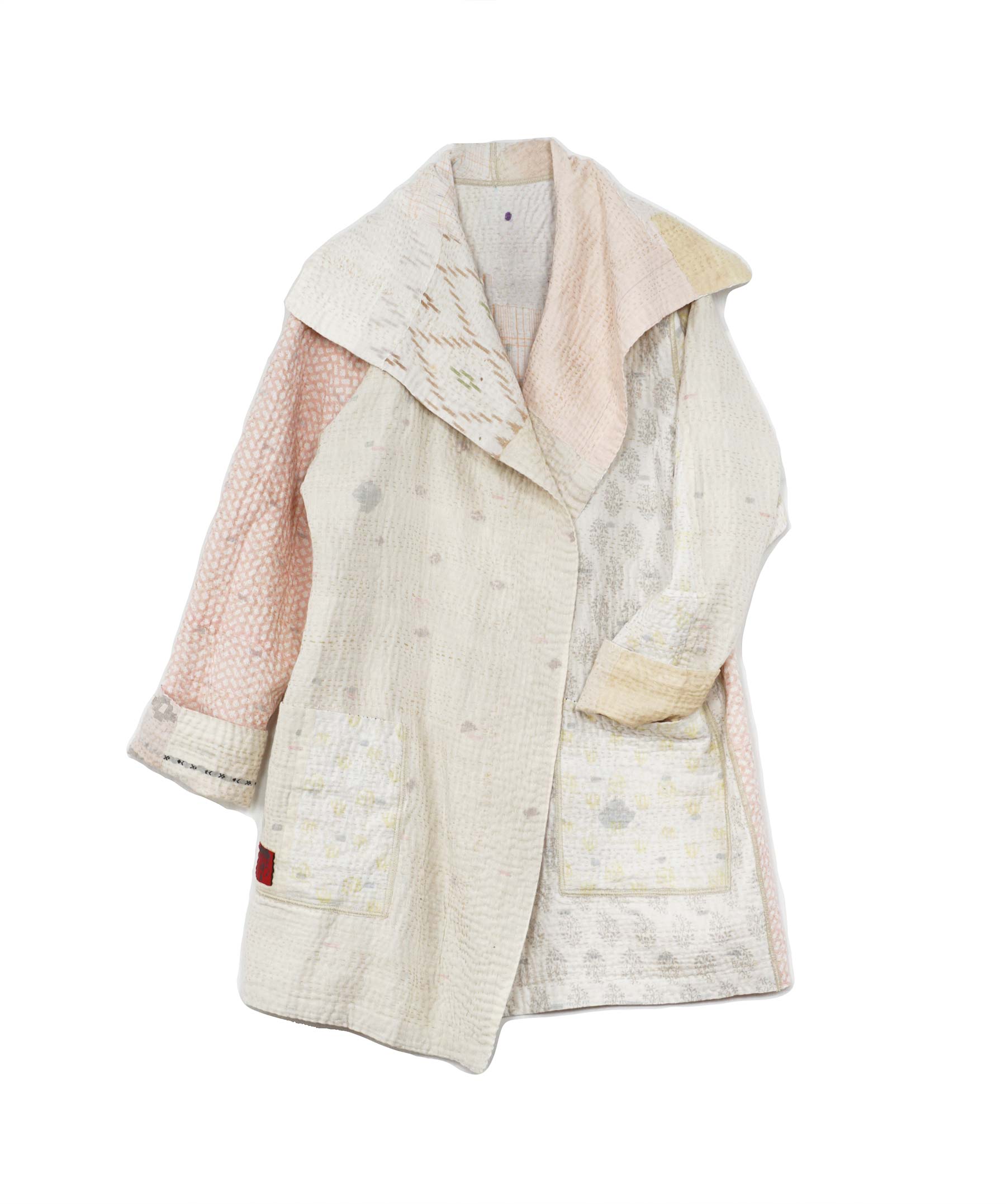 4 Layer Vintage Saris with Hand Stitches on Entire Garment - Reversible