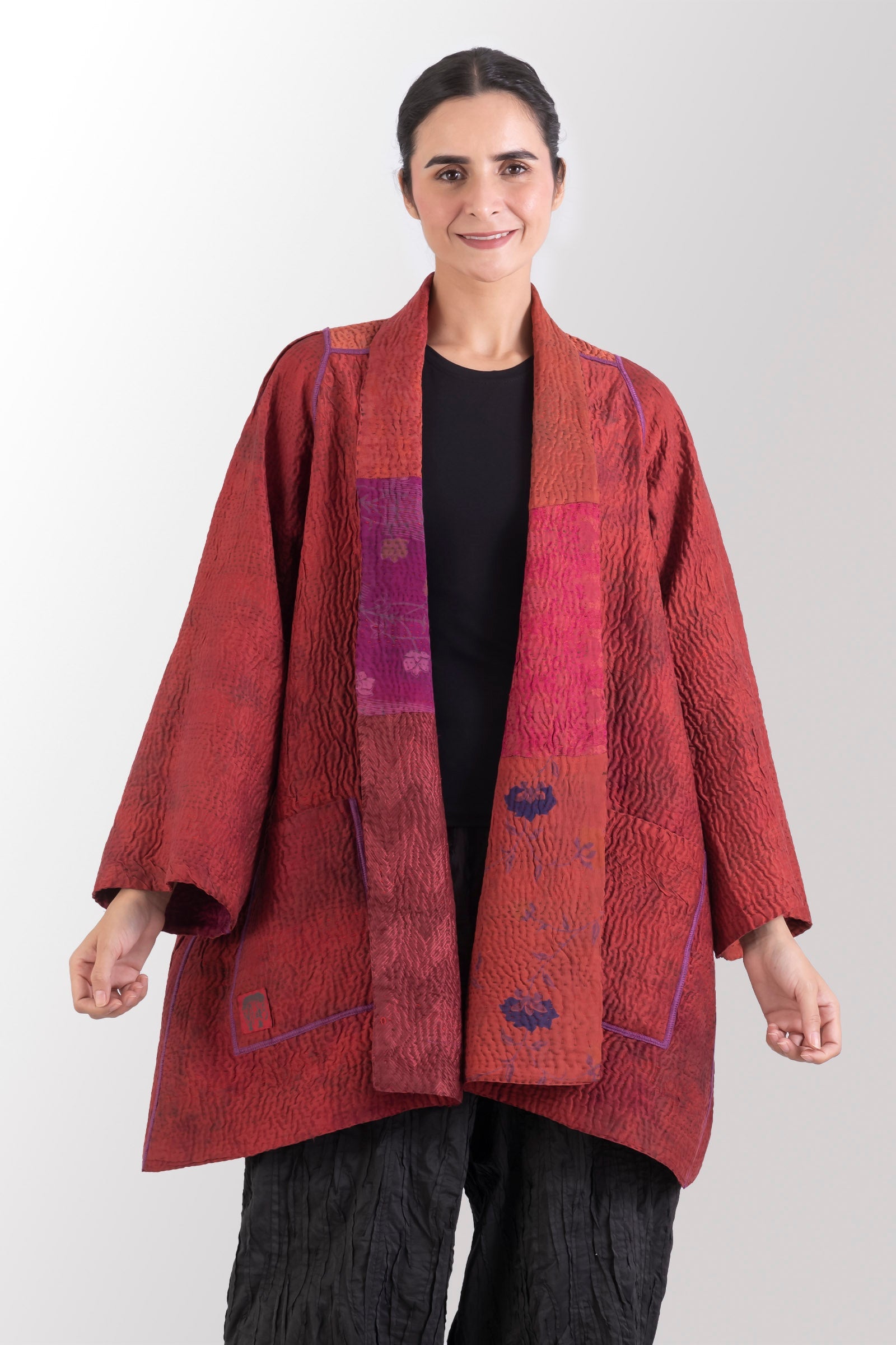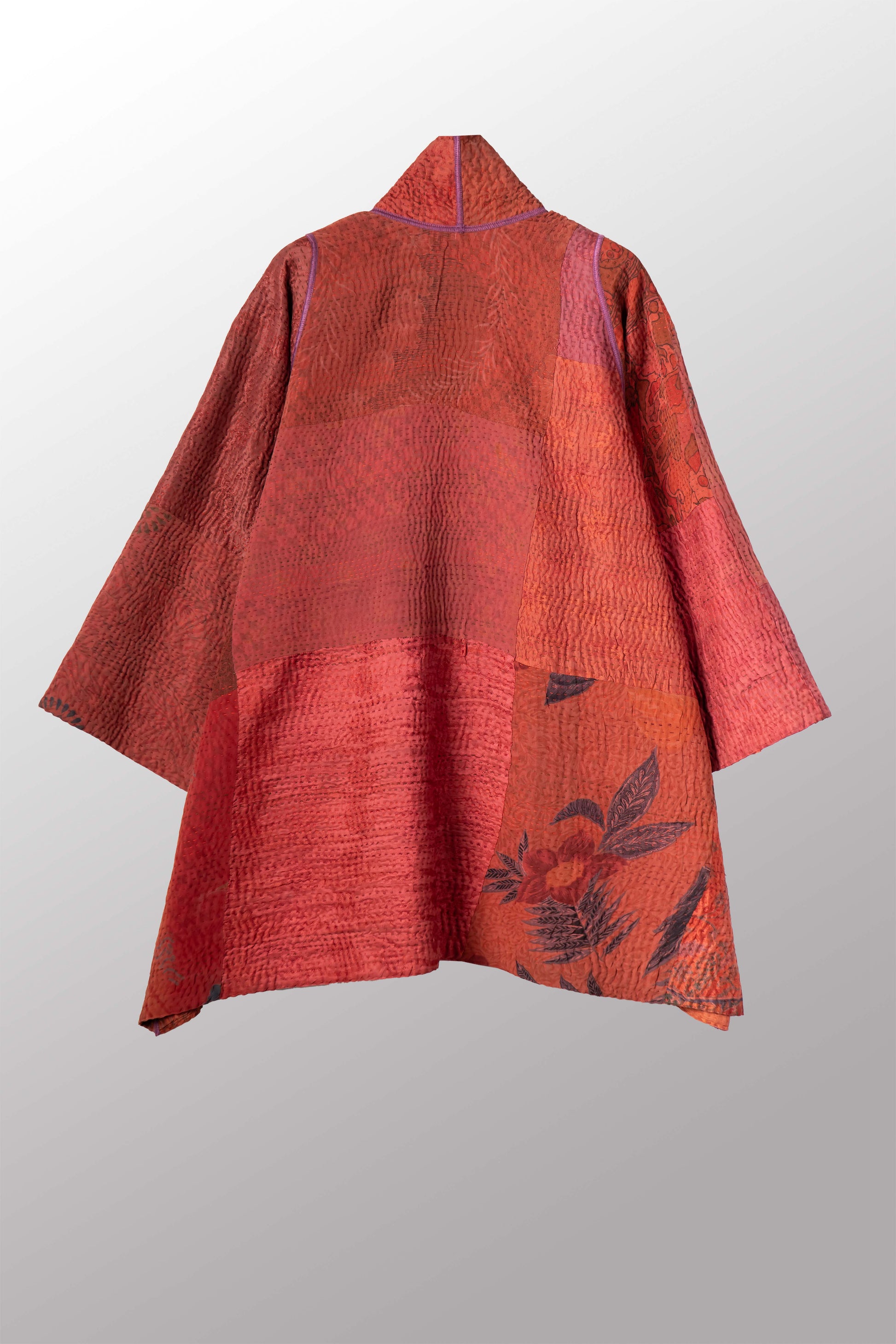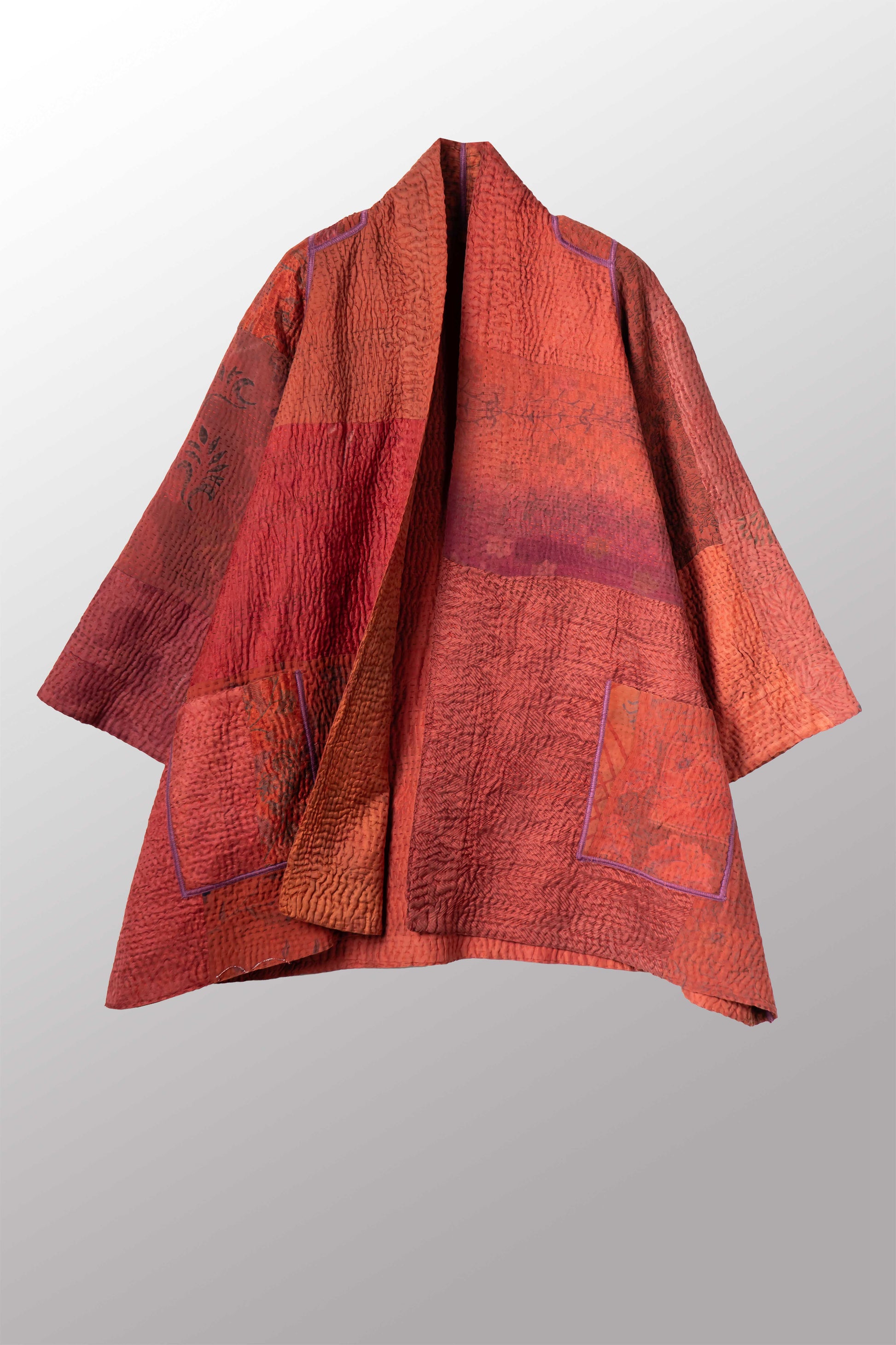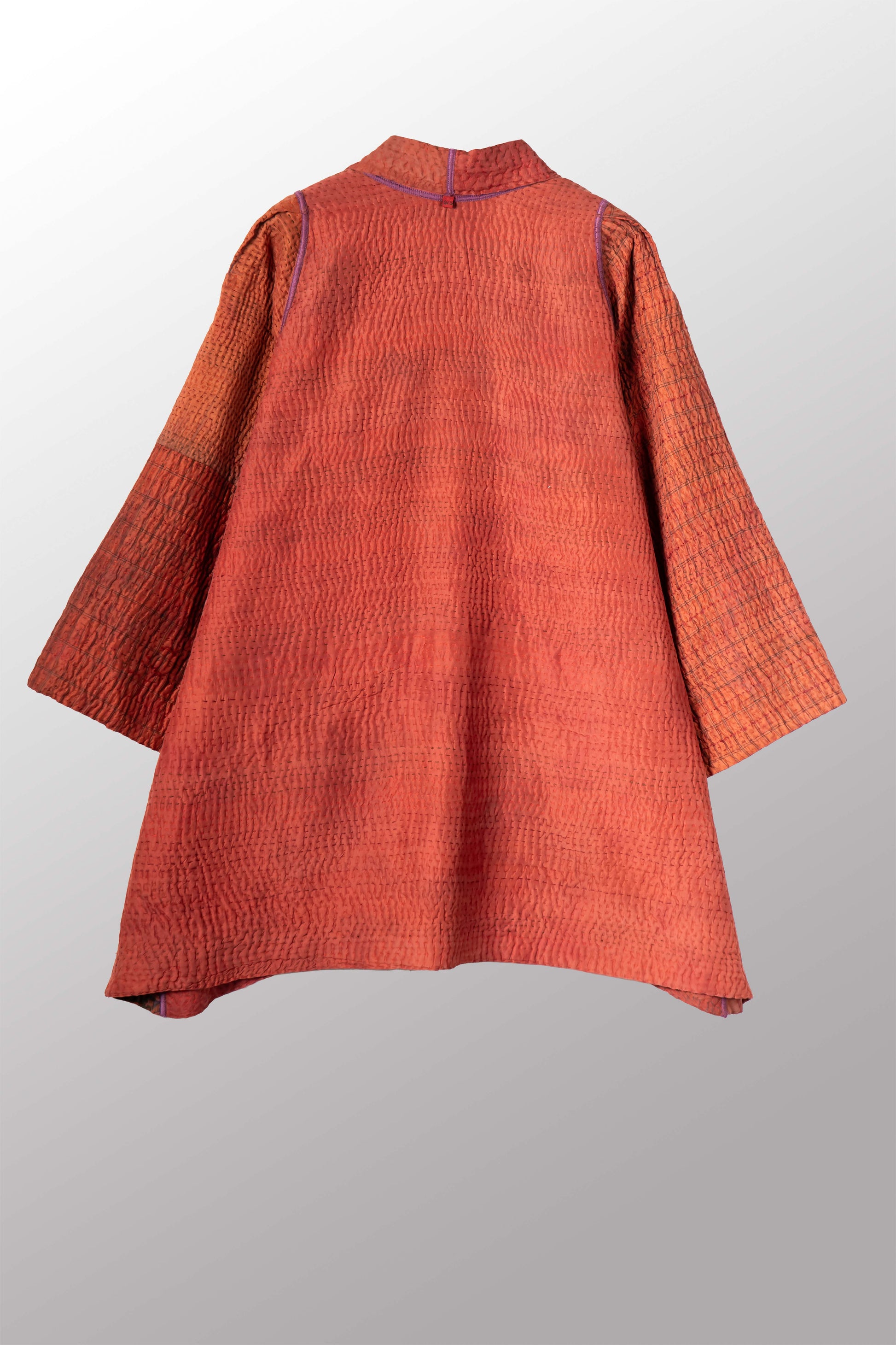 GEORGETTE JACQUARD VINTAGE SILK PATCH KANTHA A-LINE JACKET - gj4003-org -