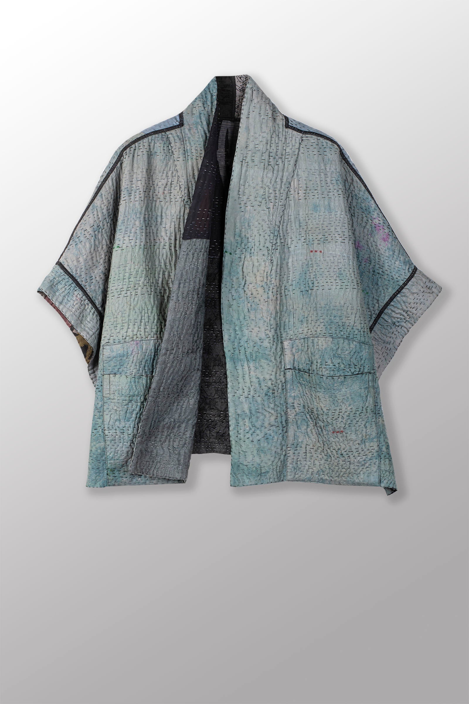 4 Layer Vintage Saris with Hand Stitches on Entire Garment - Reversible