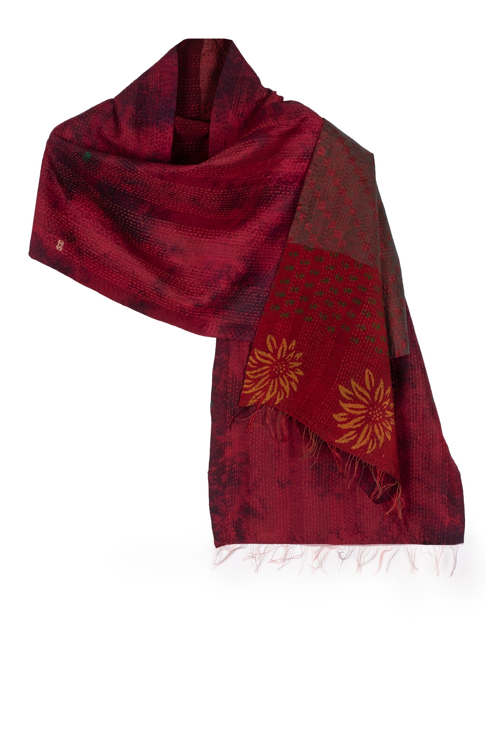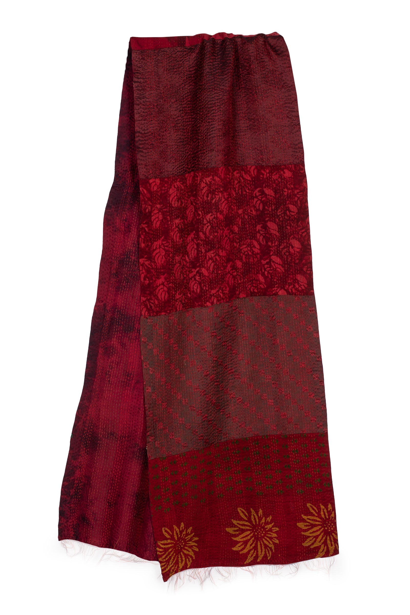 GEORGETTE JACQUARD VINTAGE SILK PATCH KANTHA SCARF SHORT - gj2805-red -