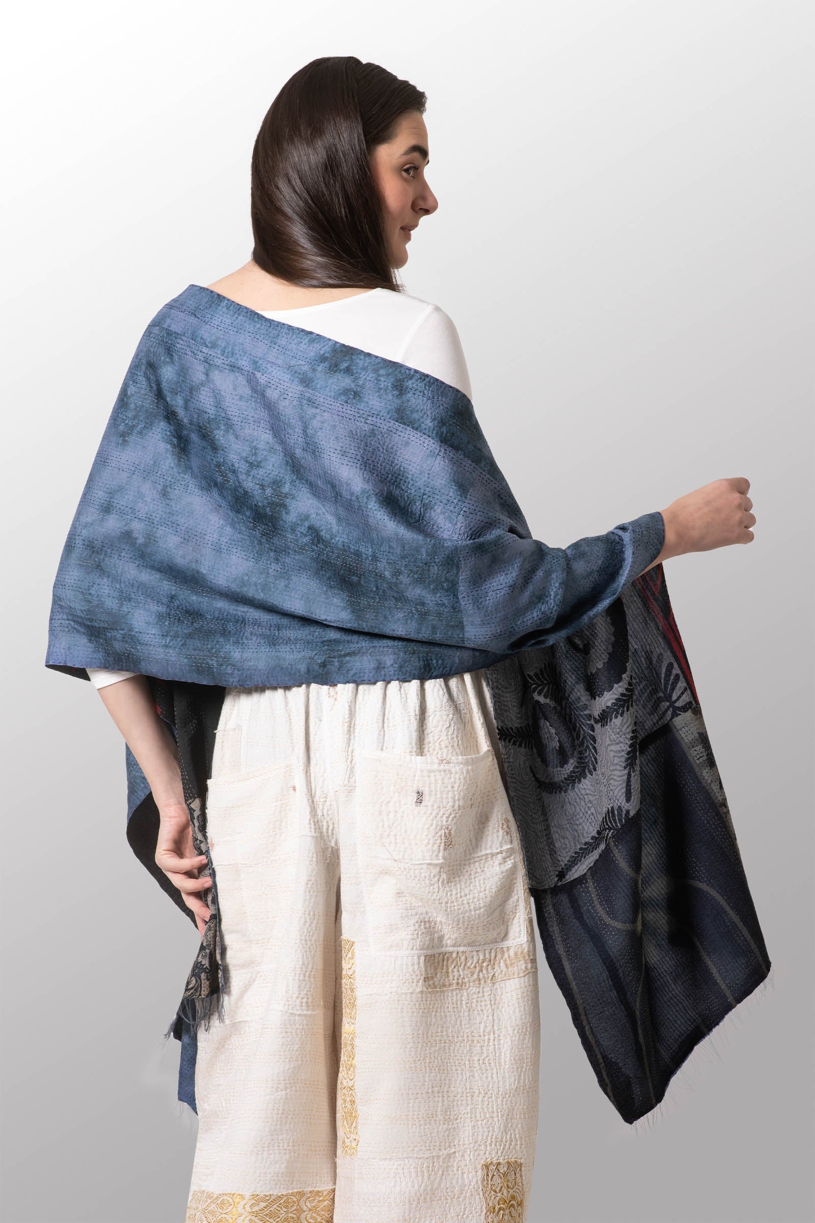GEORGETTE JACQUARD VINTAGE SILK PATCH KANTHA SCARF STANDARD - gj2801-blk -