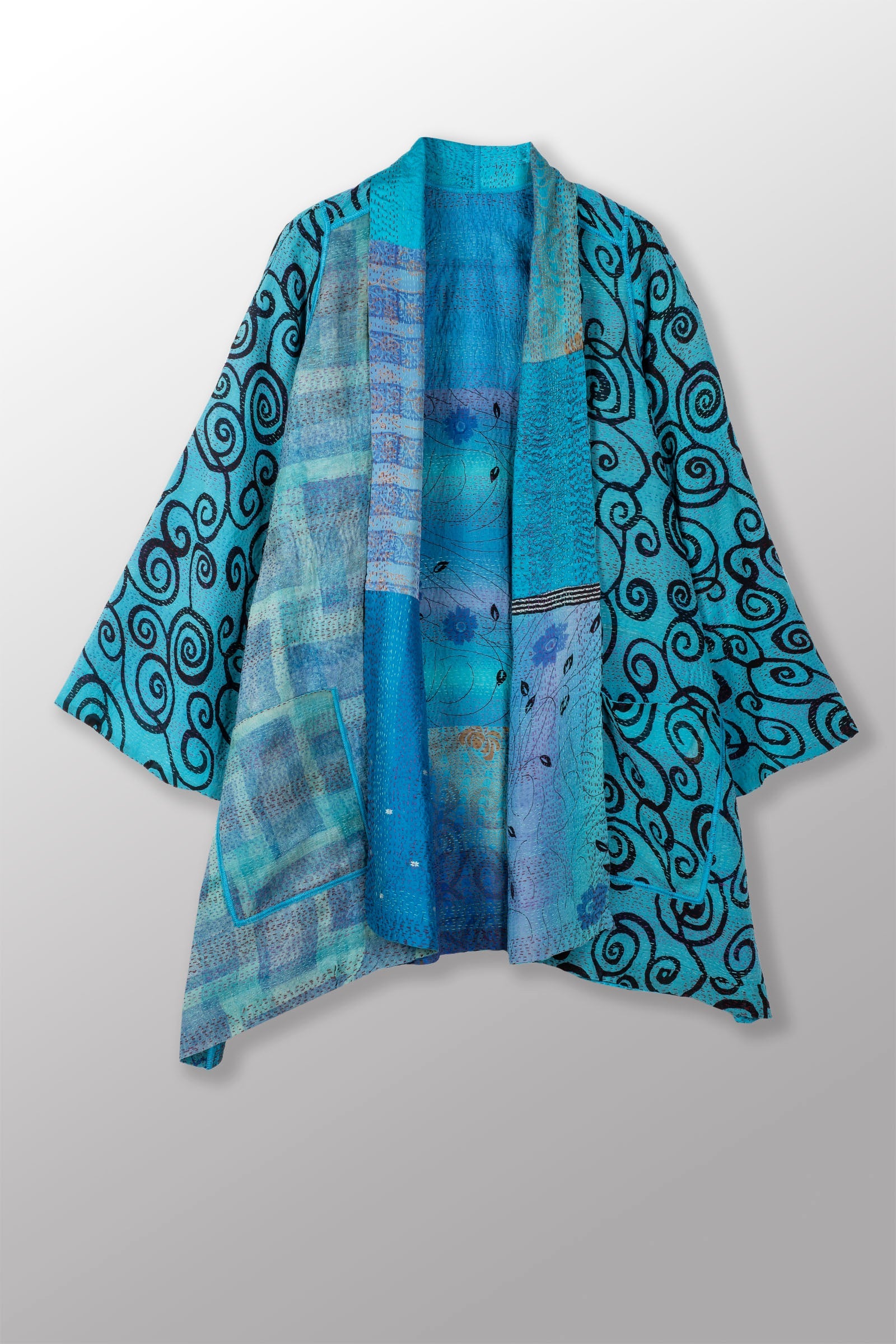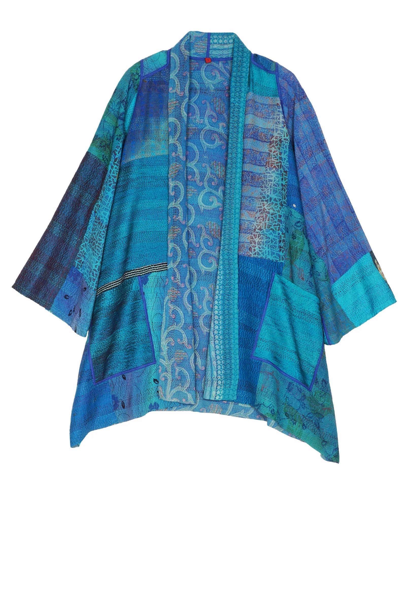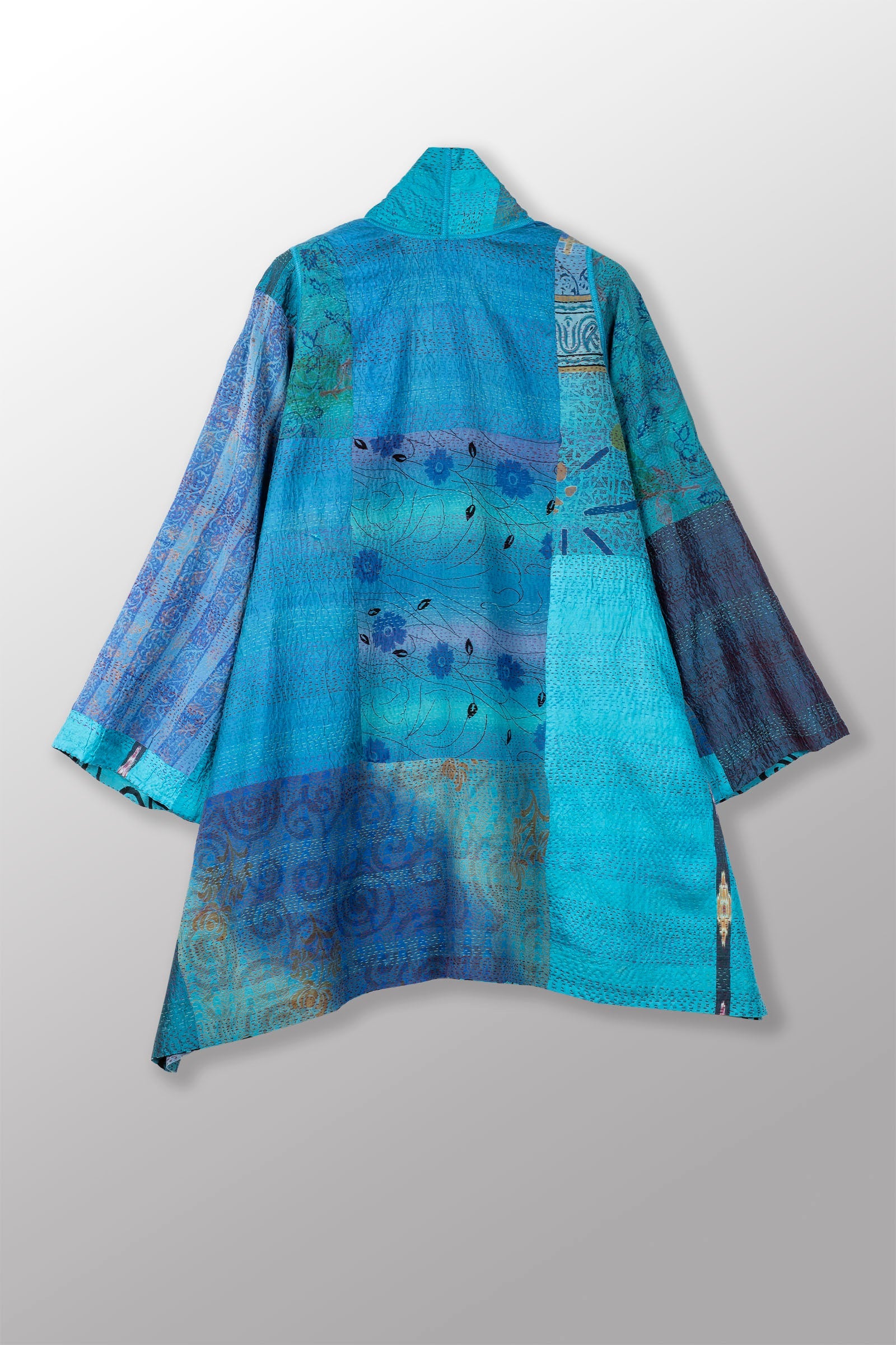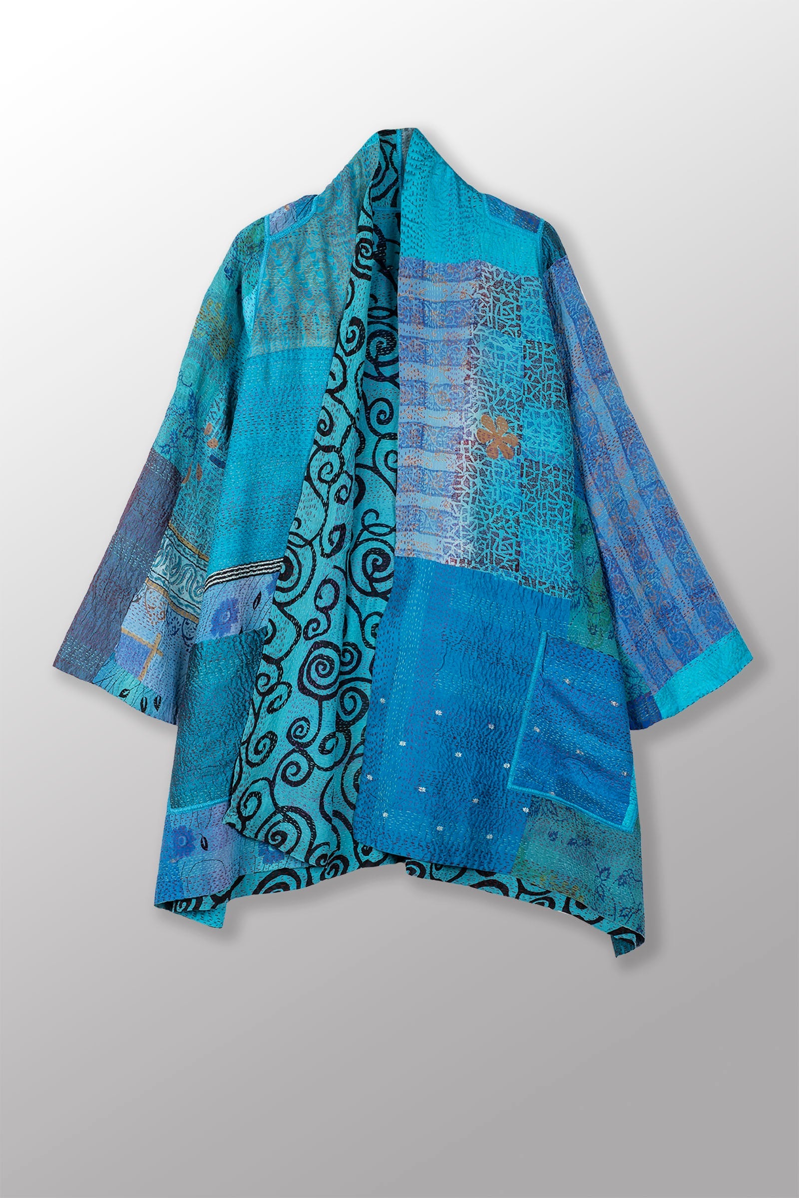 GEORGETTE VINTAGE SILK PATCH KANTHA A-LINE JKT - gs2003-tuq -