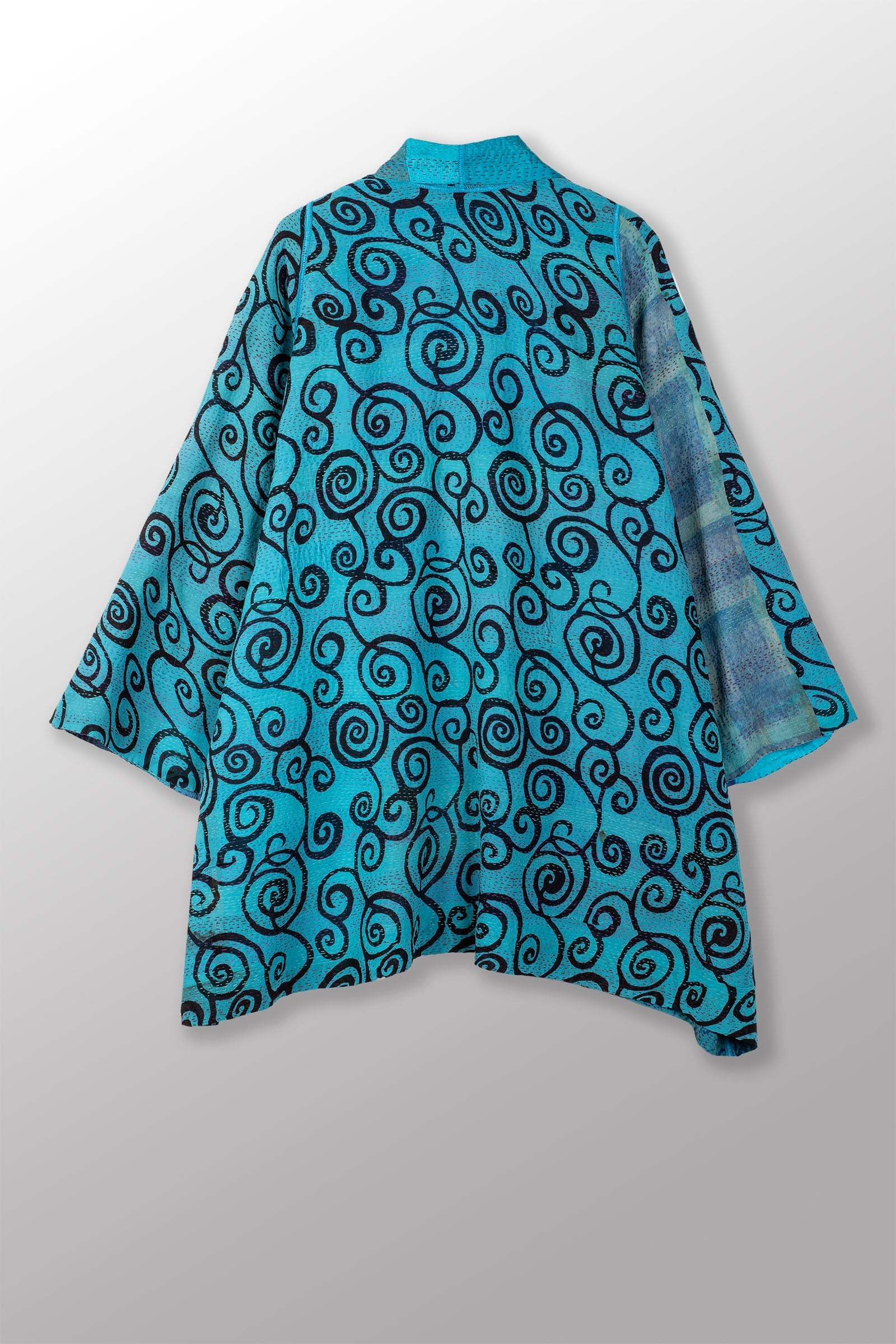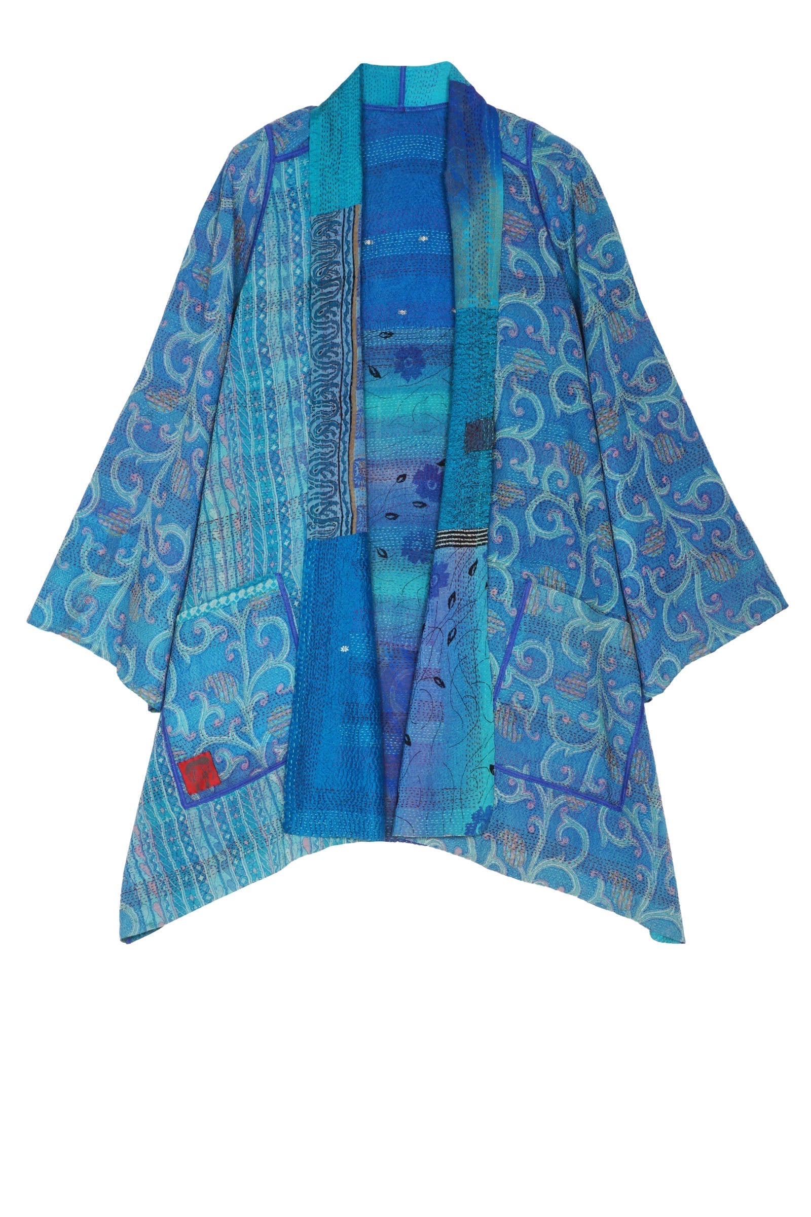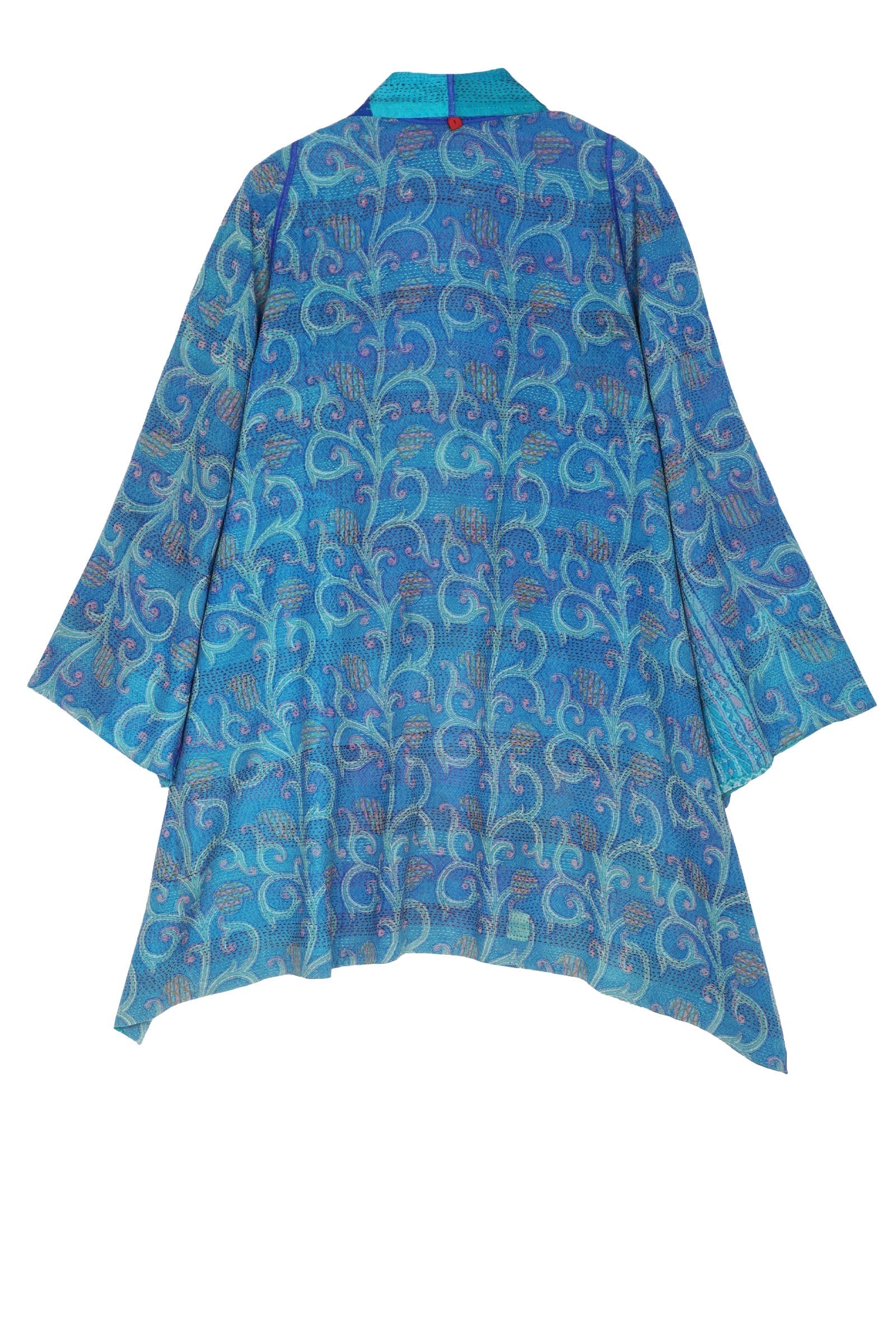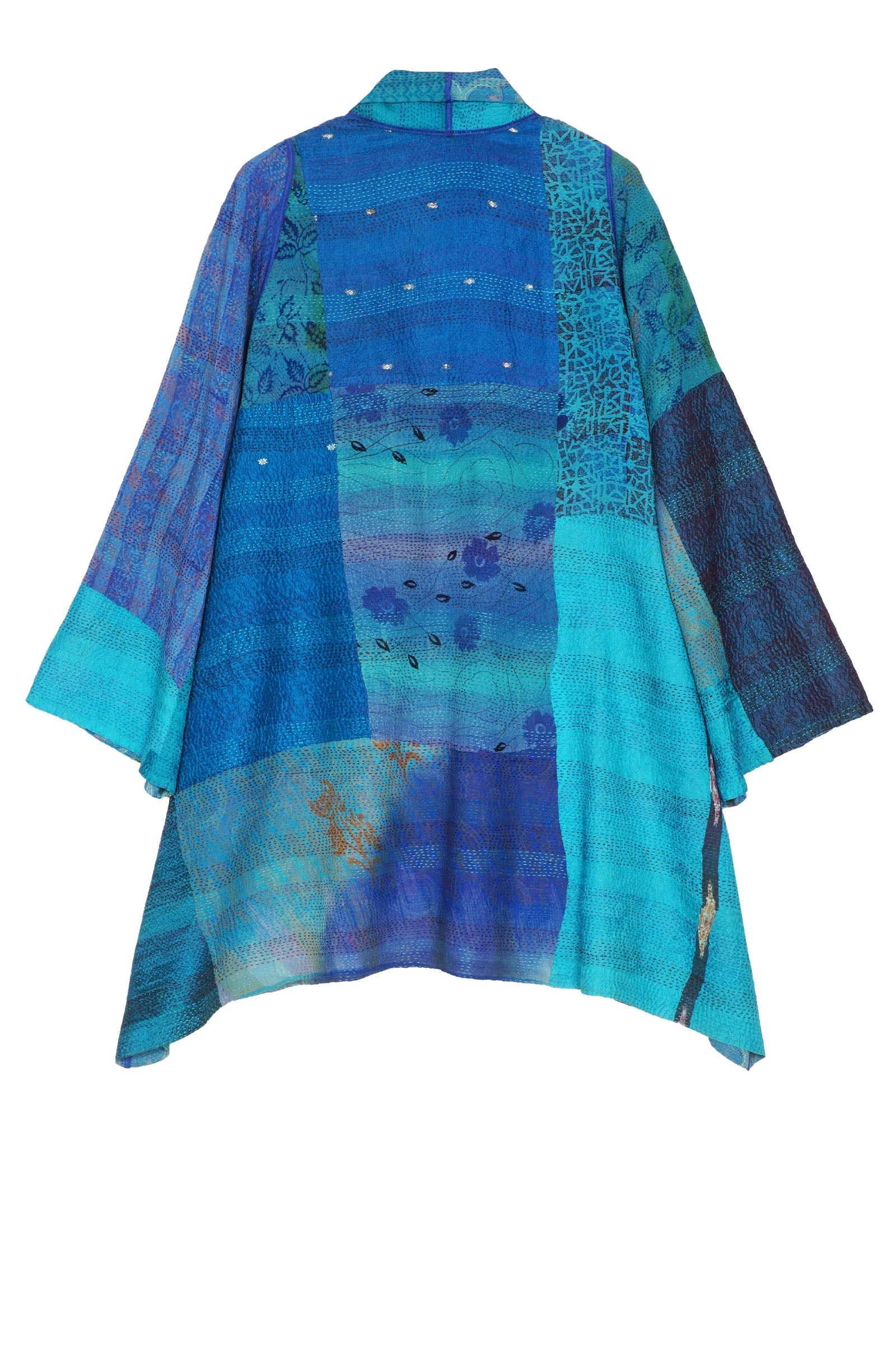 GEORGETTE VINTAGE SILK PATCH KANTHA A-LINE JKT - gs2003-tuq -