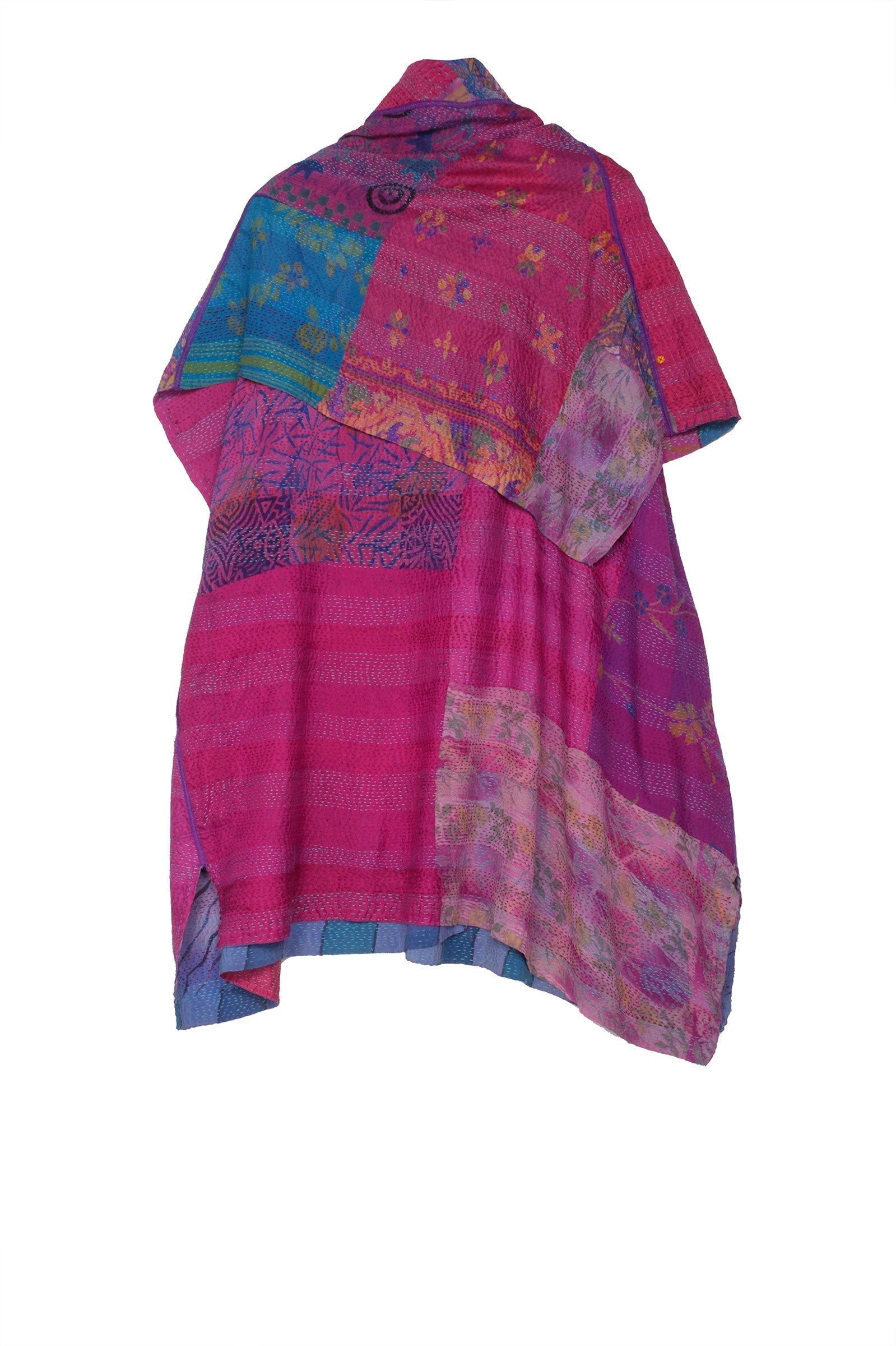 2 Layer Vintage Saris with Hand Stitches on Entire Garment - Reversible