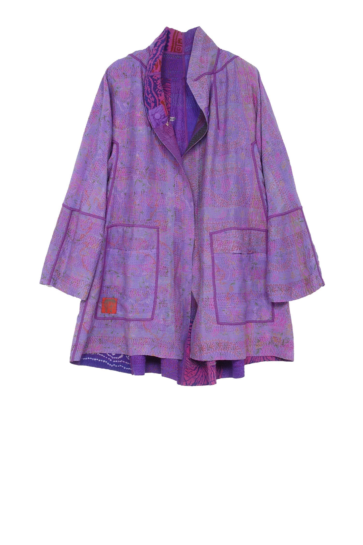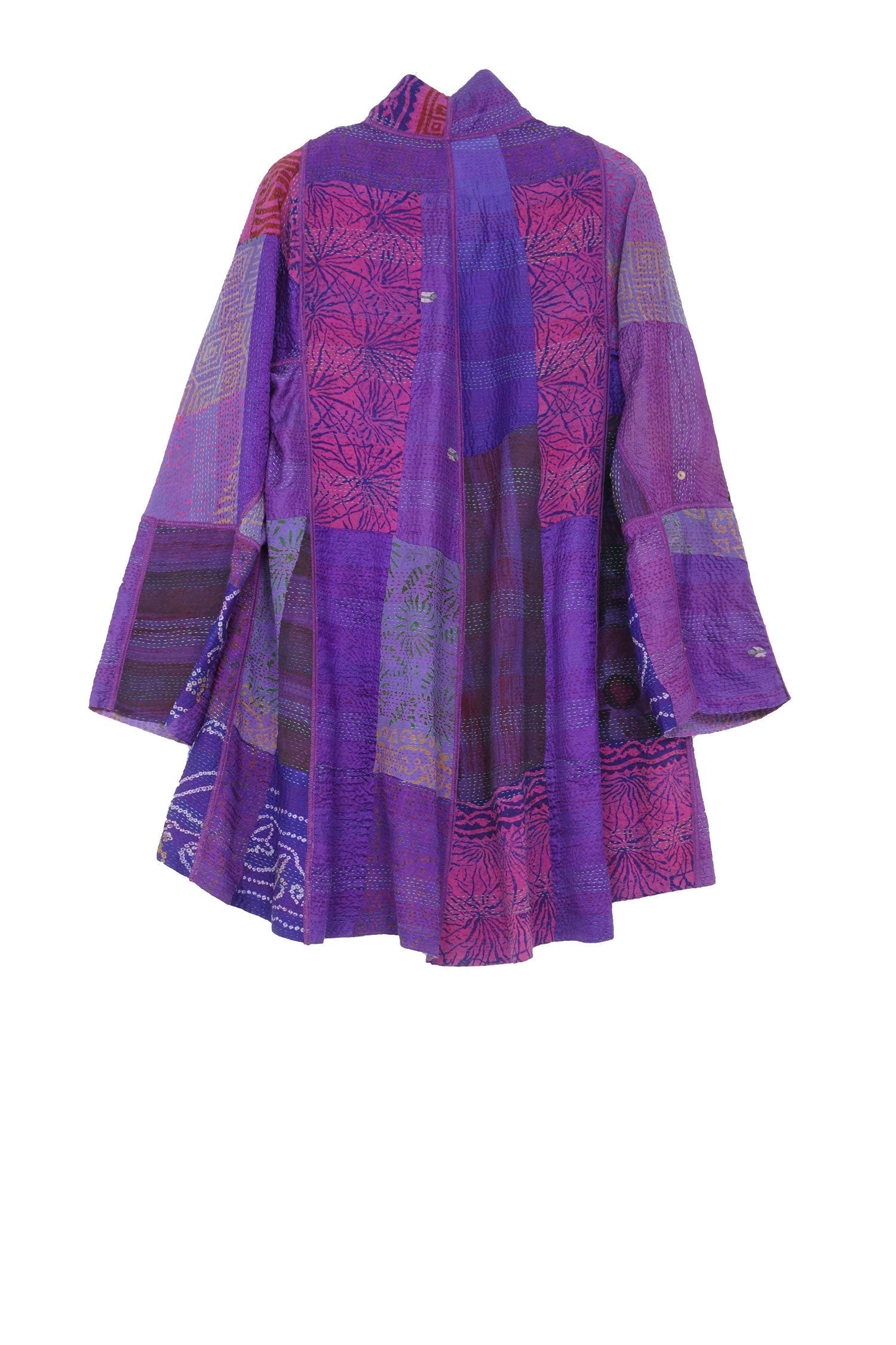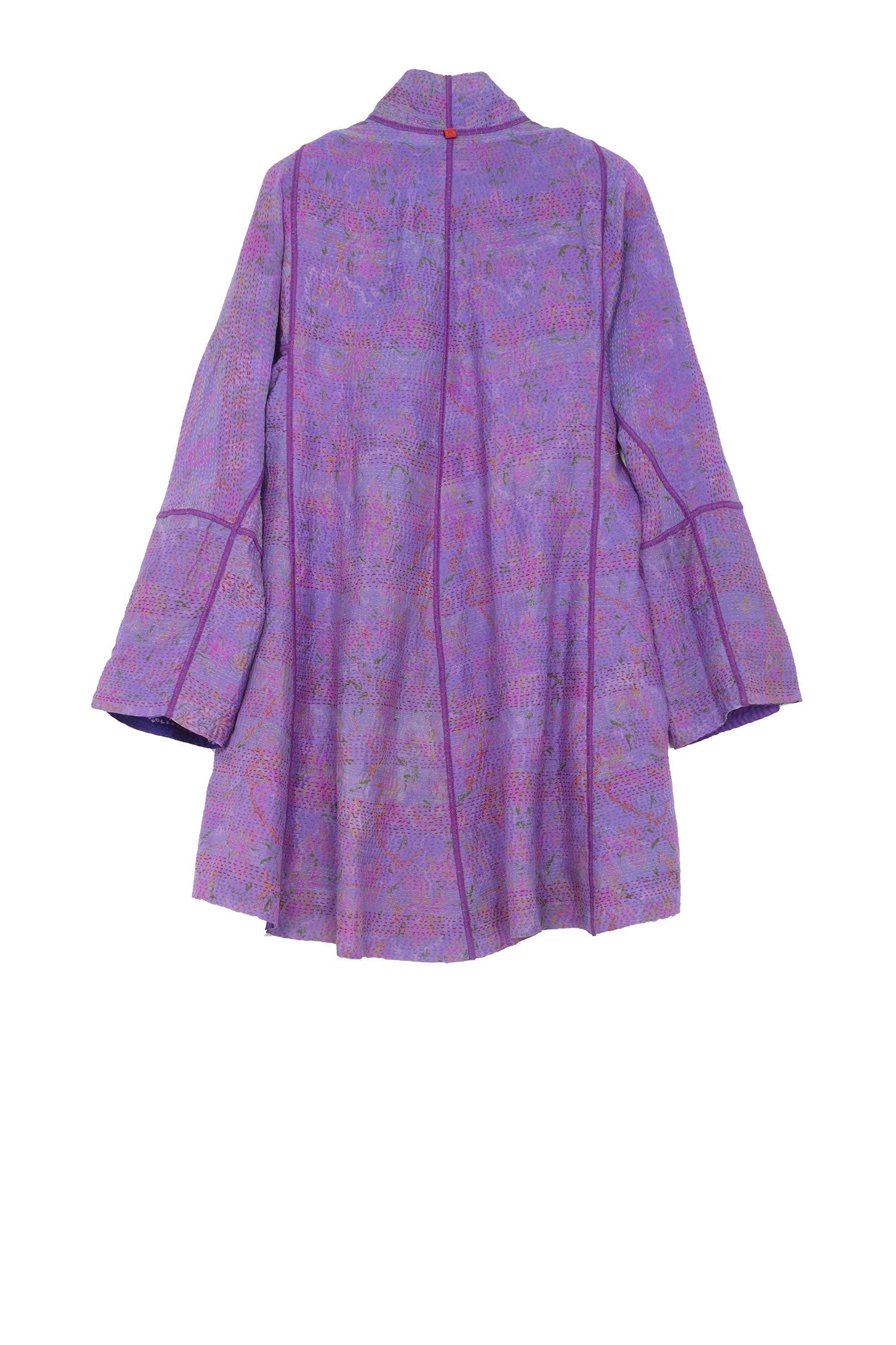 GEORGETTE VINTAGE SILK PATCH KANTHA FLARE LONG JKT - gs2021-prp -