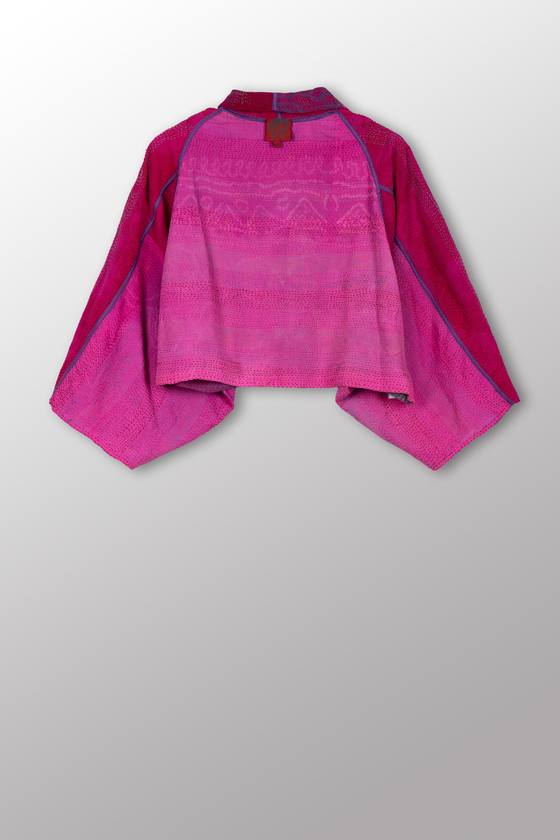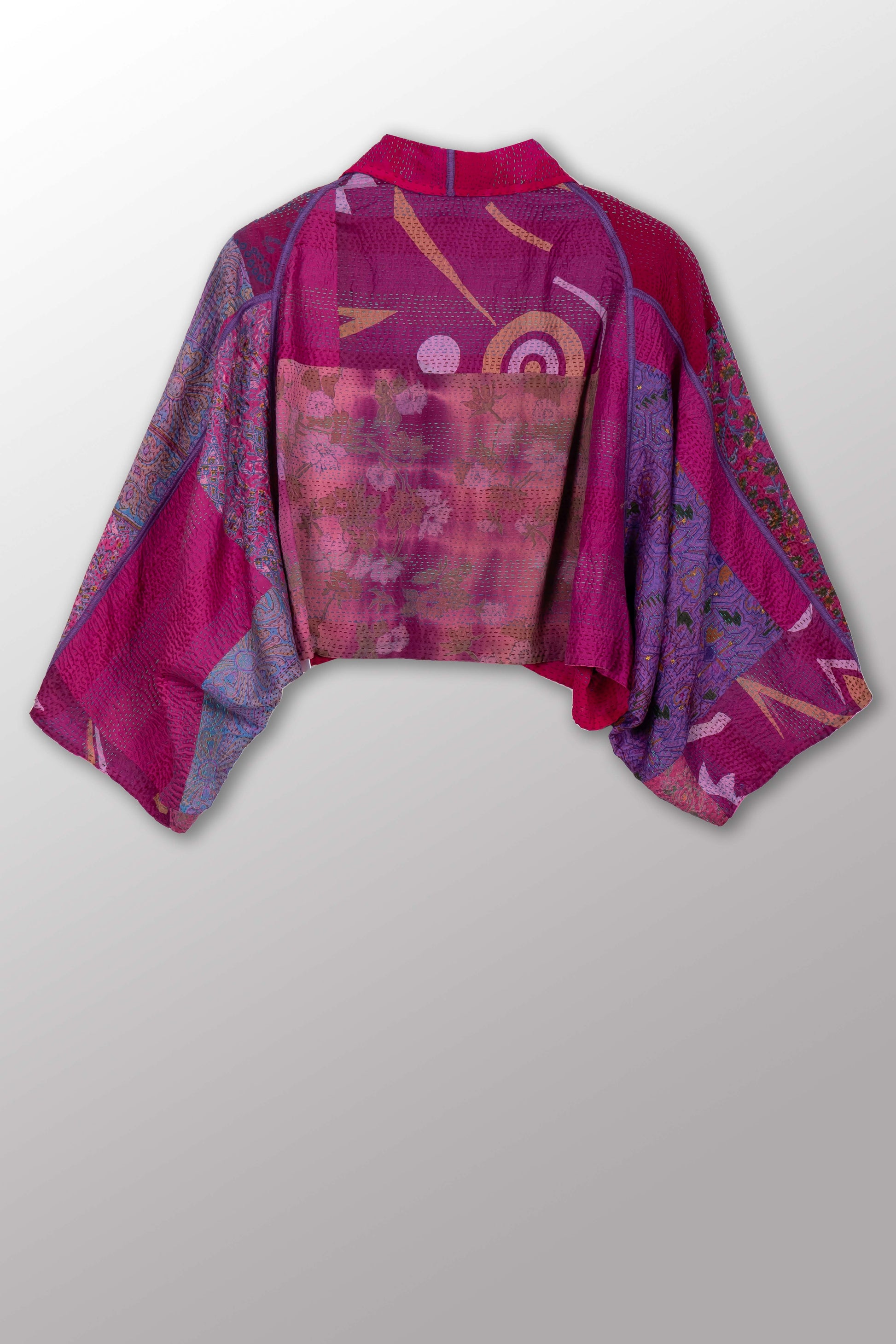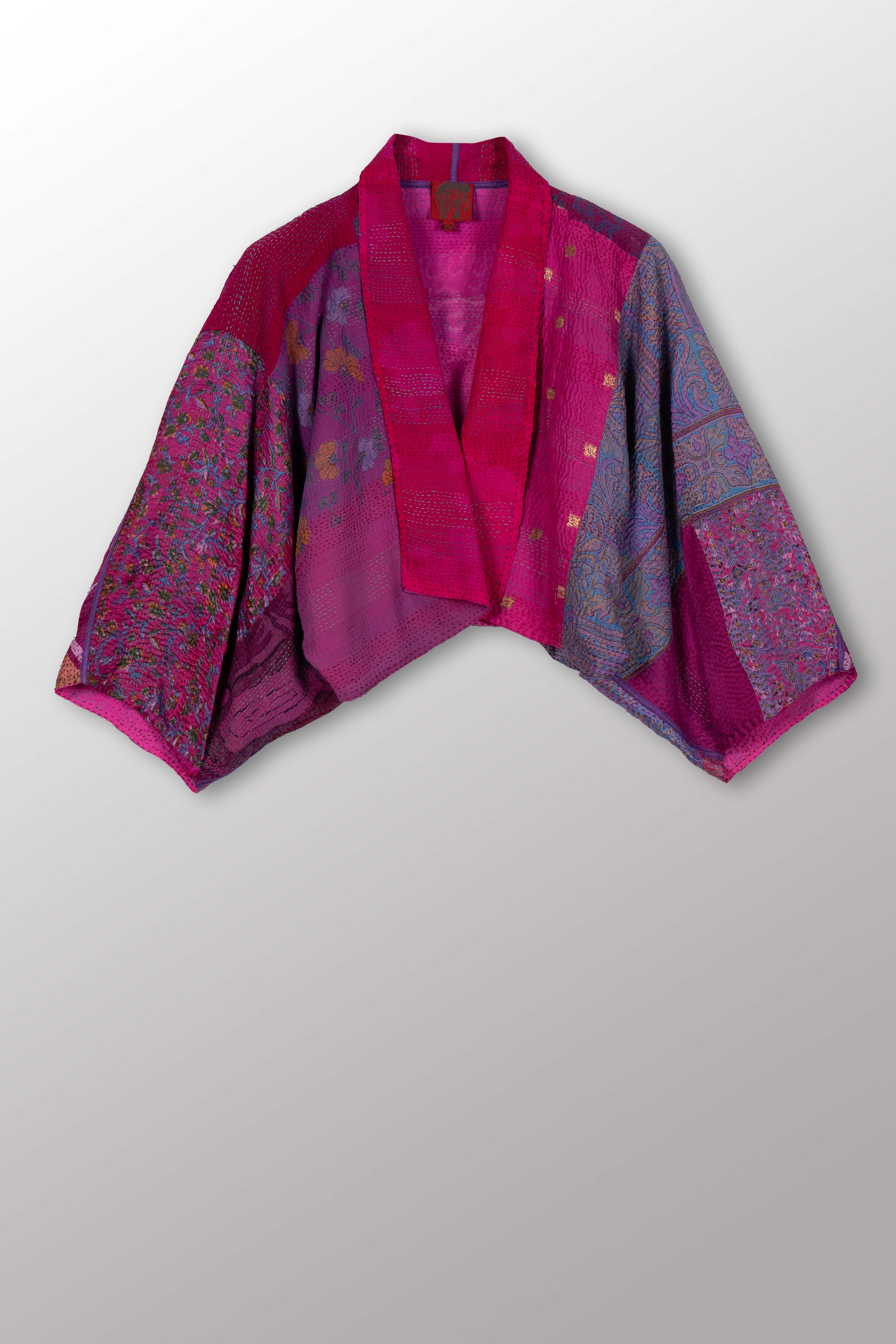 GEORGETTE VINTAGE SILK PATCH KANTHA PUFF SLV. SHRUG - gs2062-pik -
