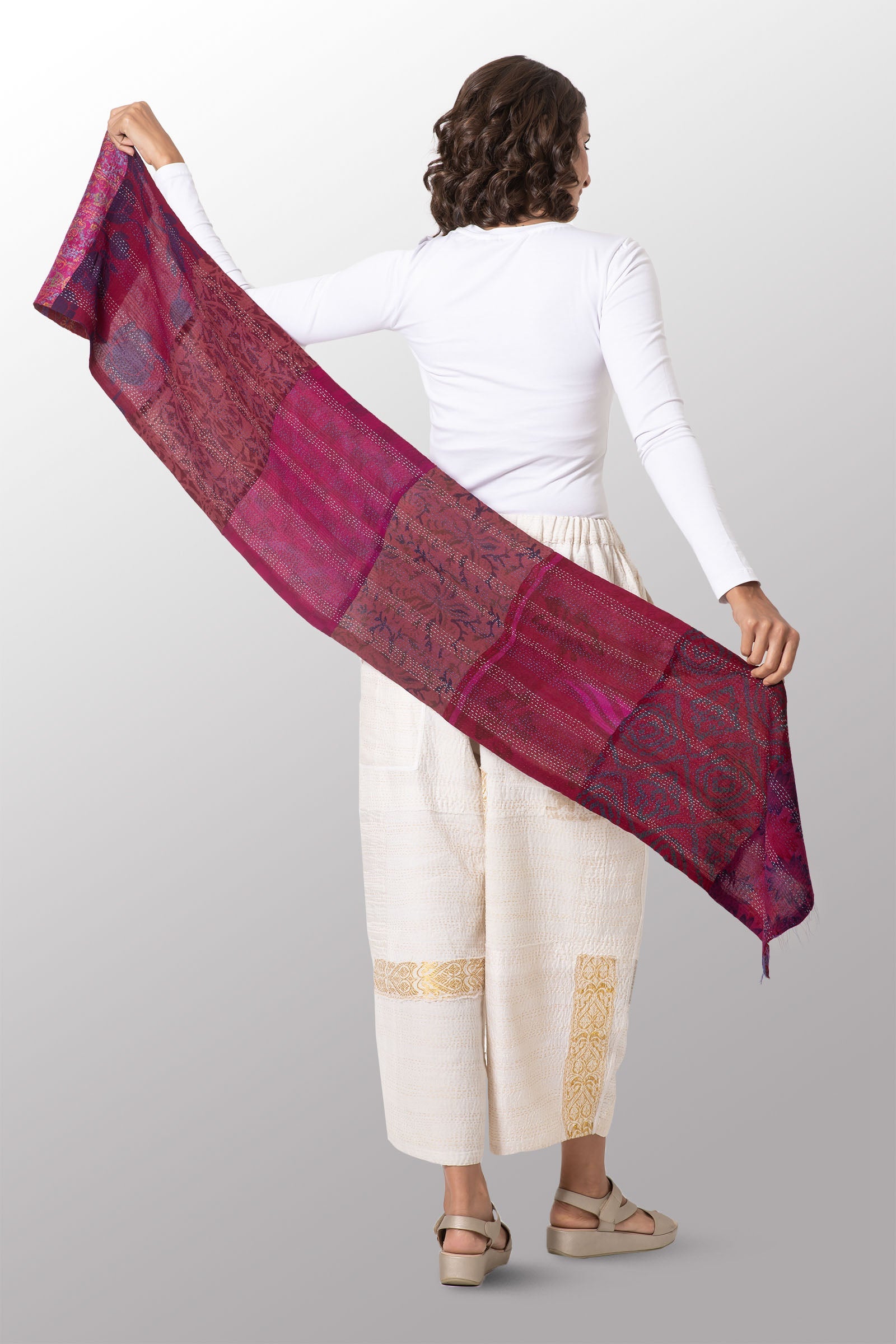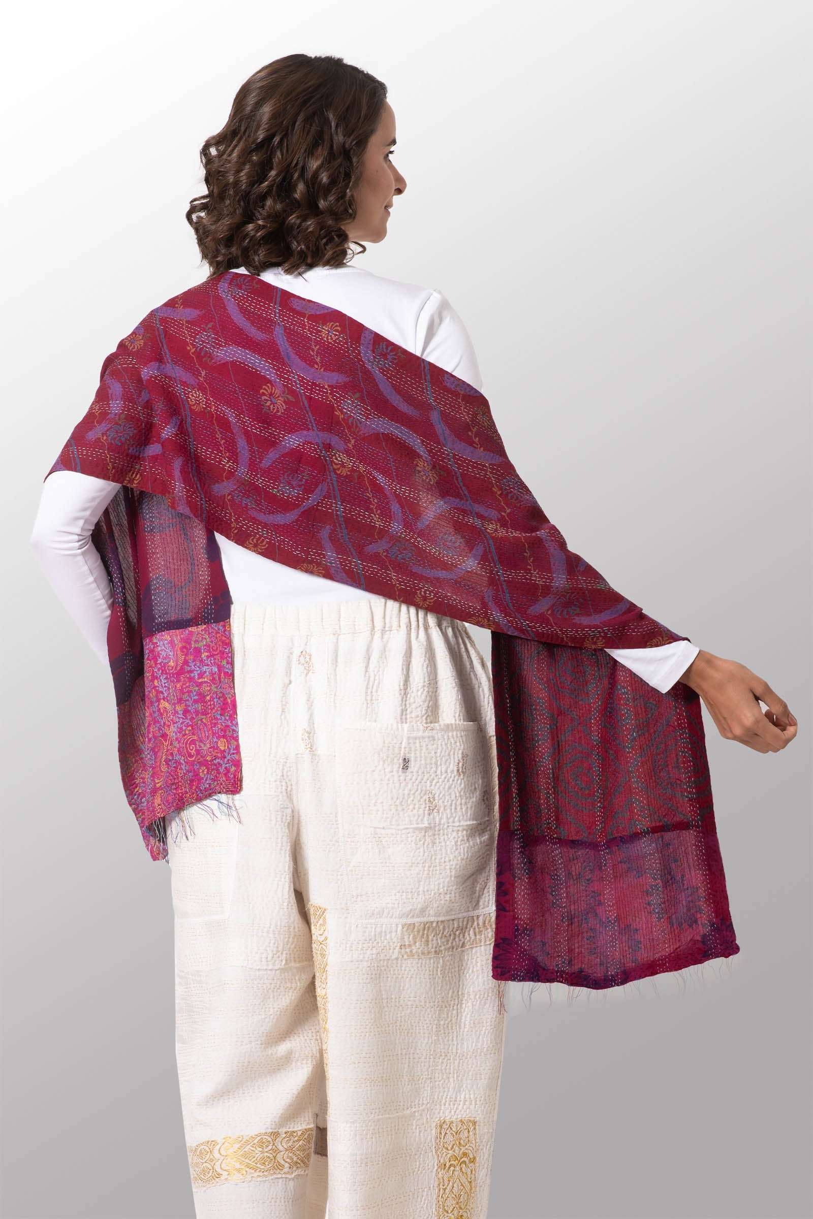 GEORGETTE VINTAGE SILK PATCH KANTHA SCARF SHORT - gs2805-pik -