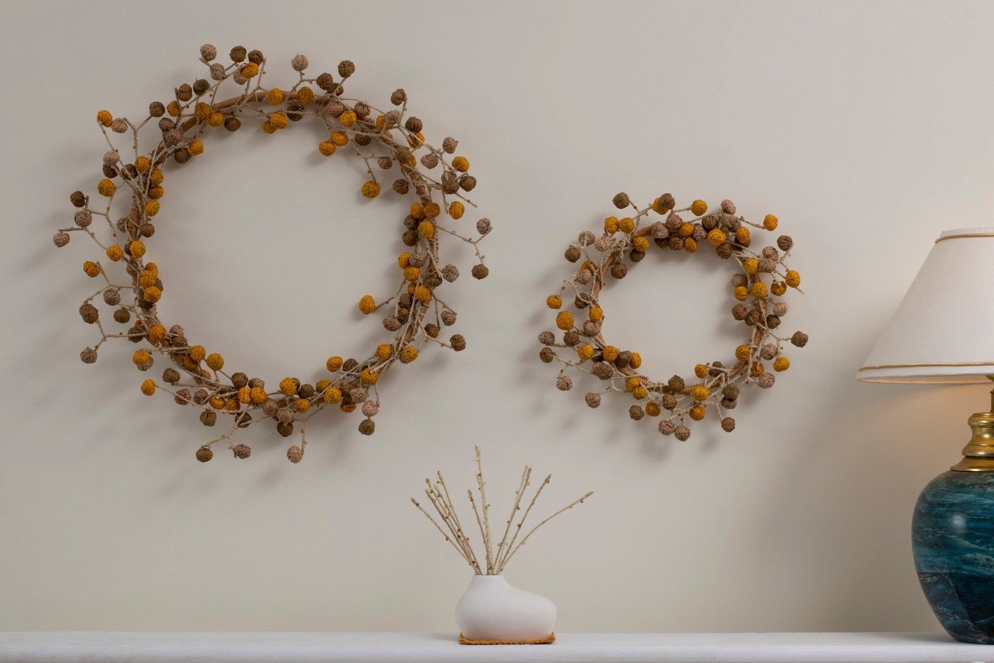 Discover Maison Mieko's Golden Kantha Wreath, a testament to the brand's dedication to repurposing discarded materials. Handcrafted by skilled artisans, predominantly women, in India, this wreath carries a story of sustainable practices and a love for vintage, recycled fabrics. Ideal for indoor decor, it adds sophistication to any space. With Maison Mieko, experience where Vintage comes back to life.