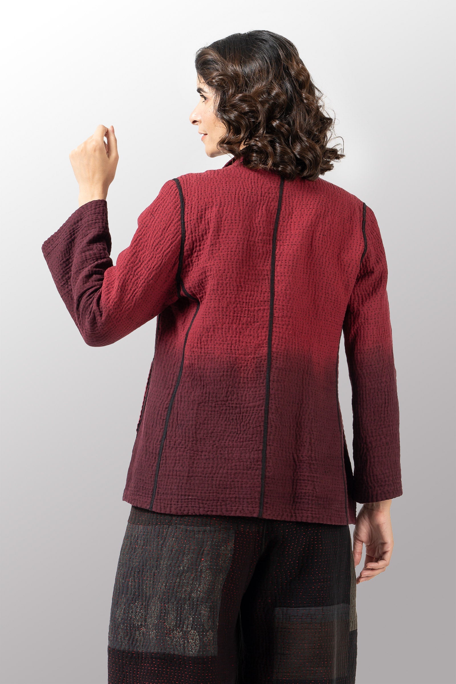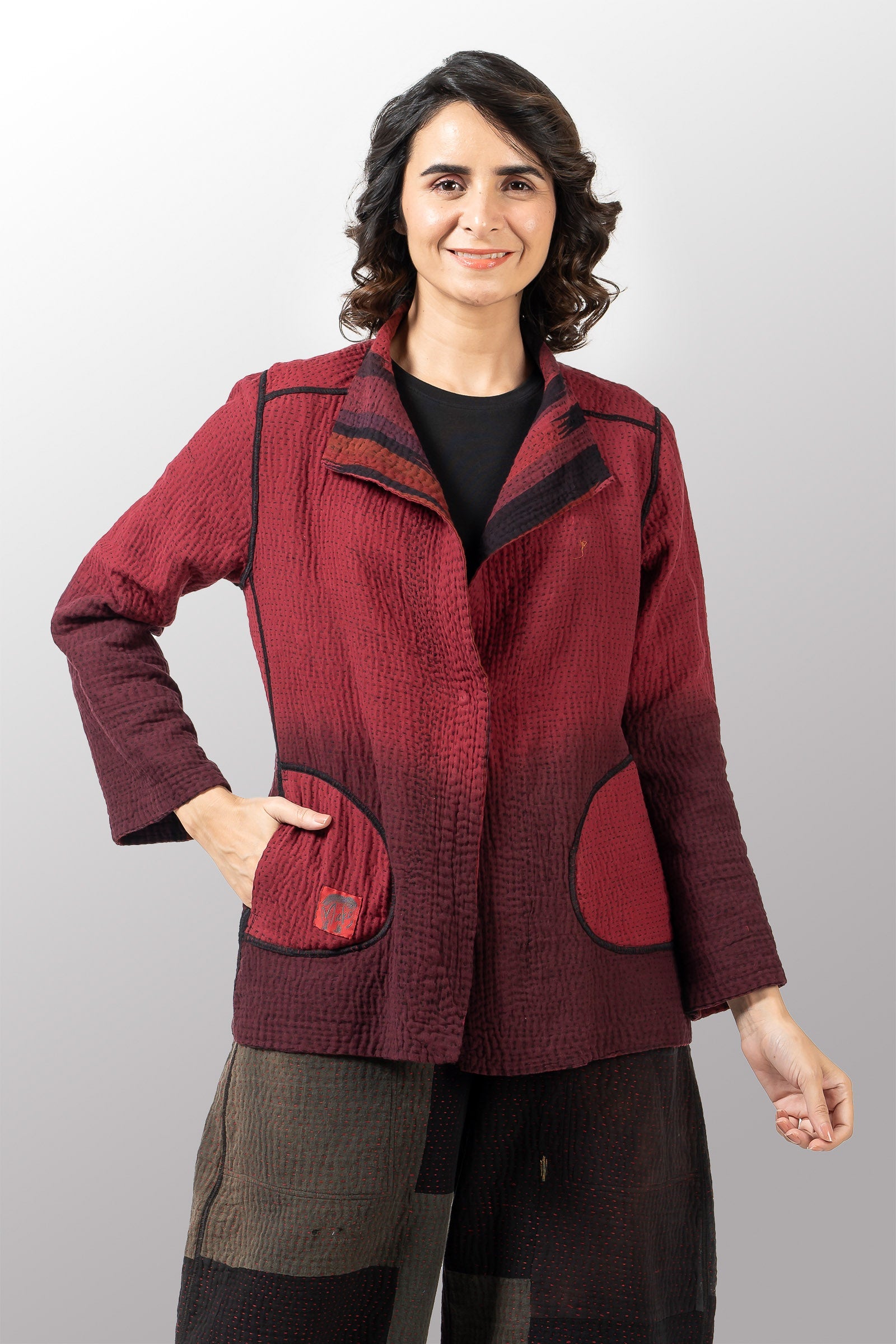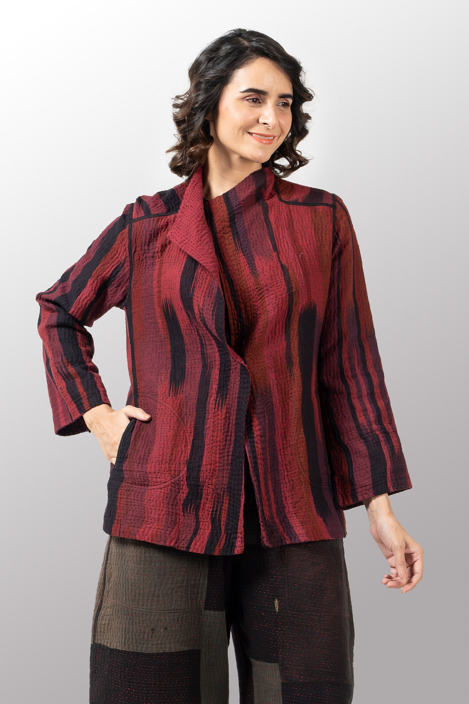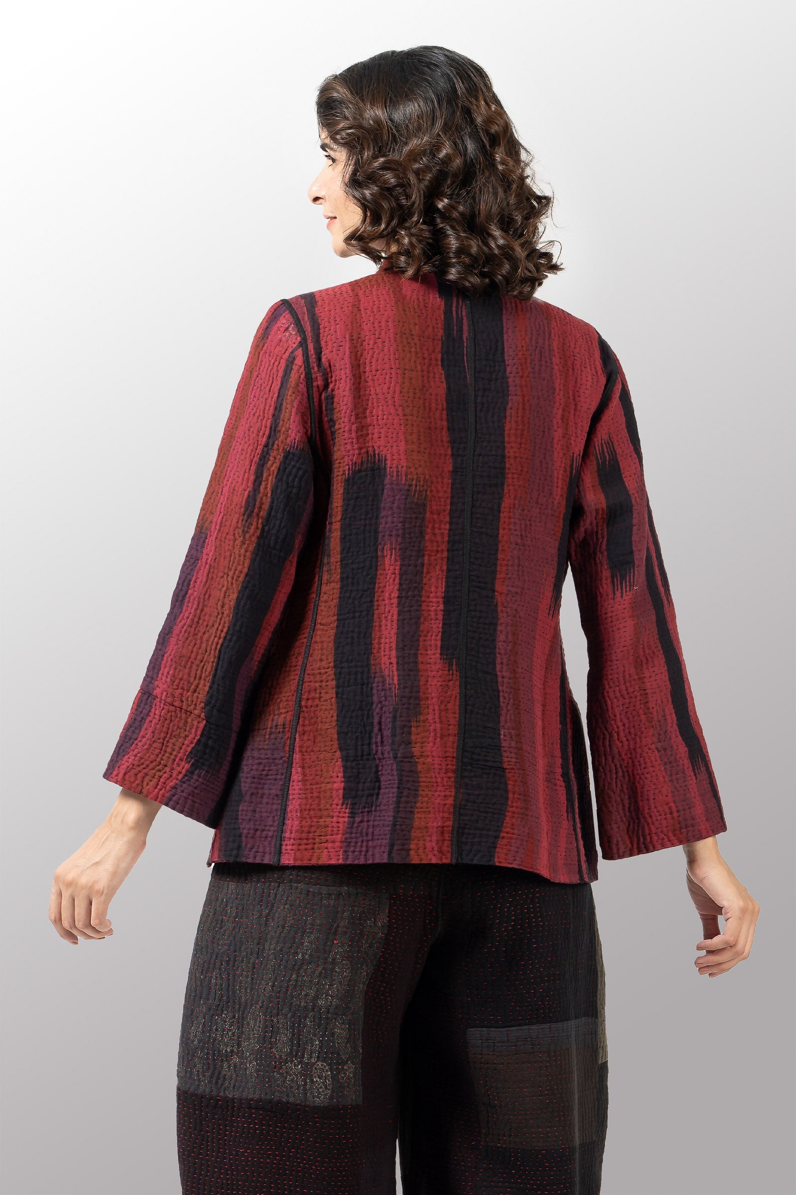 IKAT STRIPE KANTHA SHORT JACKET - is4007-drd -