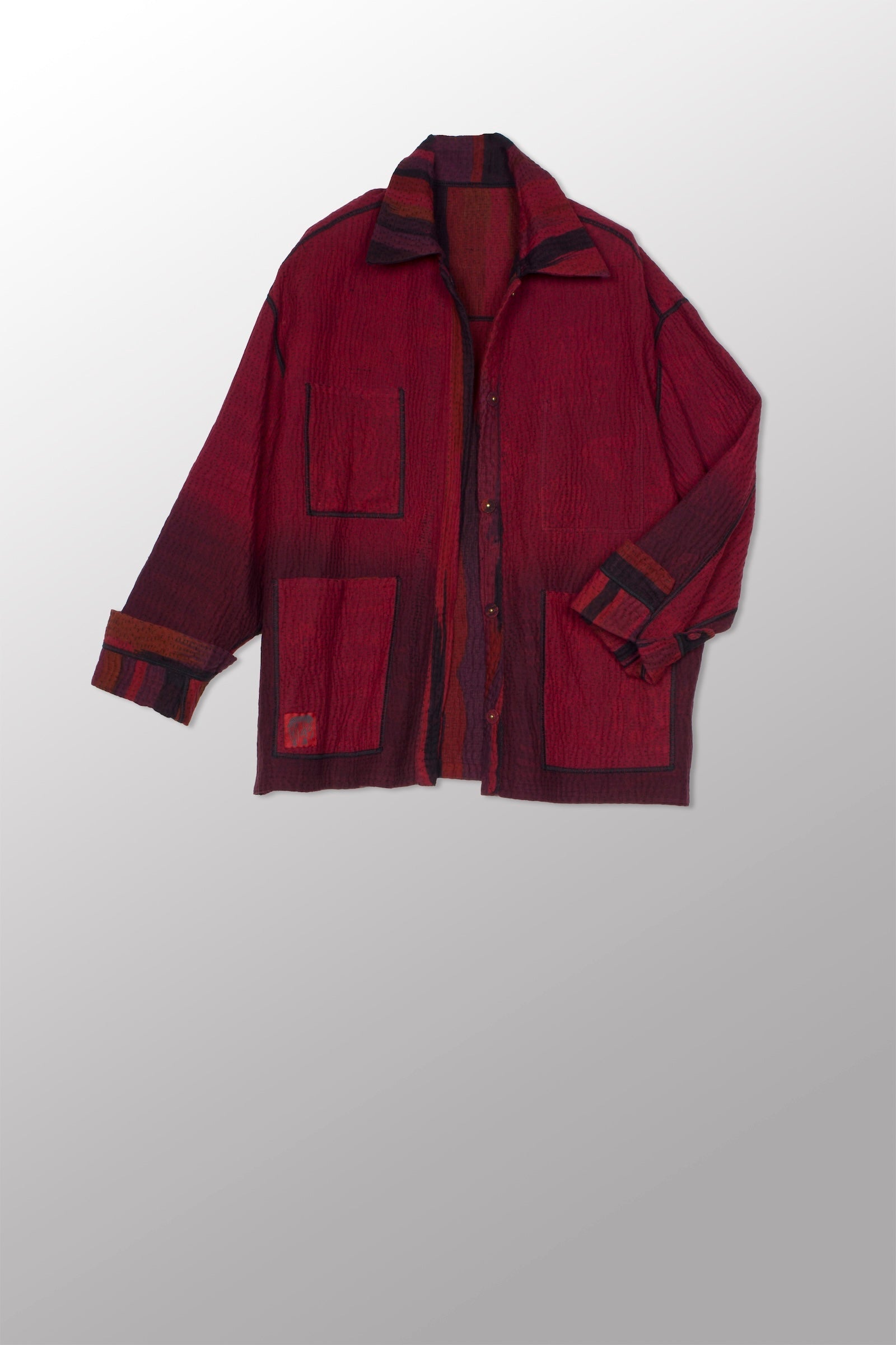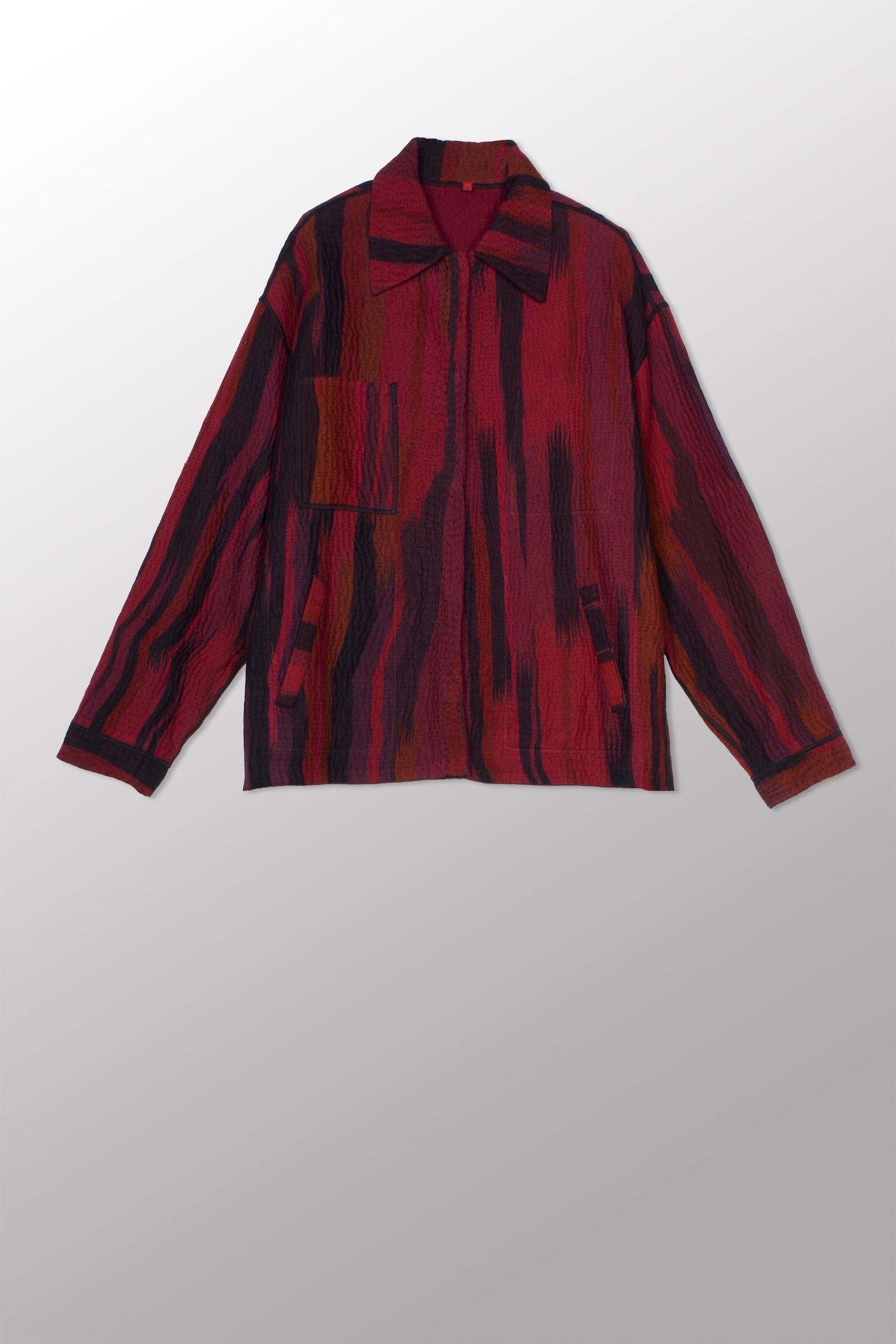 IKAT STRIPE KANTHA WORKERS JACKET - is4085-drd -