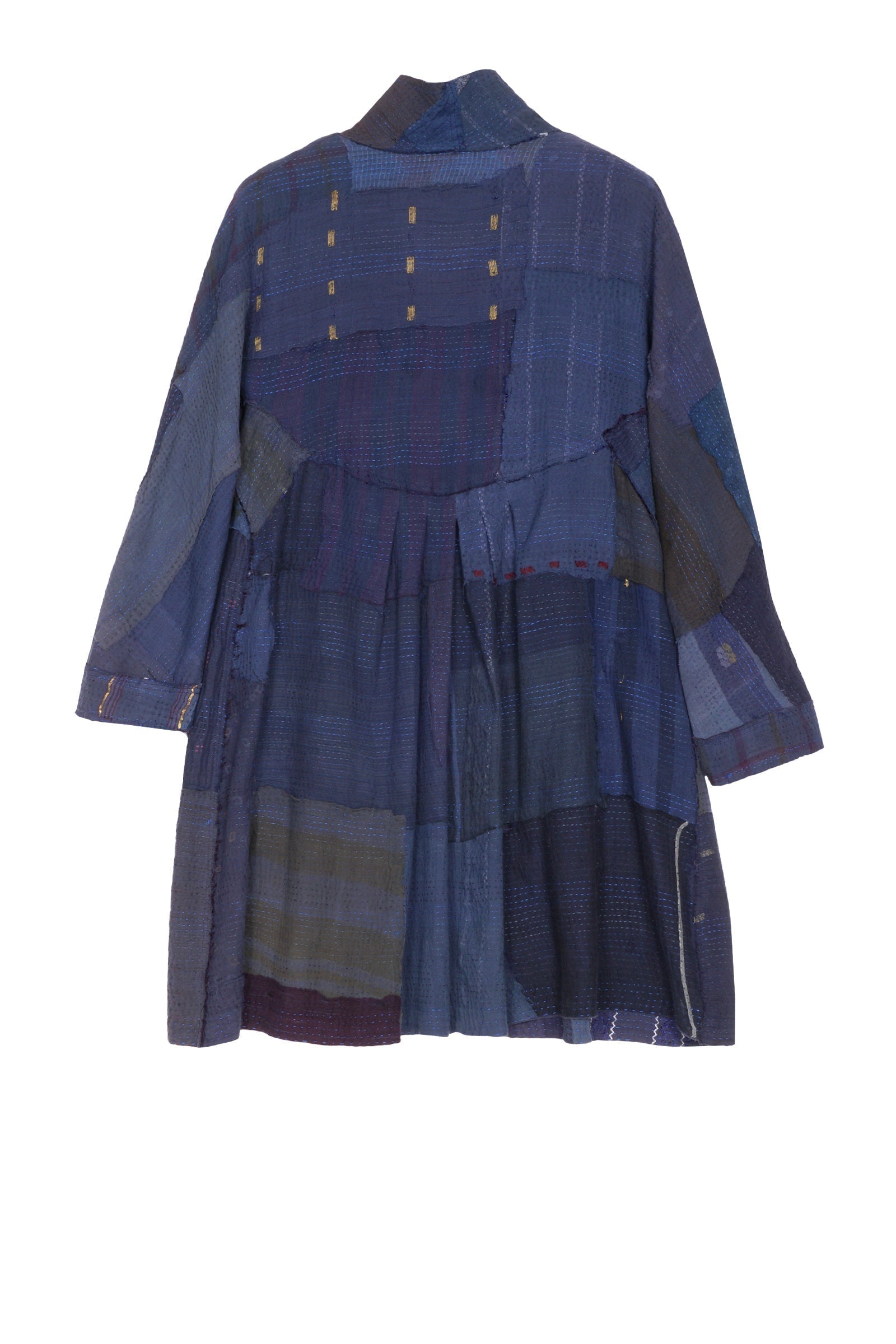 INDIGO WHITE FRAYED PATCH KANTHA BACK TUCKED TUNIC - iw2513-nvy -