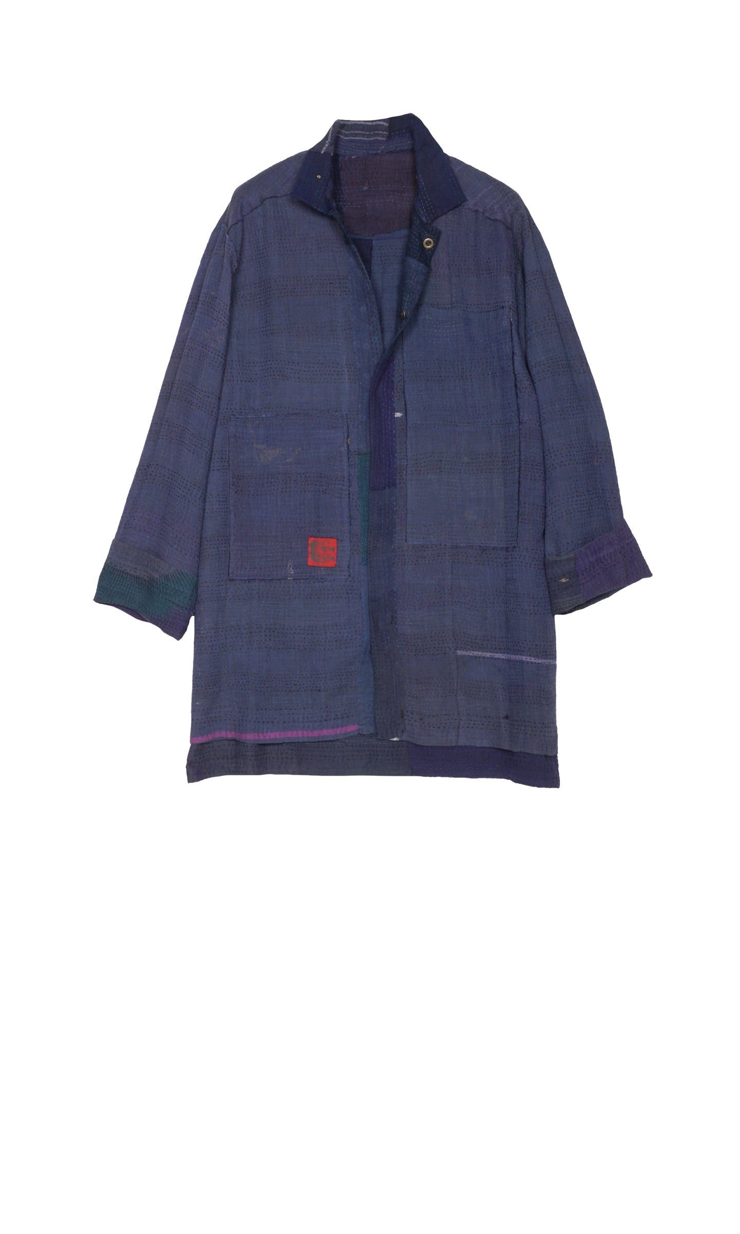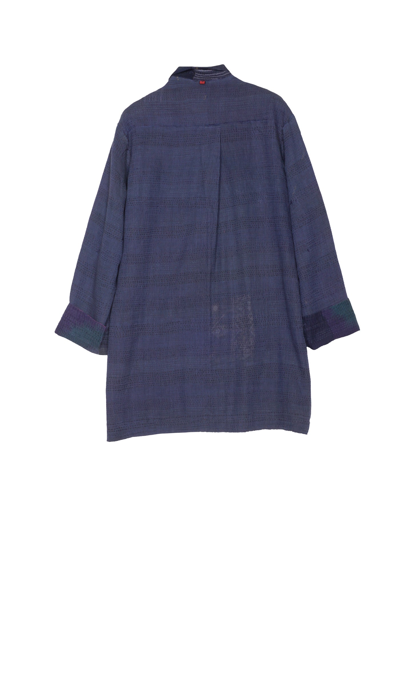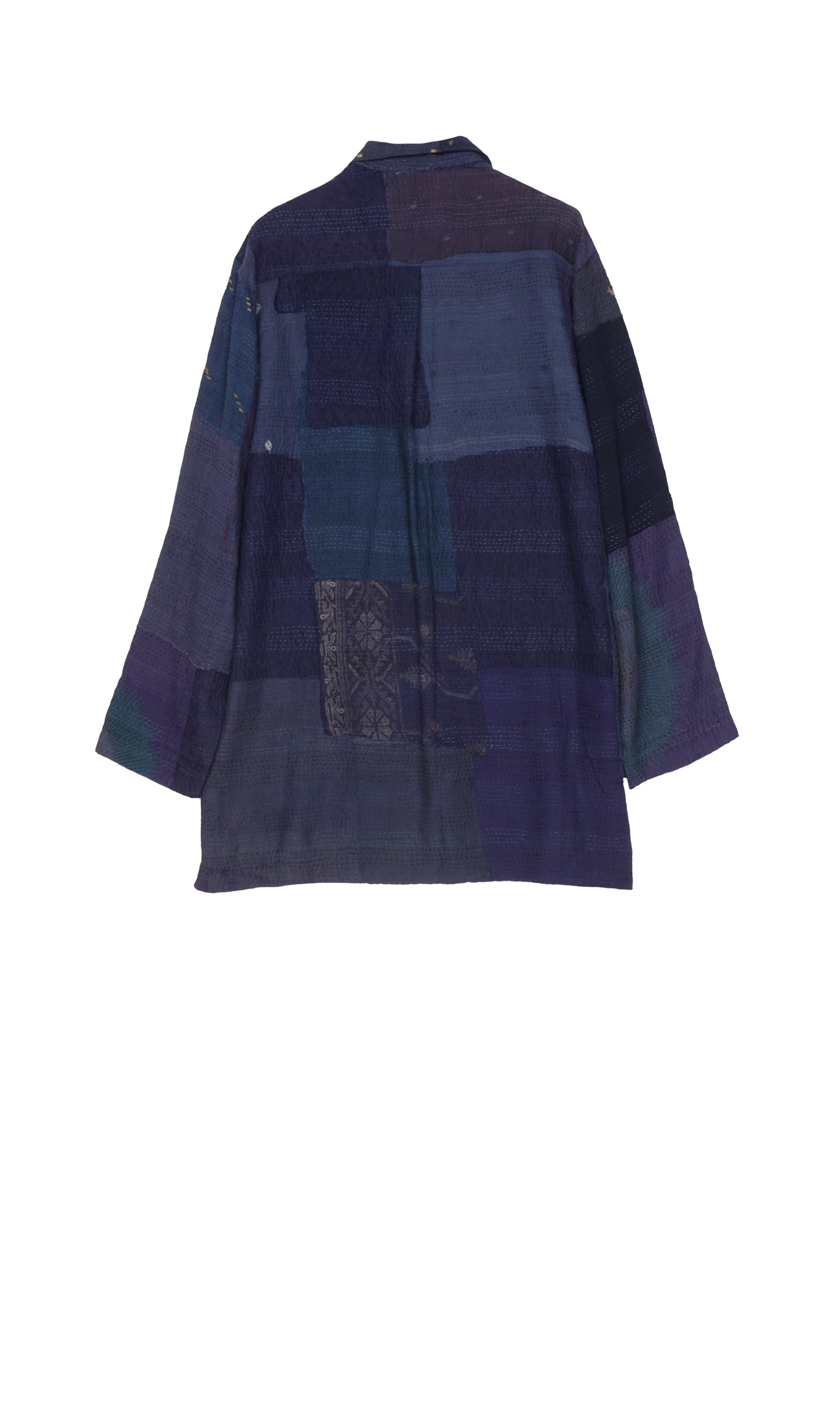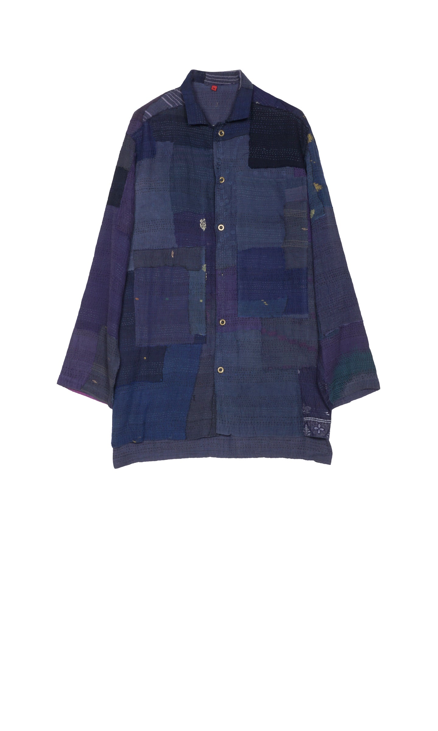 INDIGO WHITE FRAYED PATCH KANTHA SHIRT JACKET - iw2023-nvy -