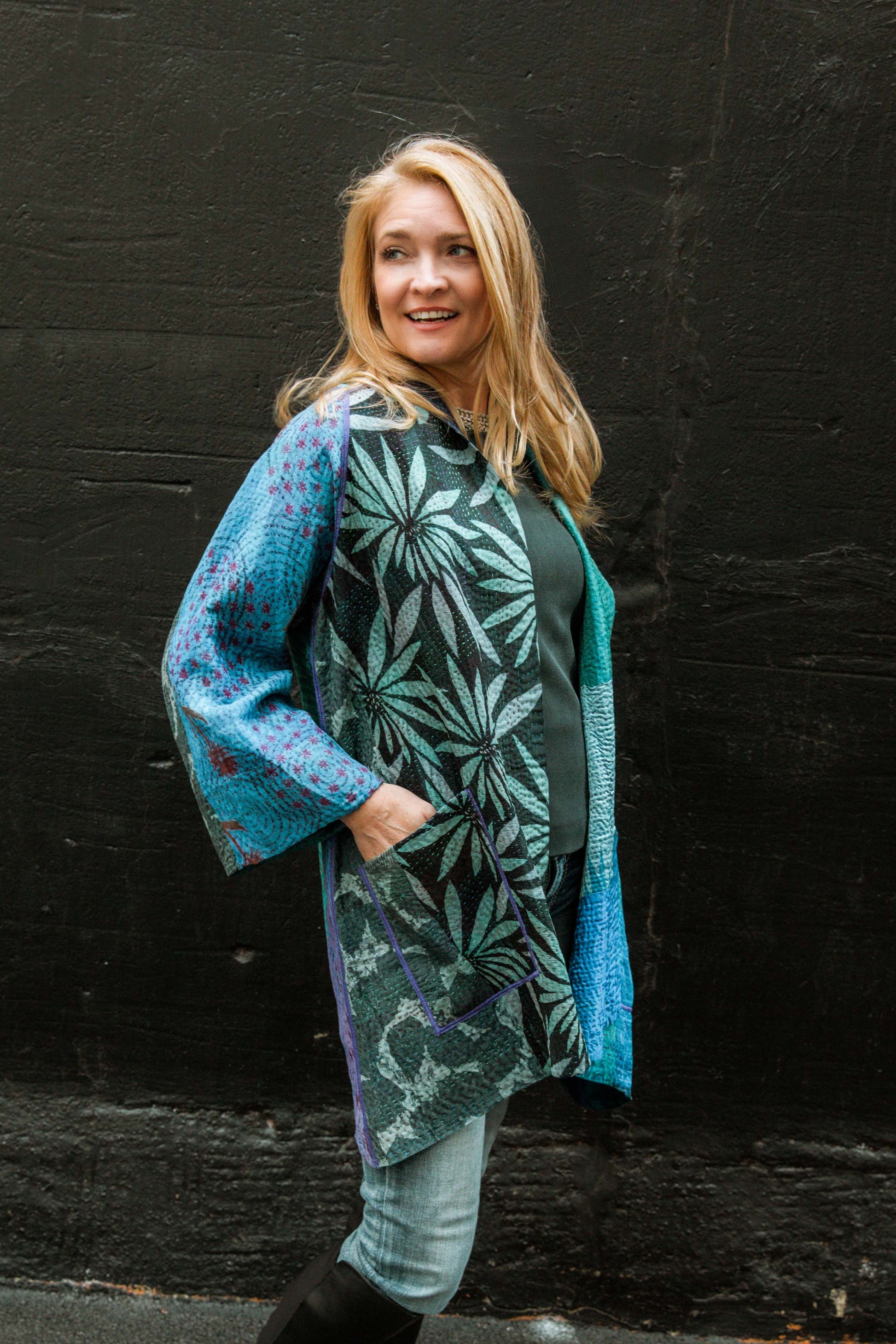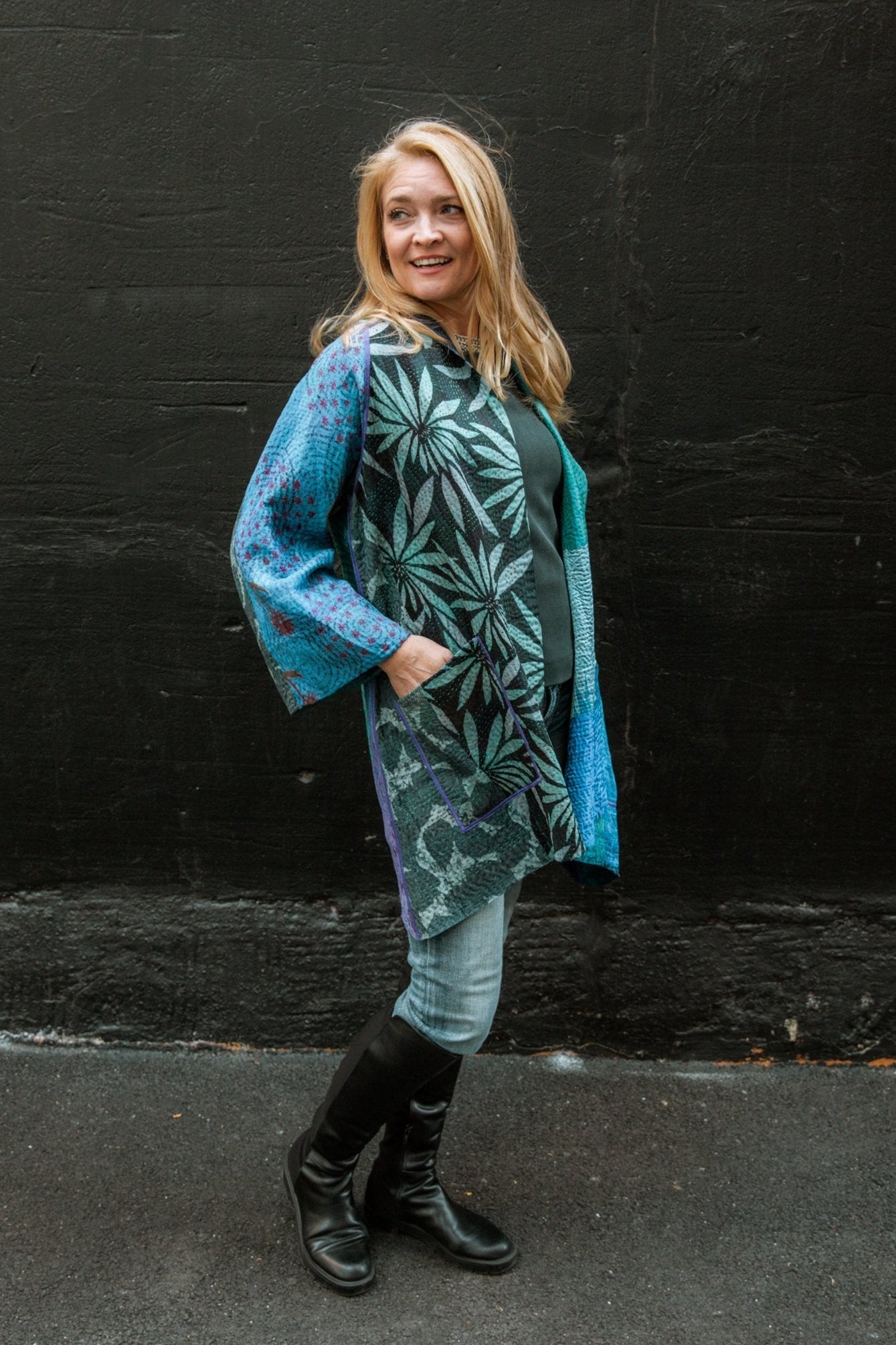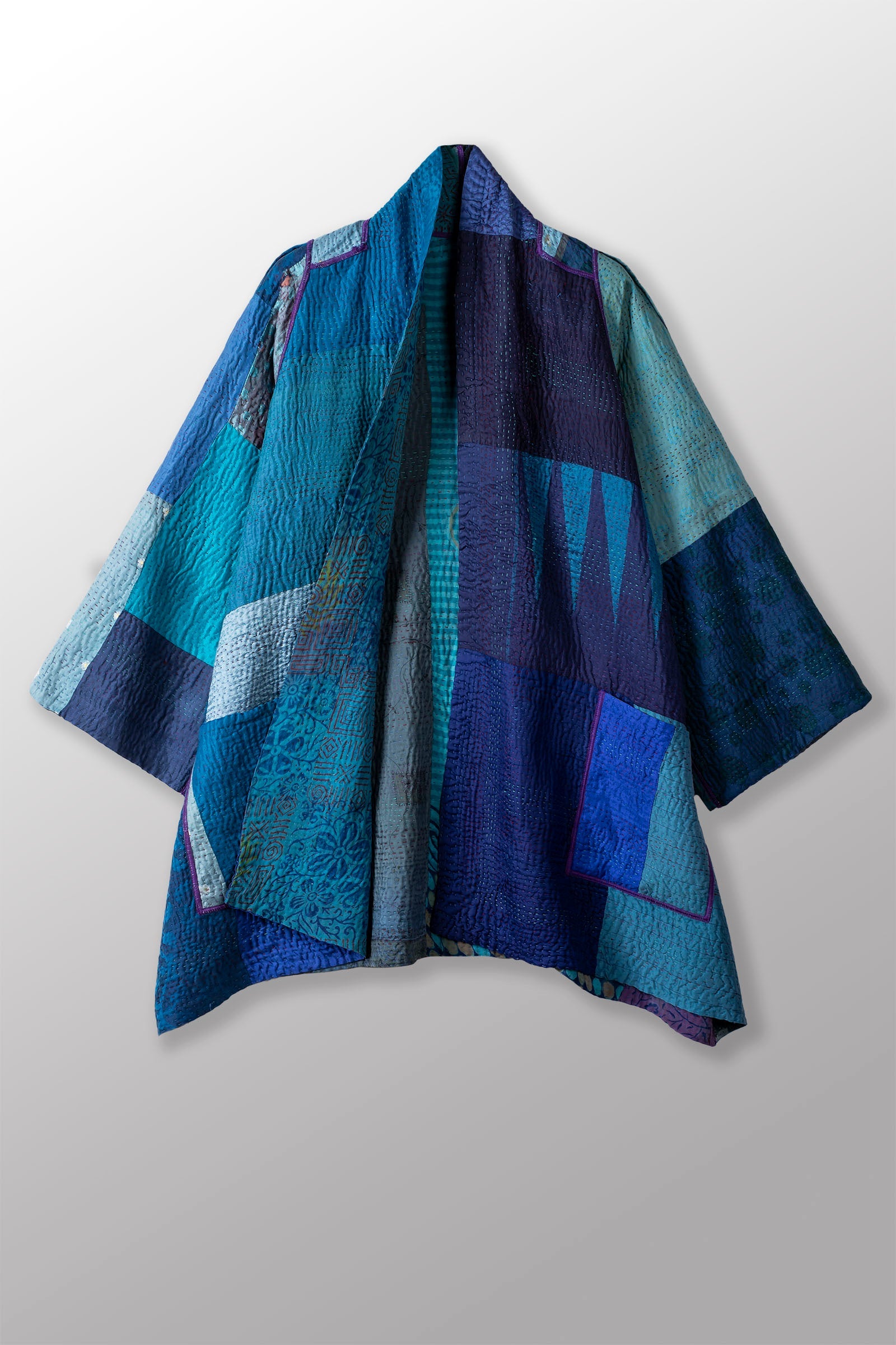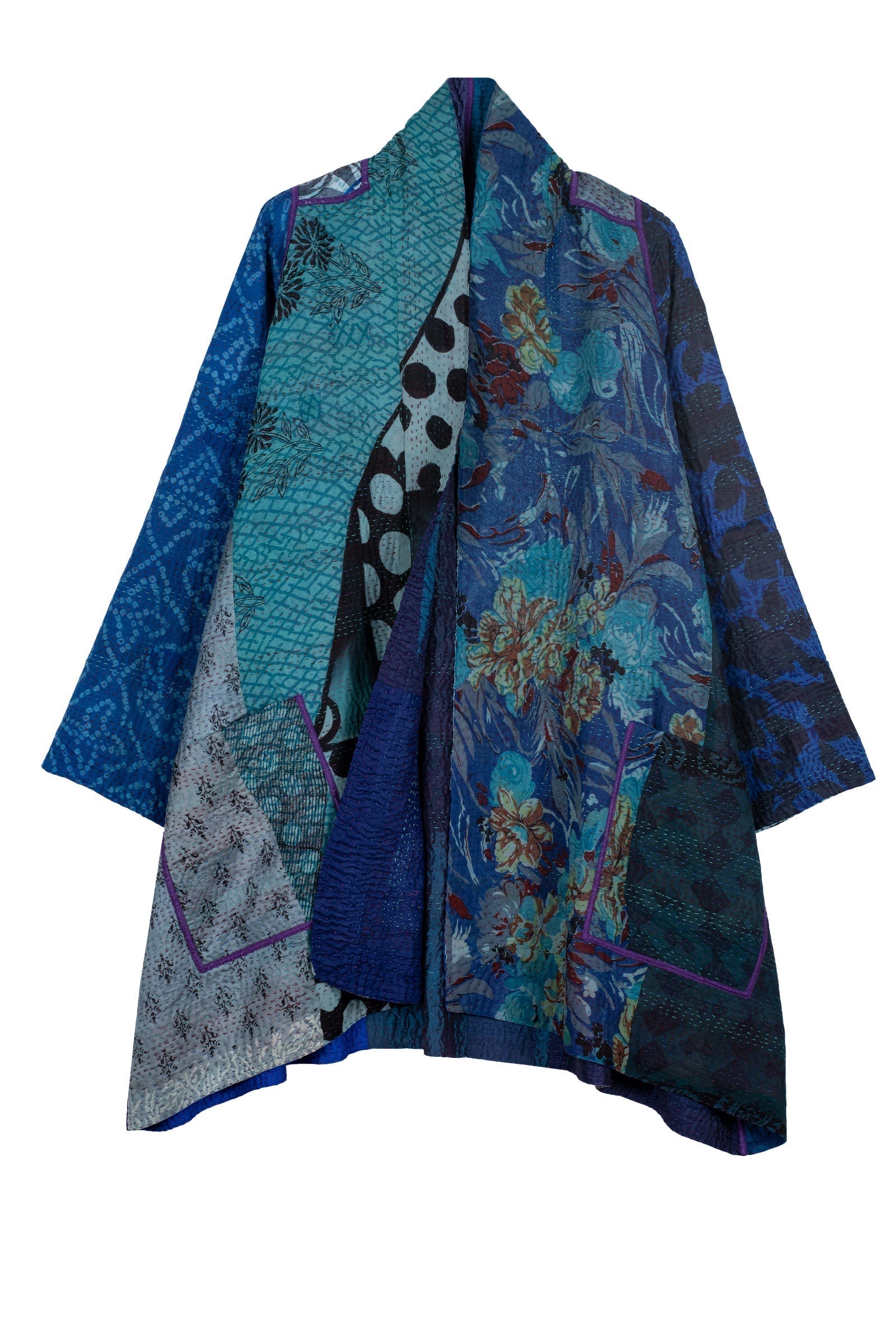 4 Layer Vintage Saris with Hand Stitches on Entire Garment - Reversible