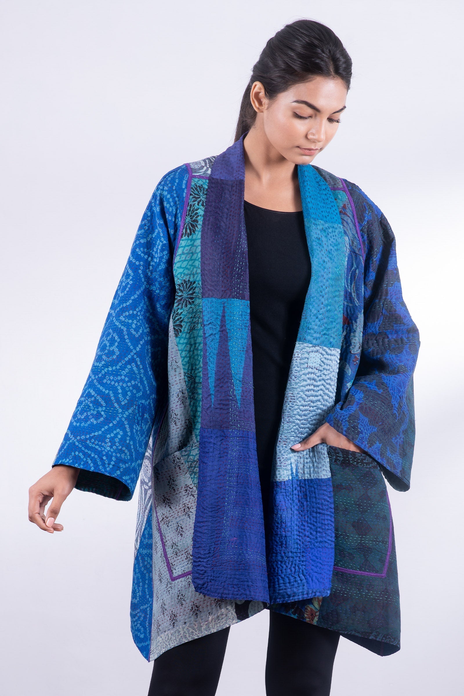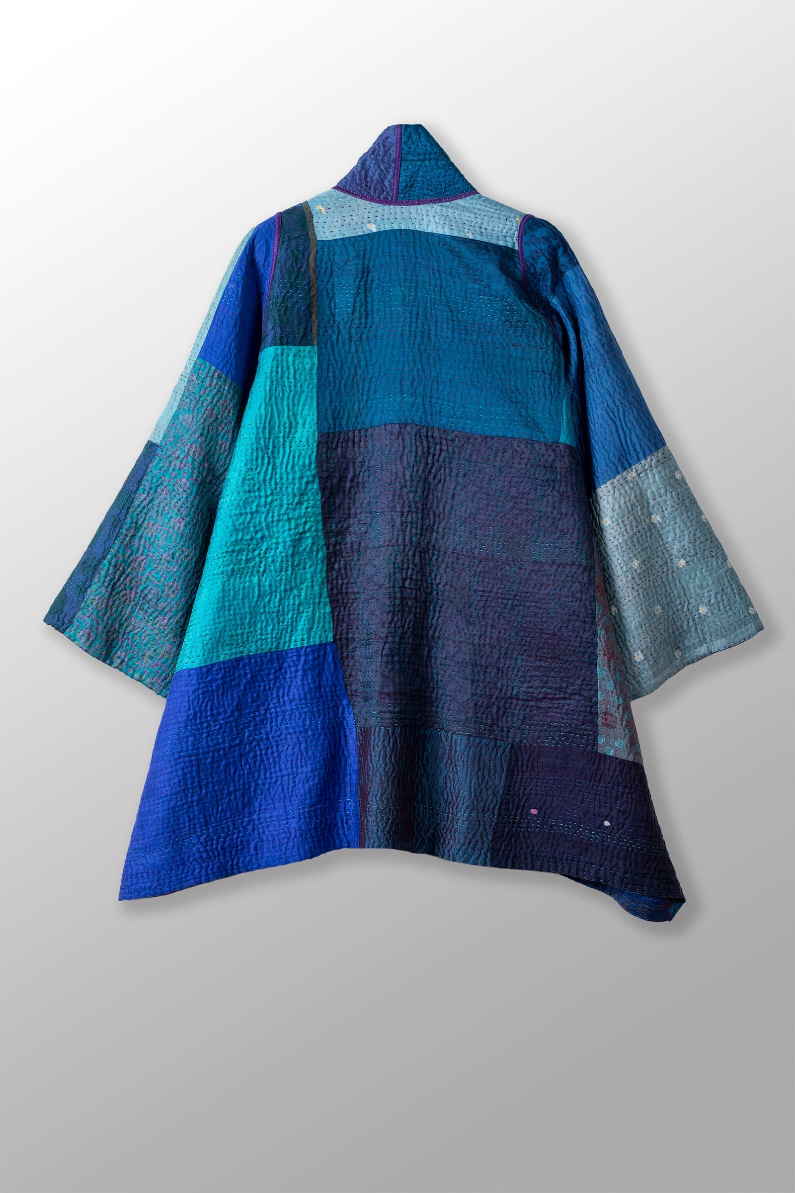 JACQUARD SILK KANTHA A-LINE JKT - js4003-blu -