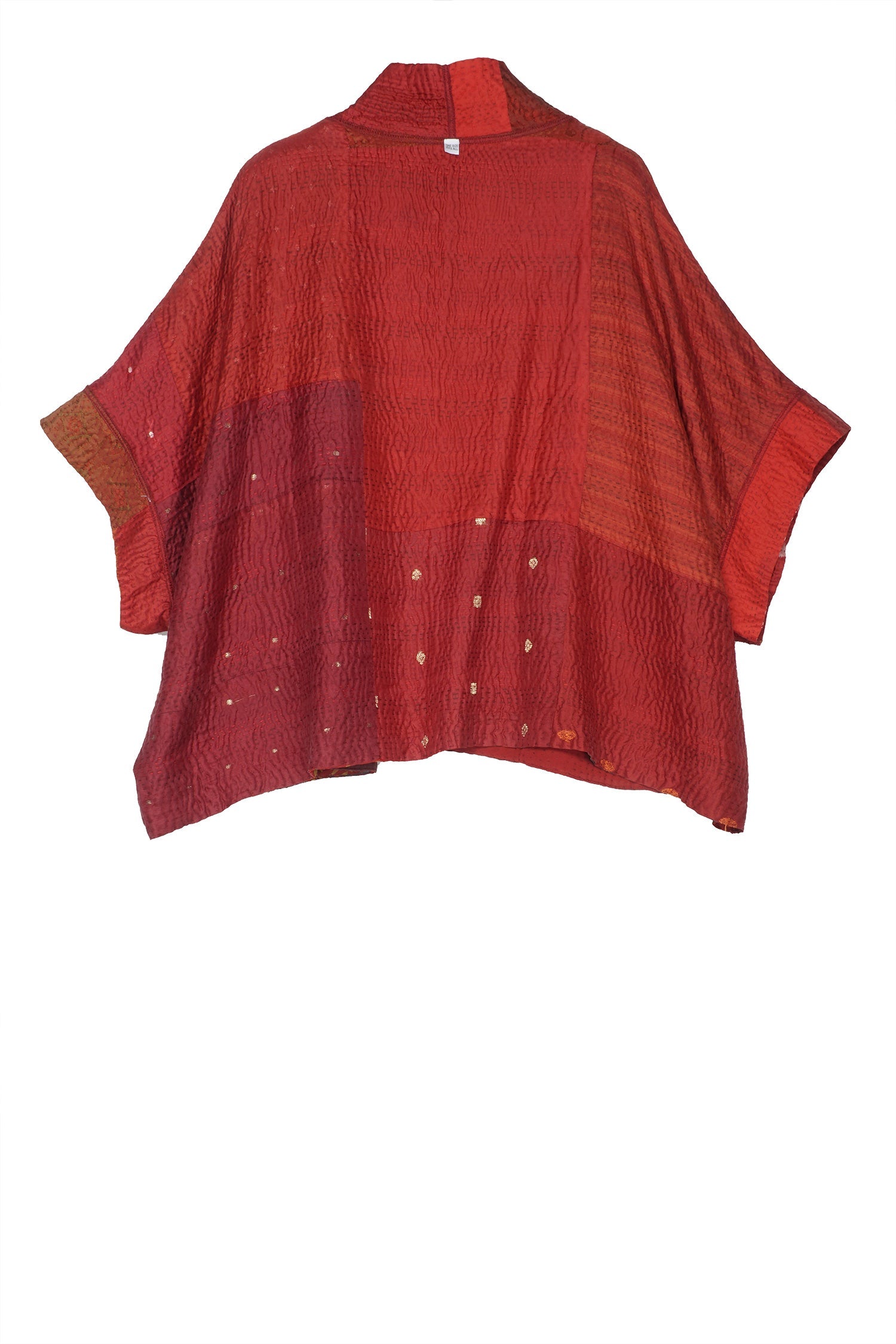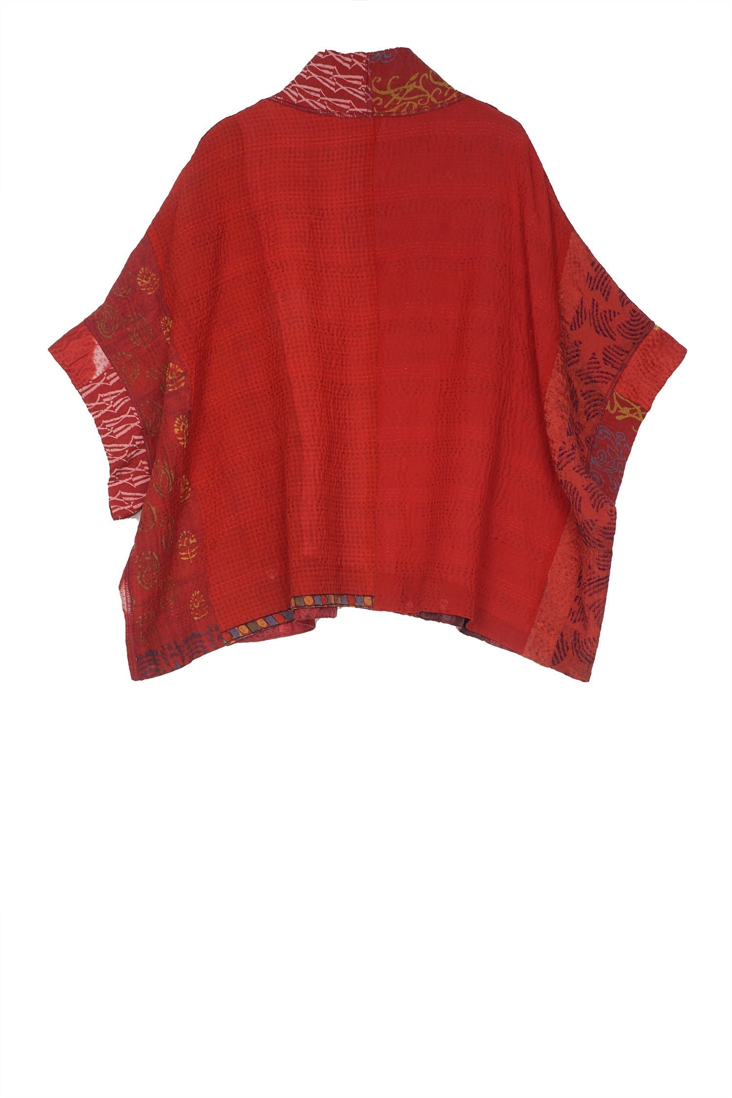 JACQUARD SILK KANTHA MINI PONCHO - js4060-red -
