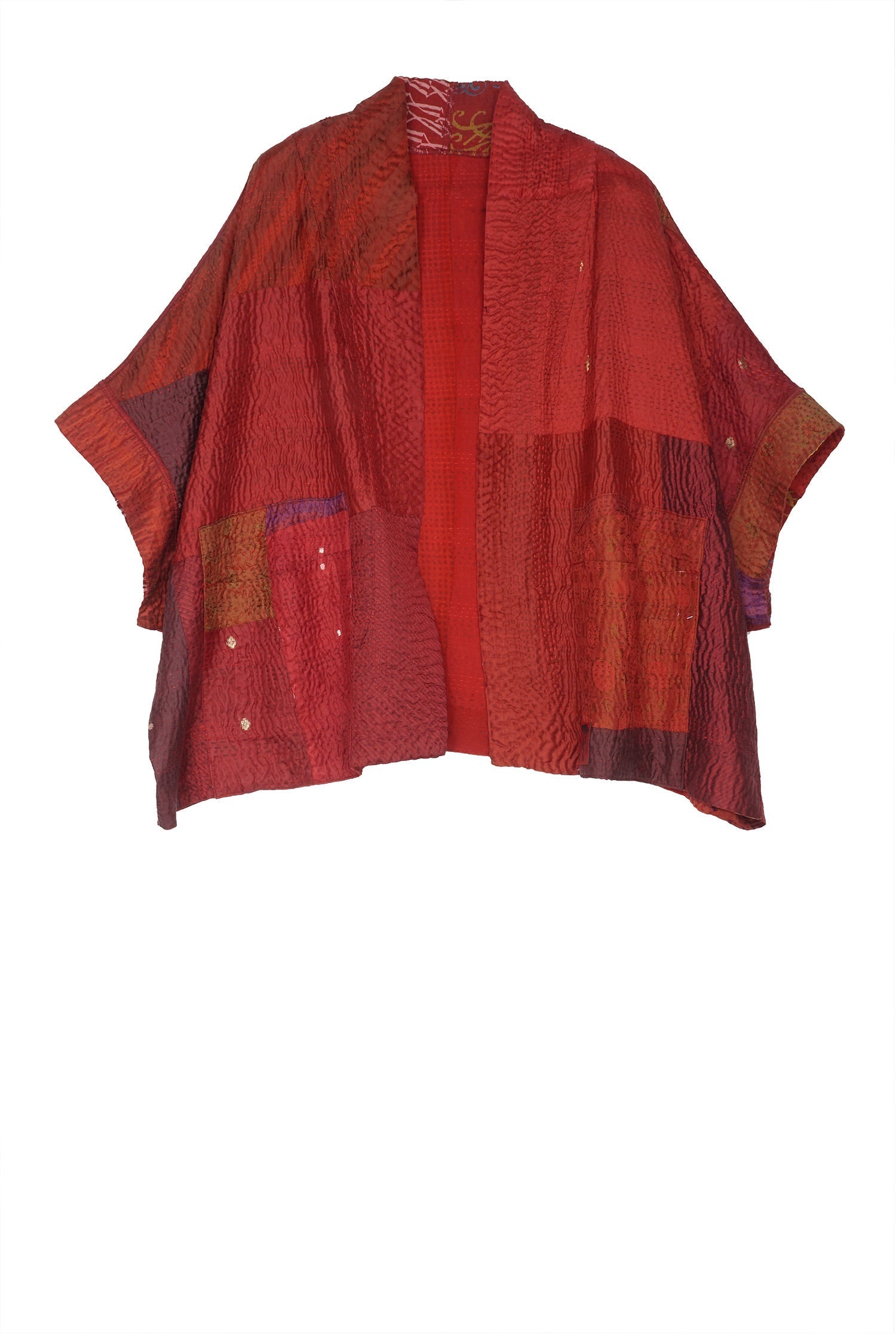 4 Layer Vintage Saris with Hand Stitches on Entire Garment - Reversible