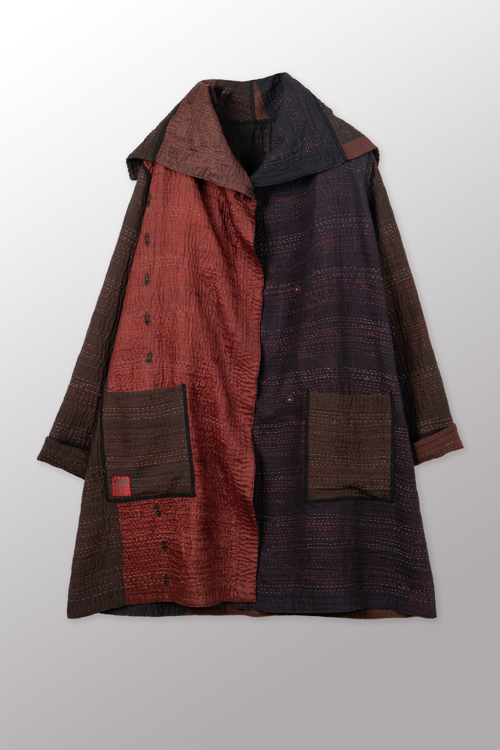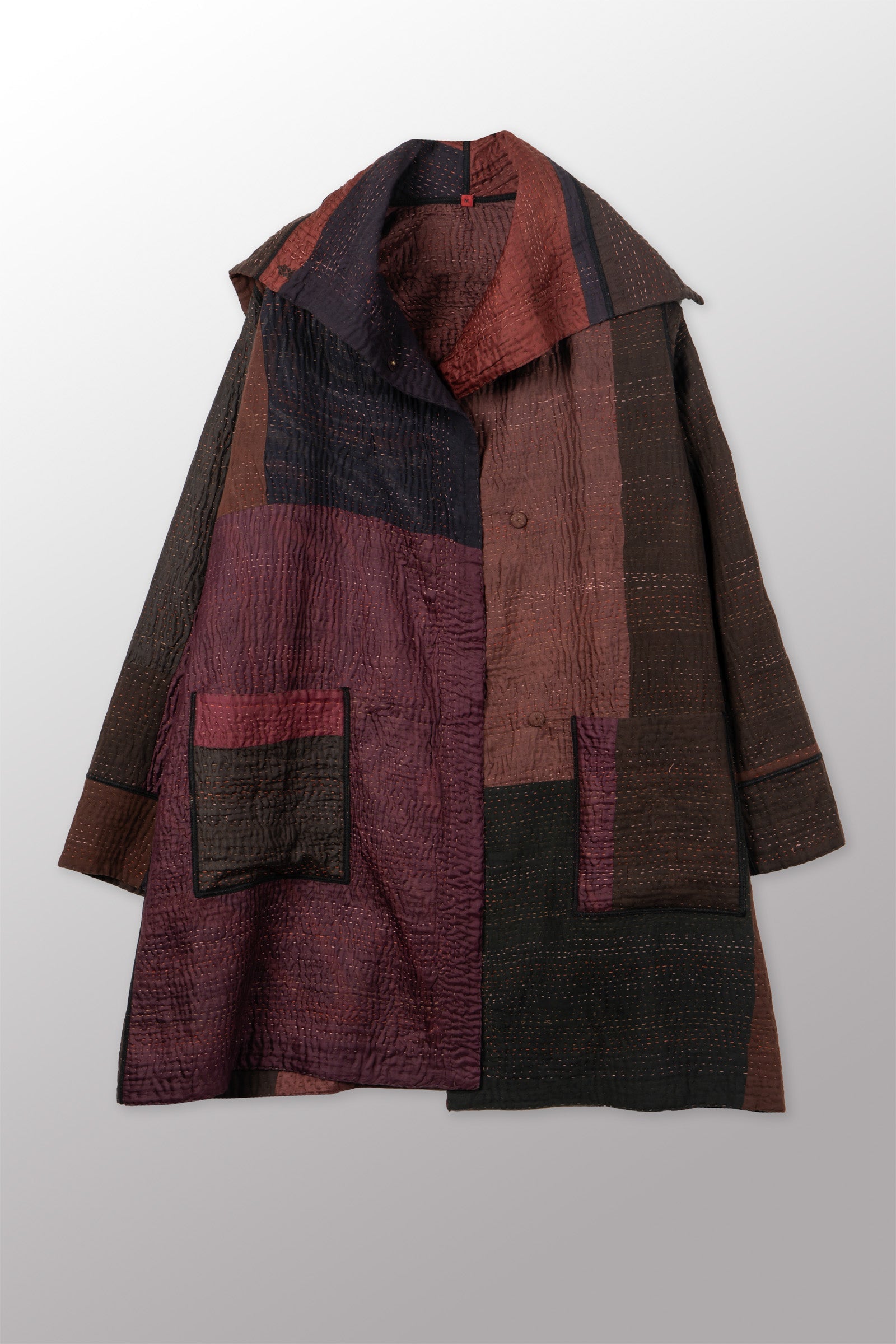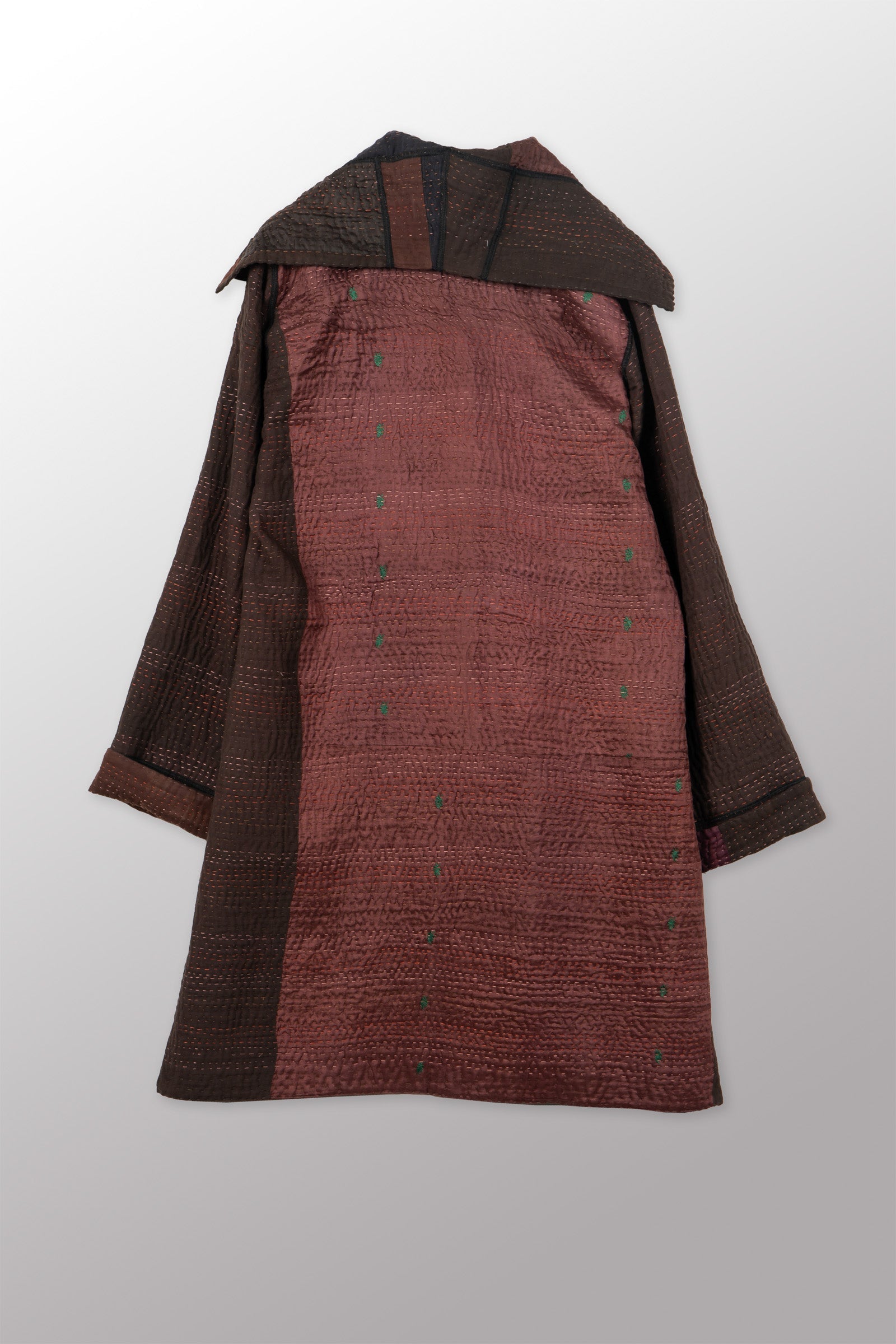 JACQUARD SILK KANTHA POCKET MEDIUM COAT - js4316-brn -