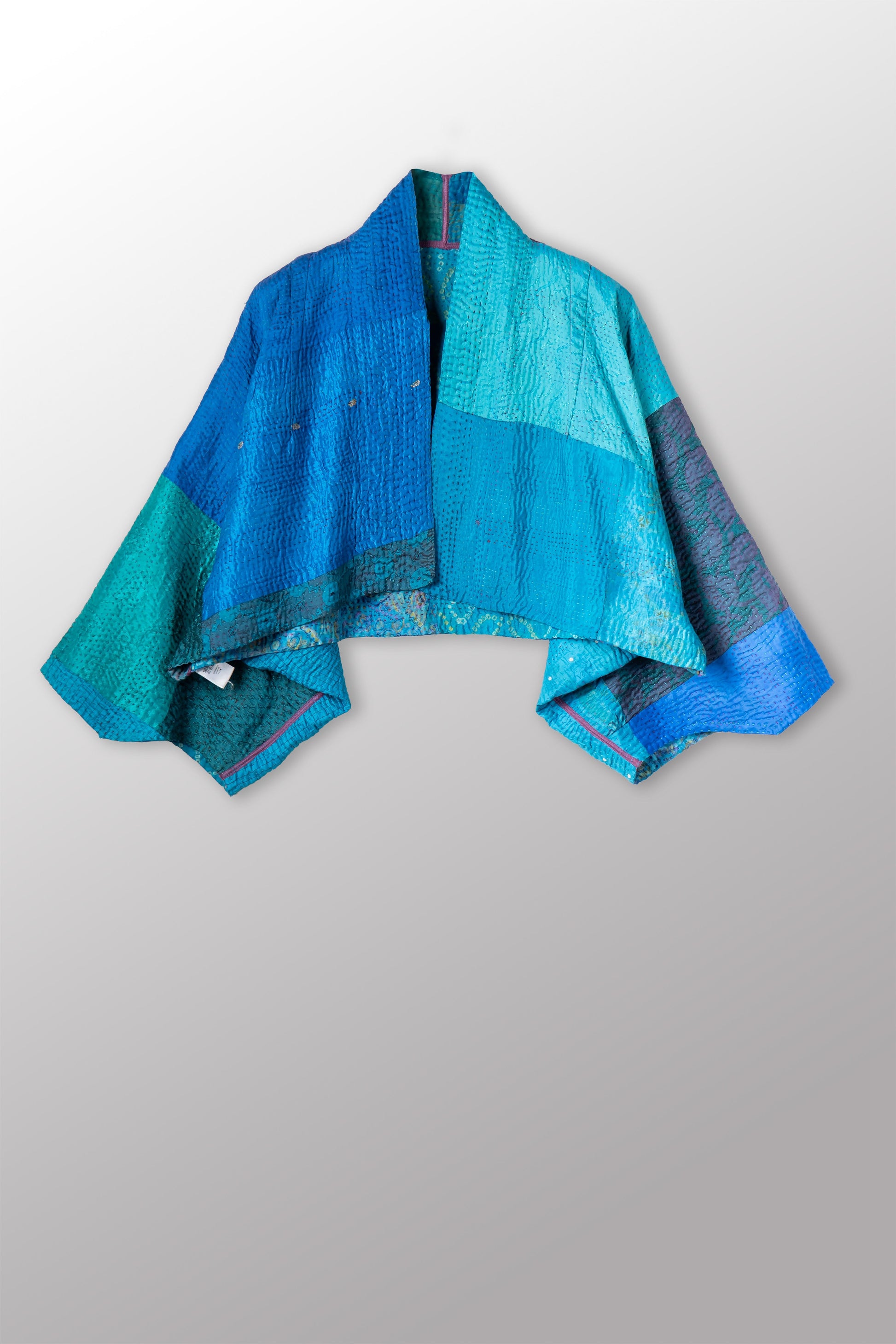 JACQUARD SILK KANTHA PUFF SLV. SHRUG - js4062-blu -