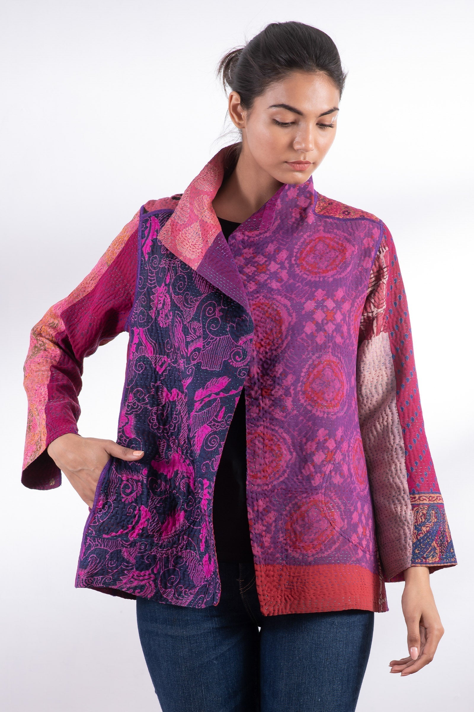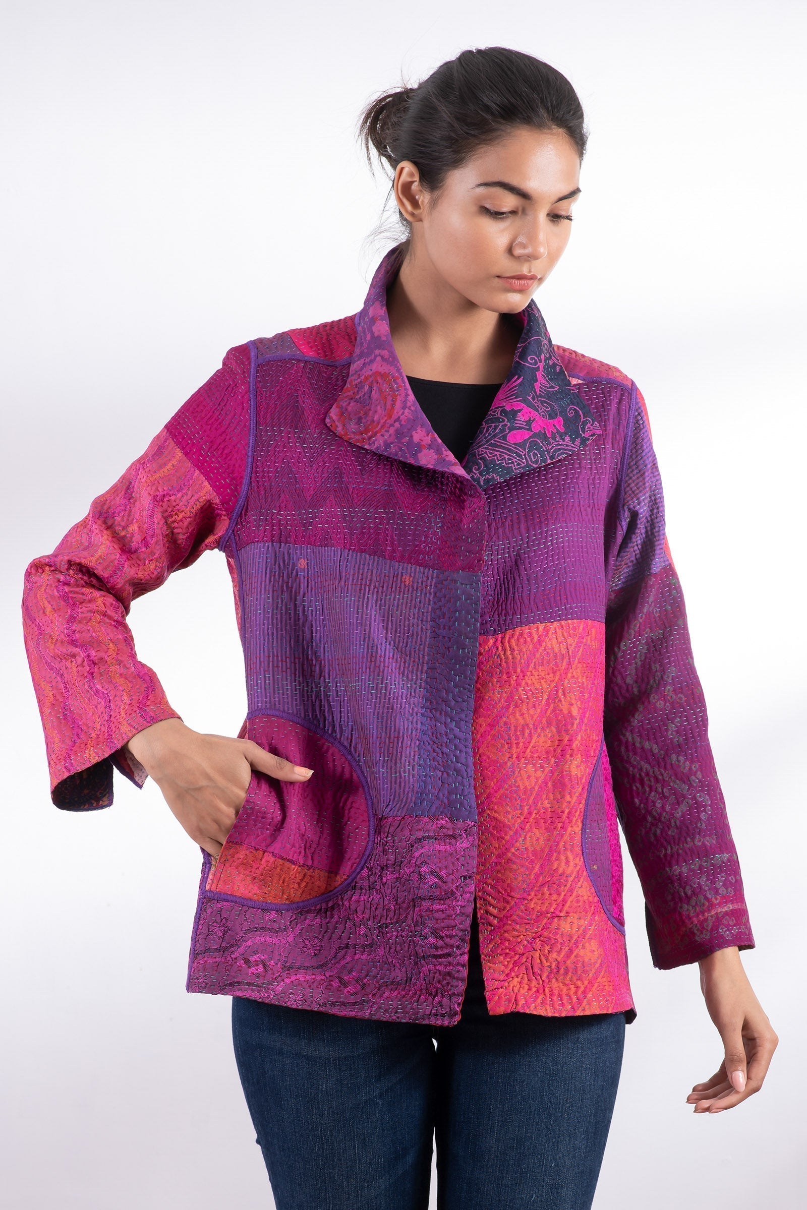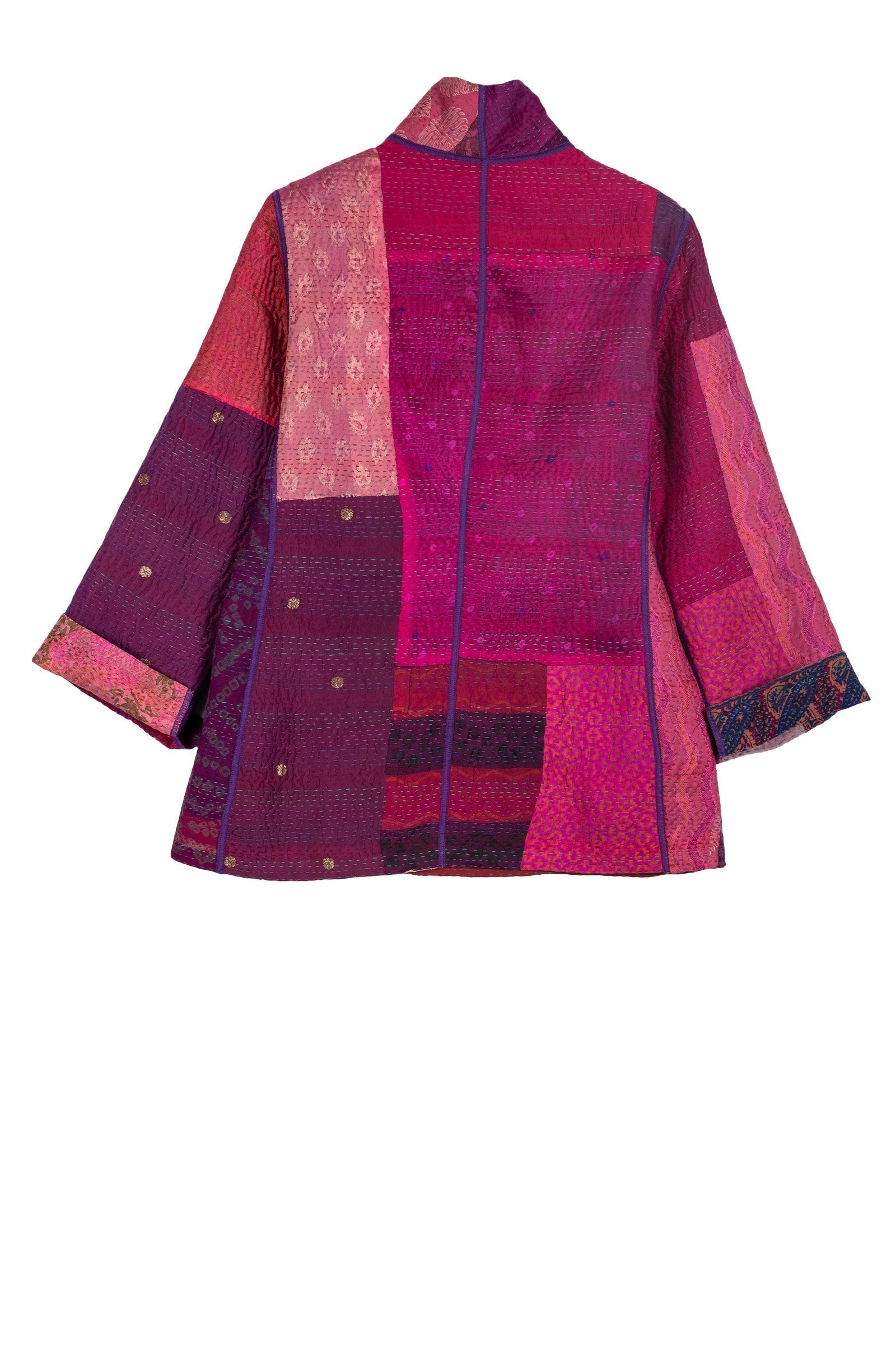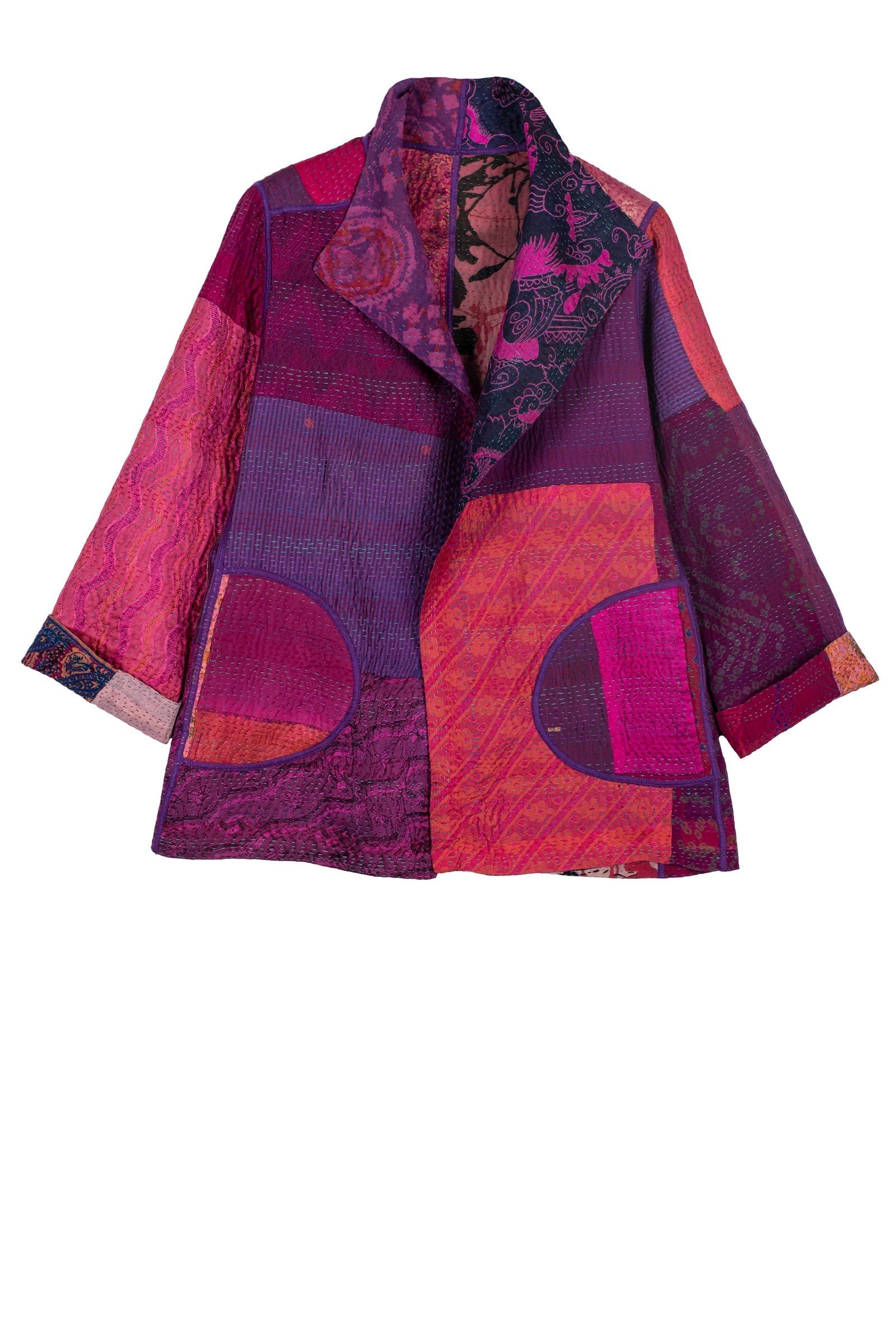 4 Layer Vintage Saris with Hand Stitches on Entire Garment - Reversible