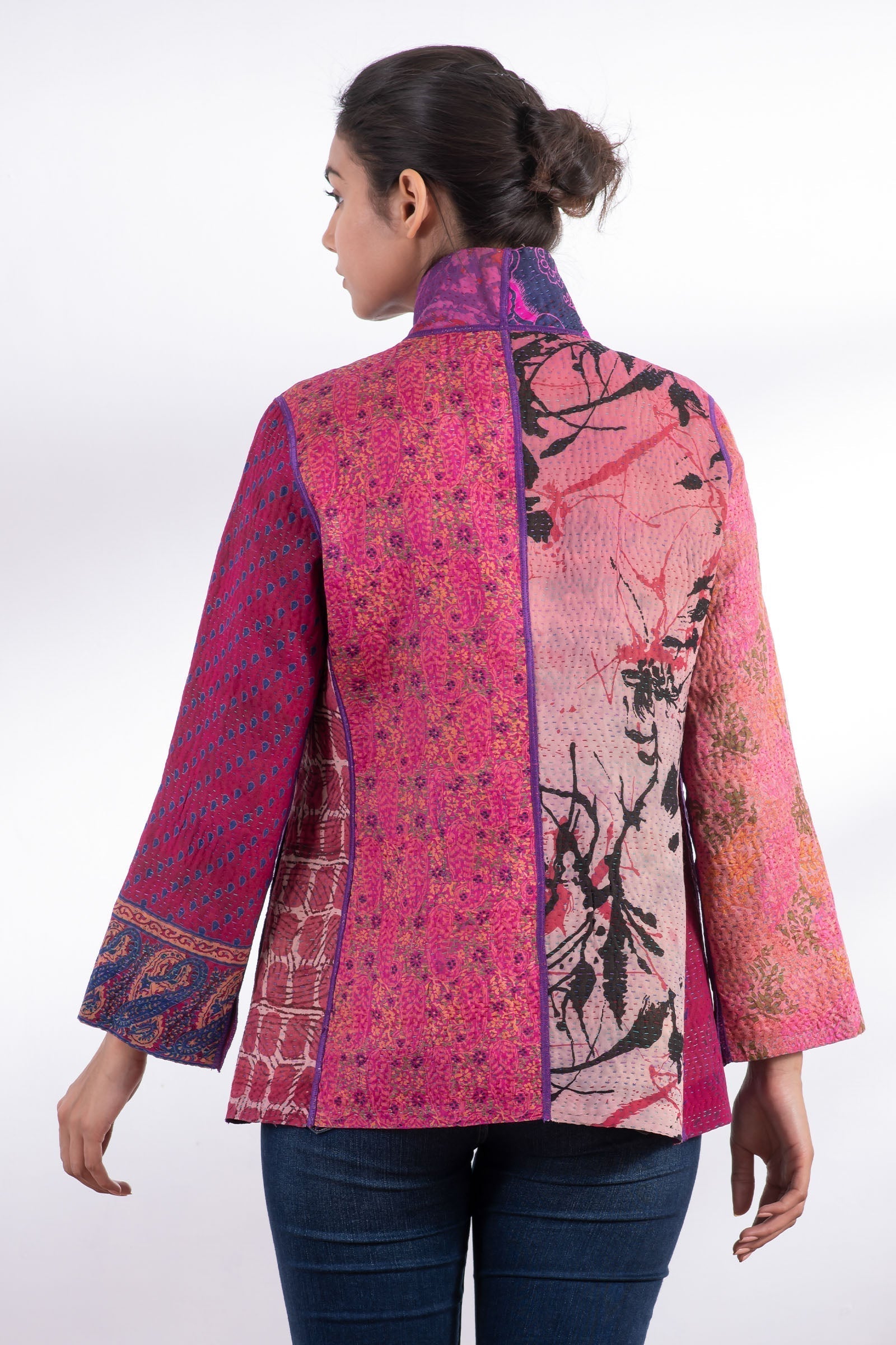 JACQUARD SILK KANTHA SHORT JACKET - js4007-pik -