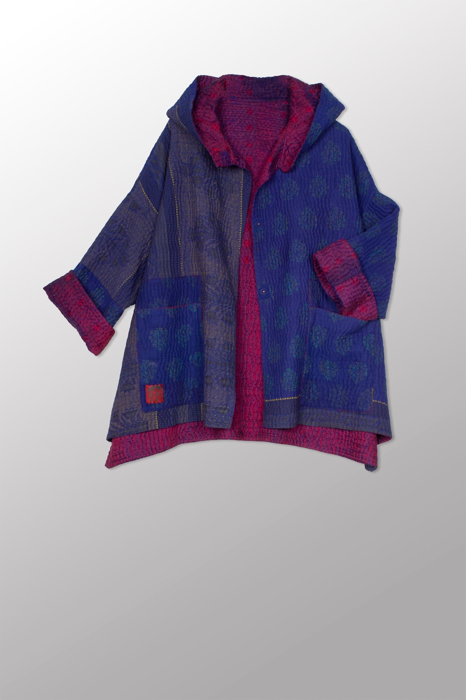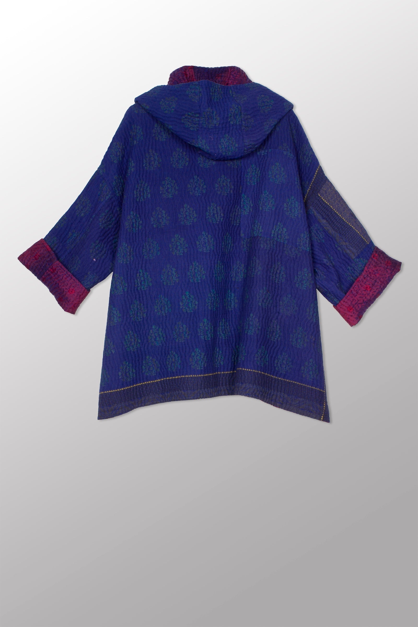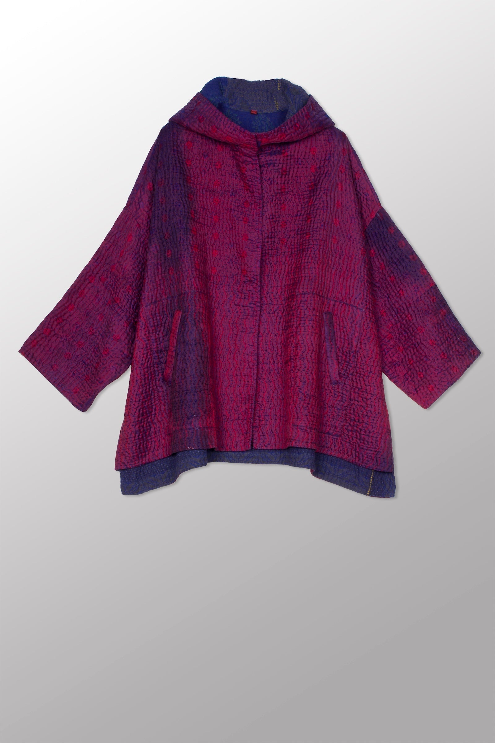 JACQUARD WITH WOVEN KANTHA HOODIE PONCHO - jq5064-0001a -