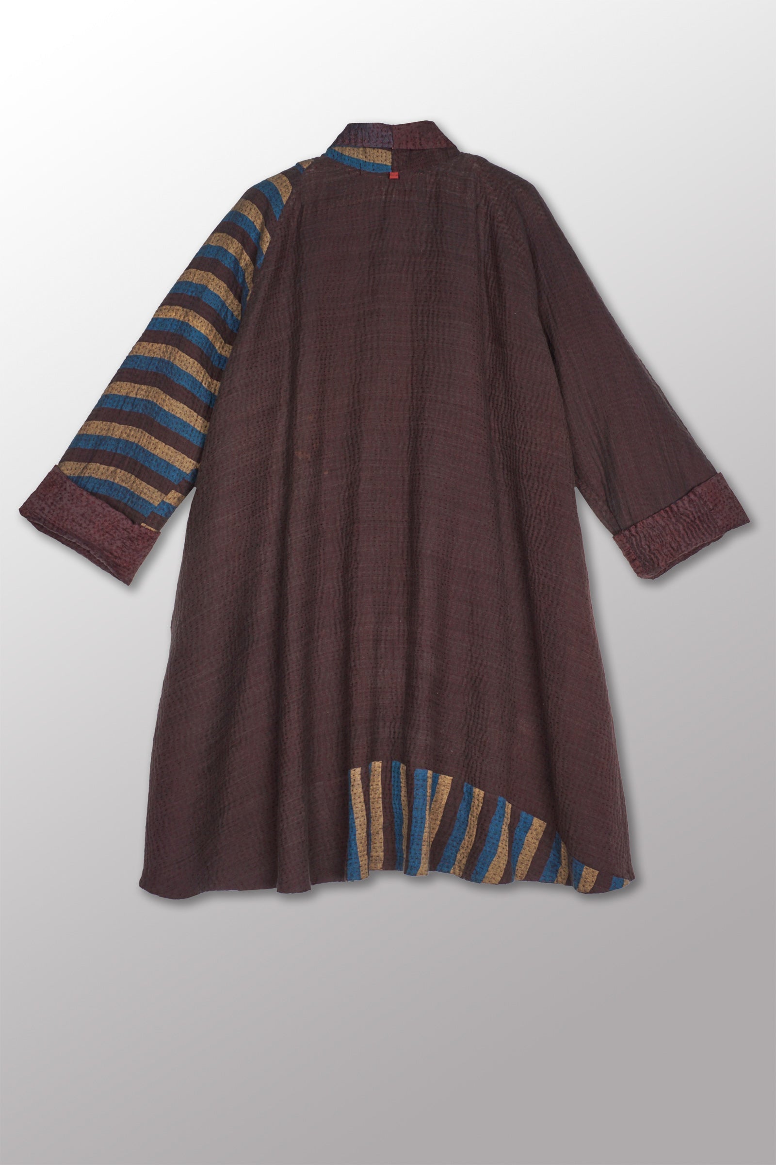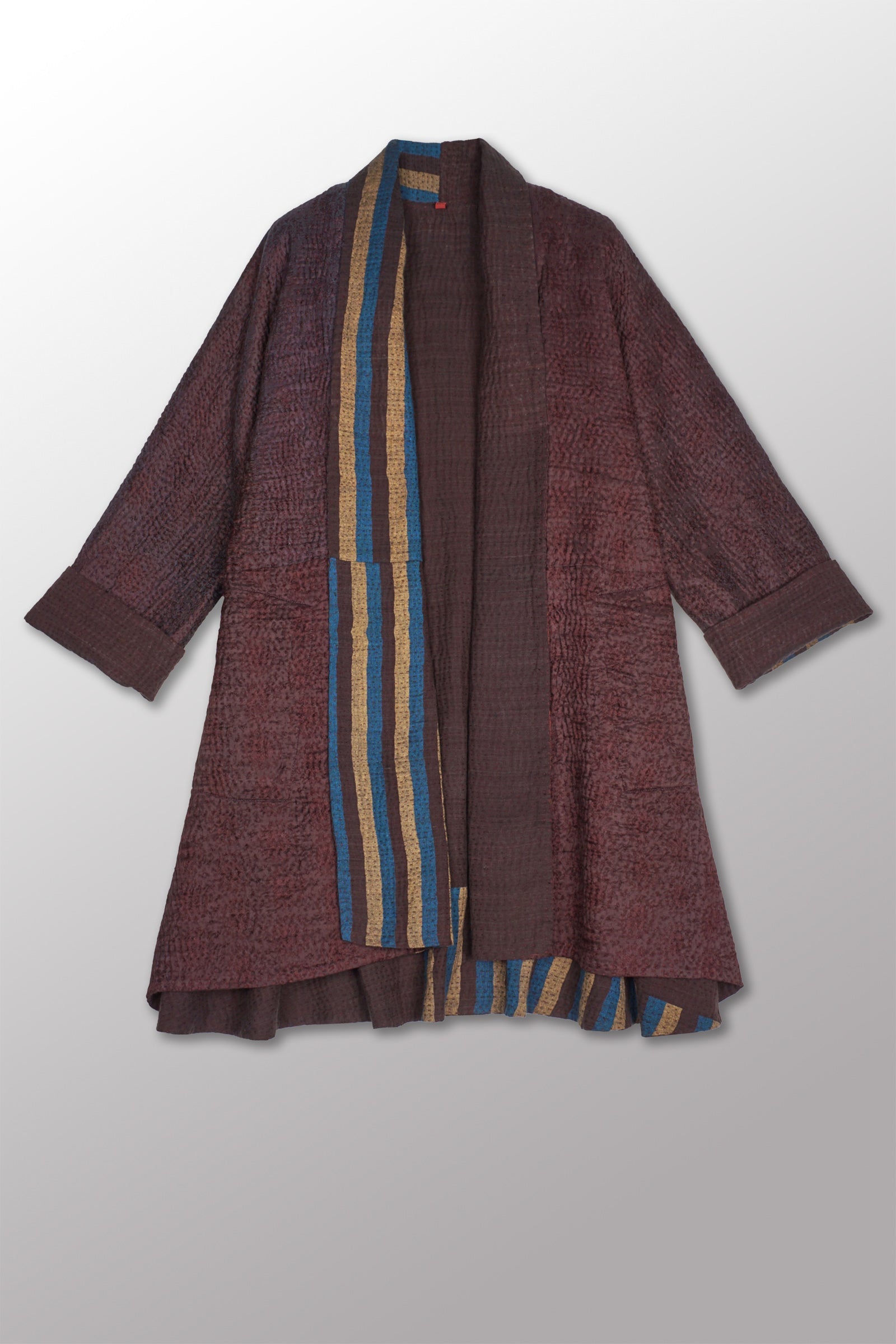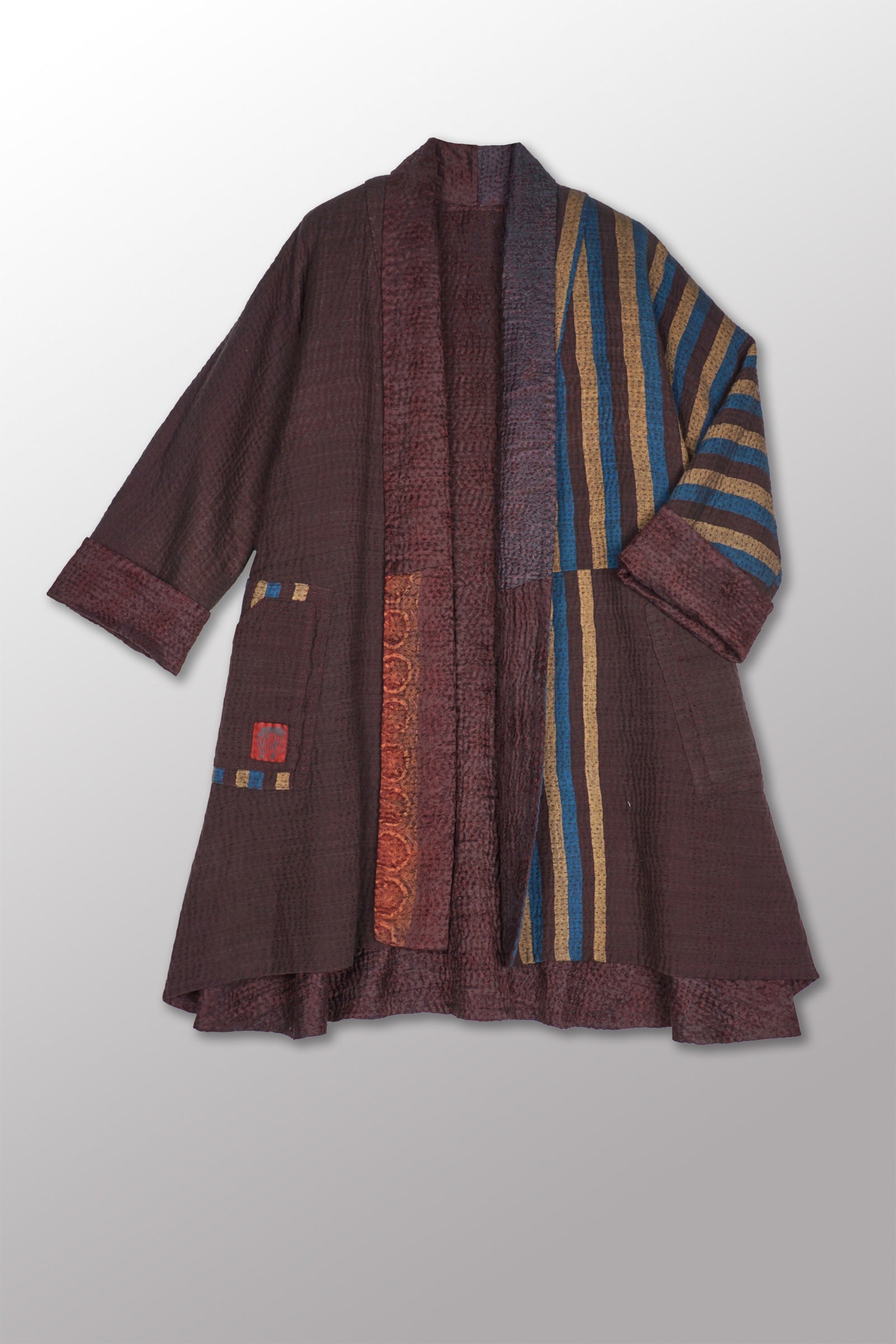 JACQUARD WITH WOVEN KANTHA KIMONO LONG JACKET - jq5005-0001a -