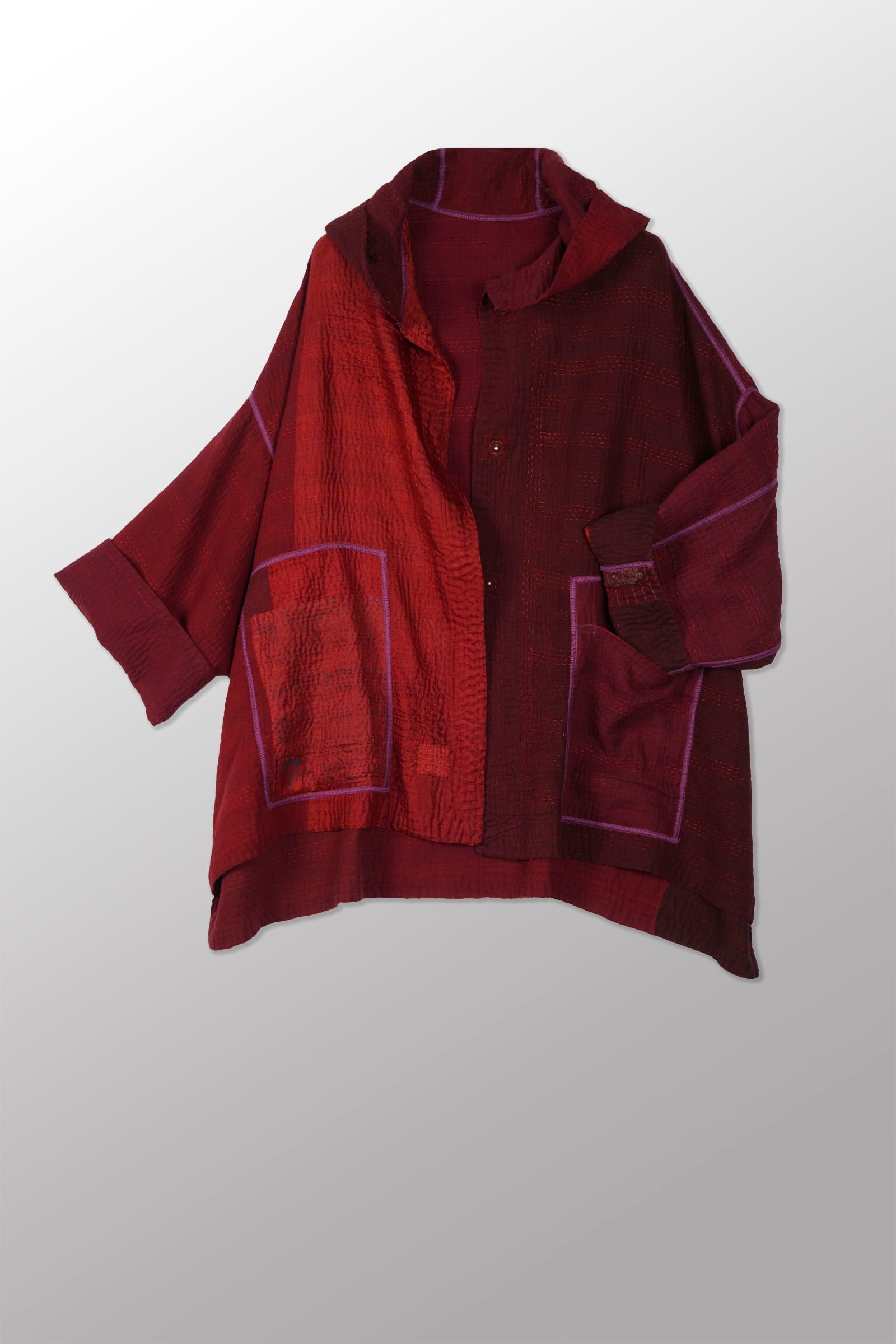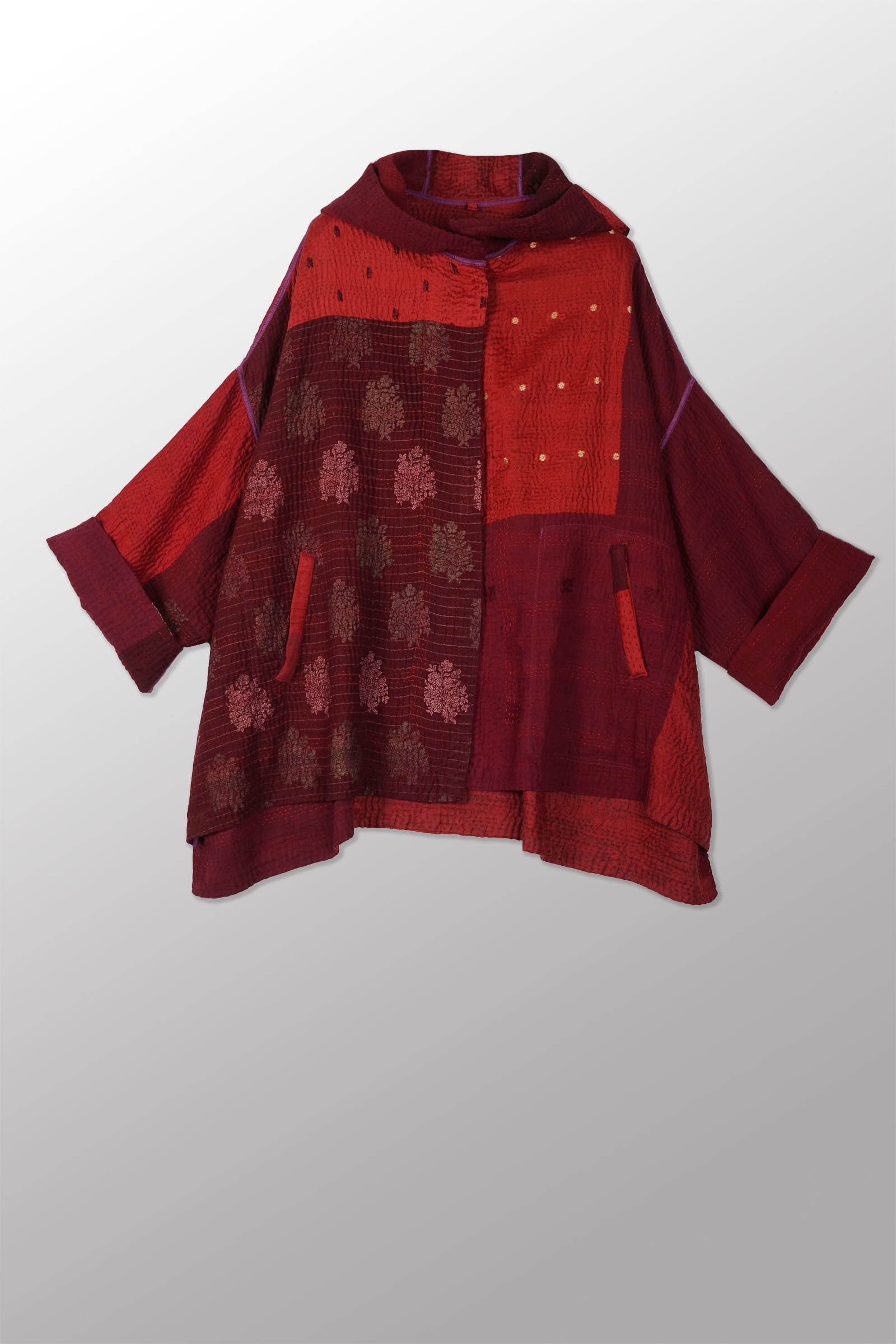 JAIPUR PATCH KANTHA BACK FLARE JKT - jp4046-red -