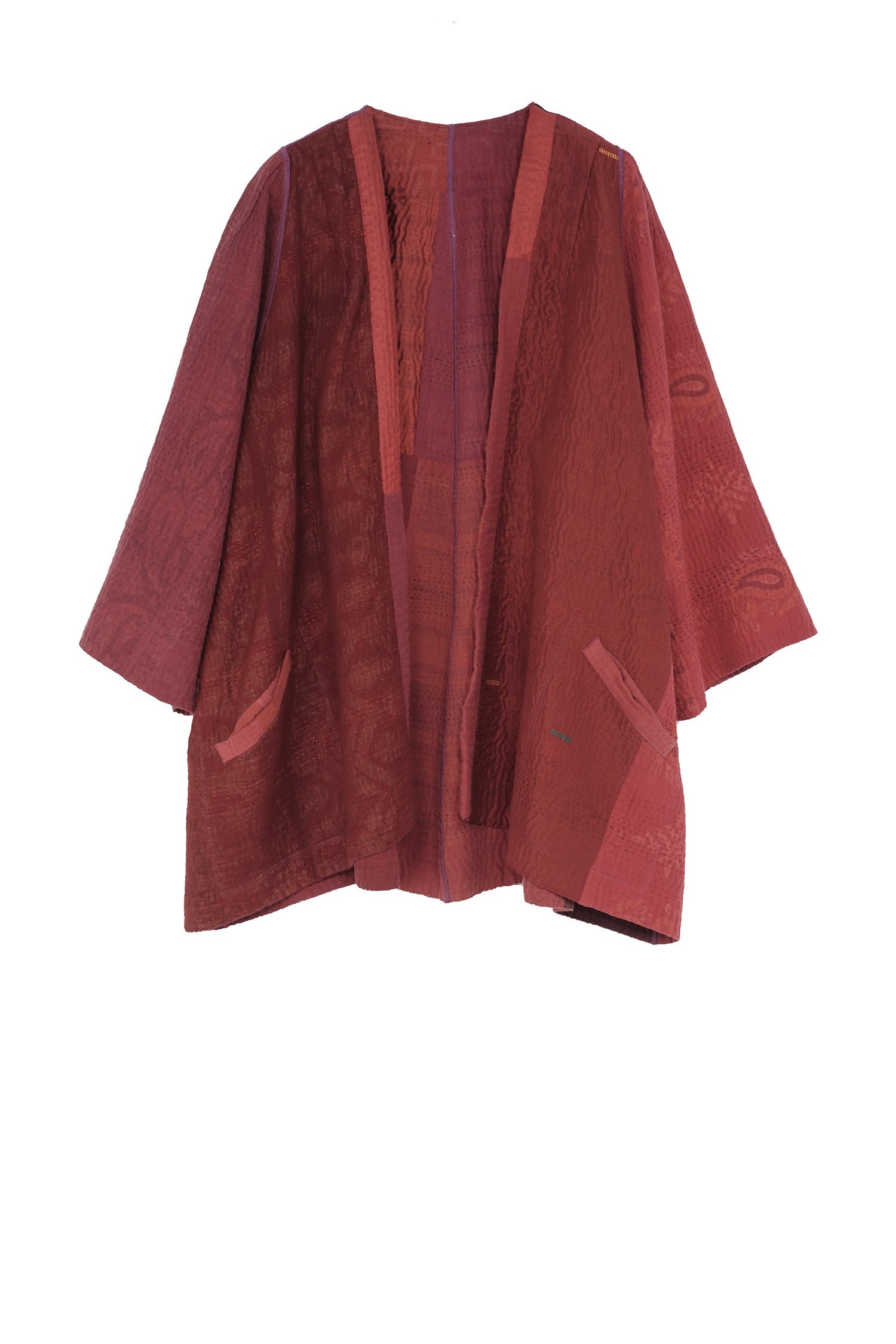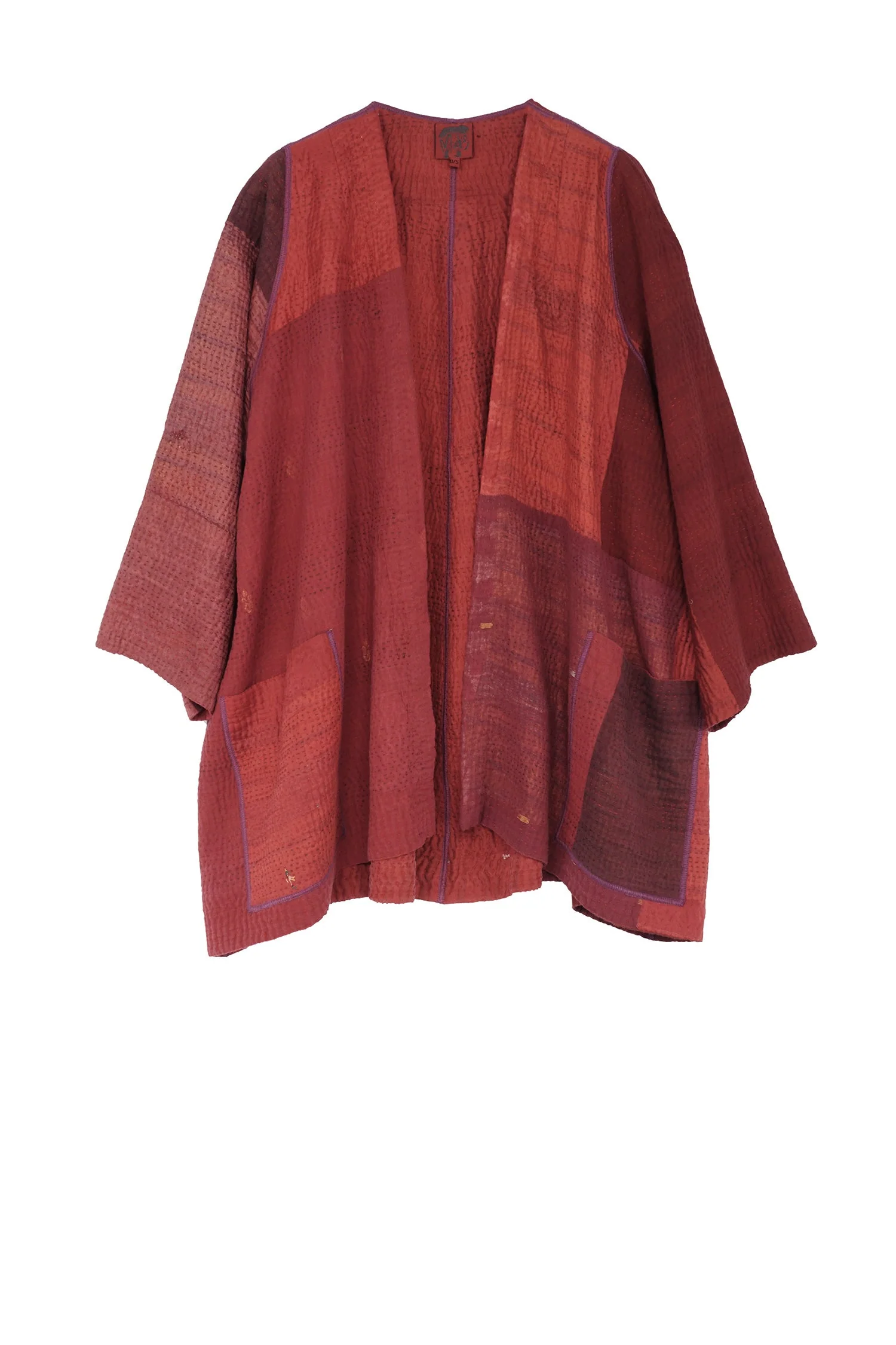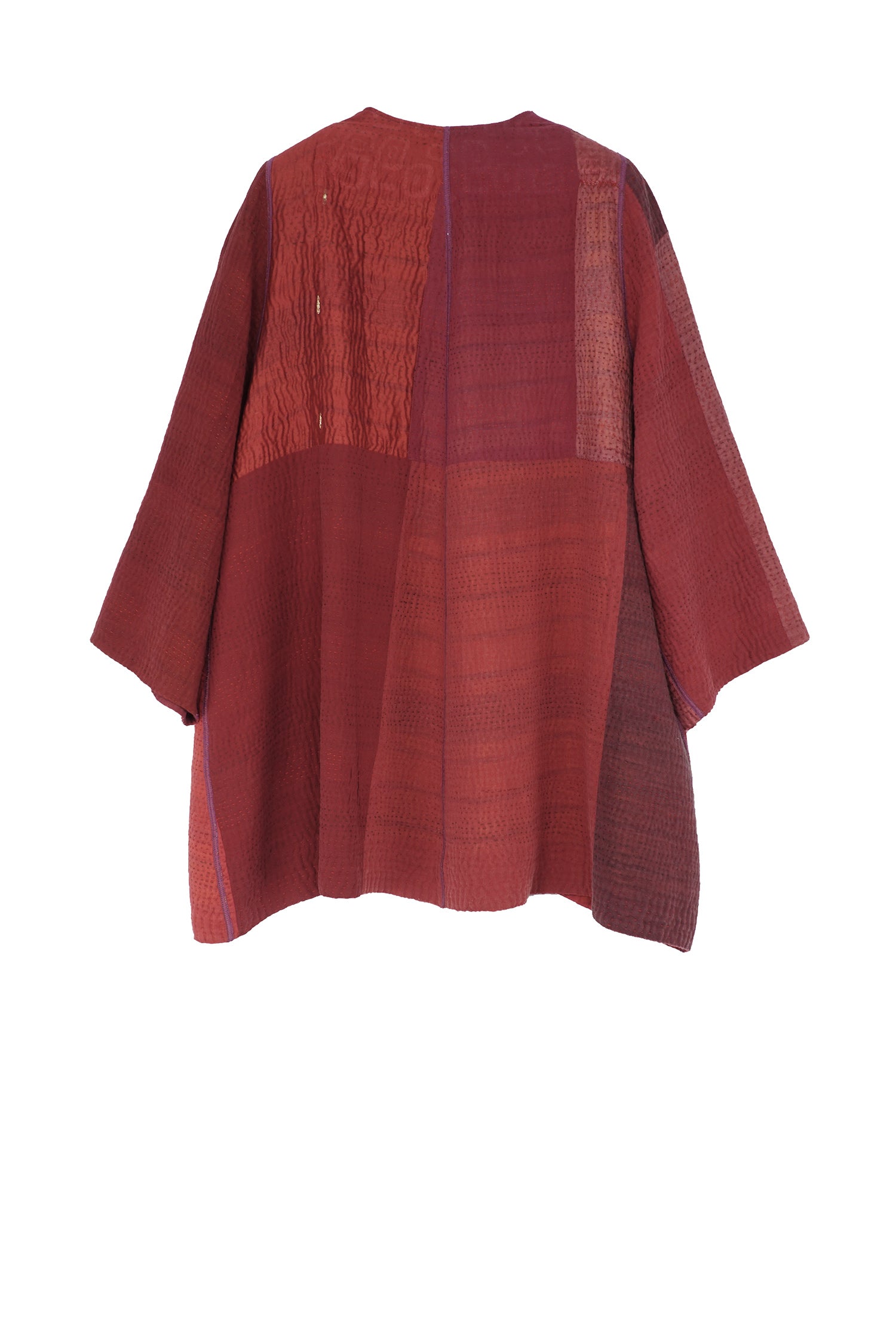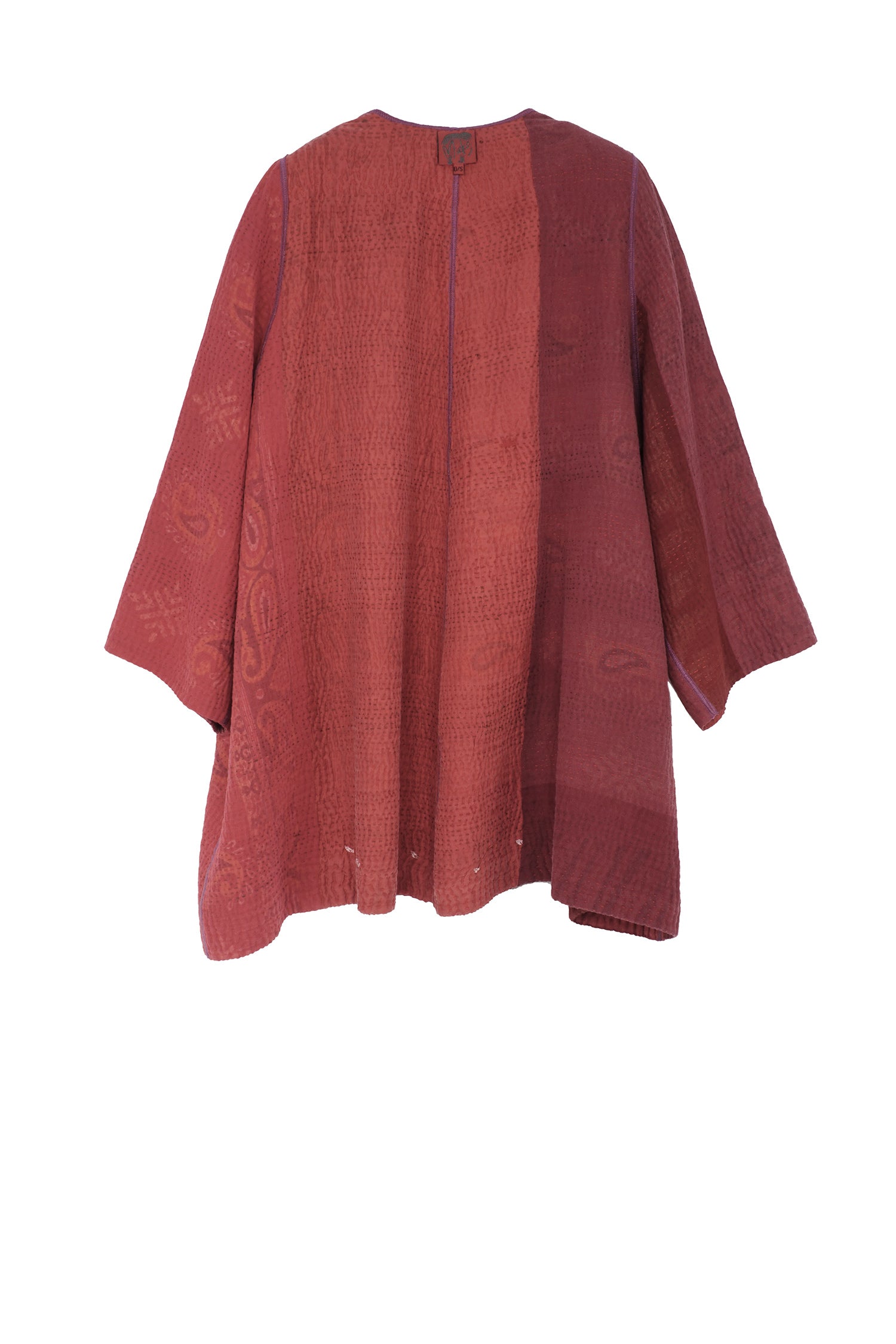 JAIPUR PATCH KANTHA BELL SHAPE LONG JKT - jp4051-red -