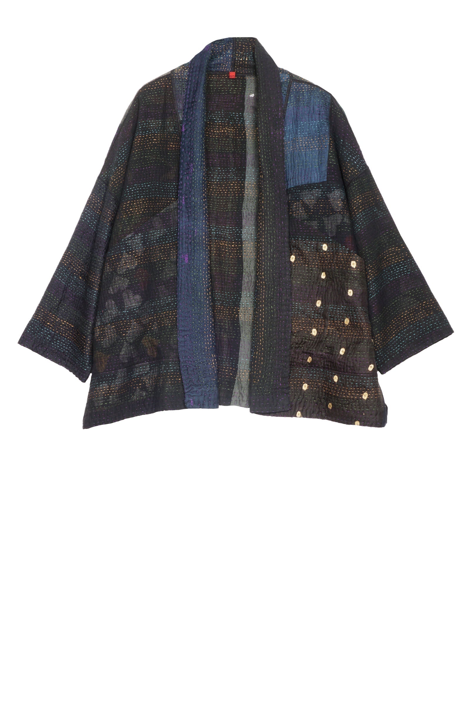 JAIPUR PATCH KANTHA BIG POCKET JACKET - jp4057-blk -