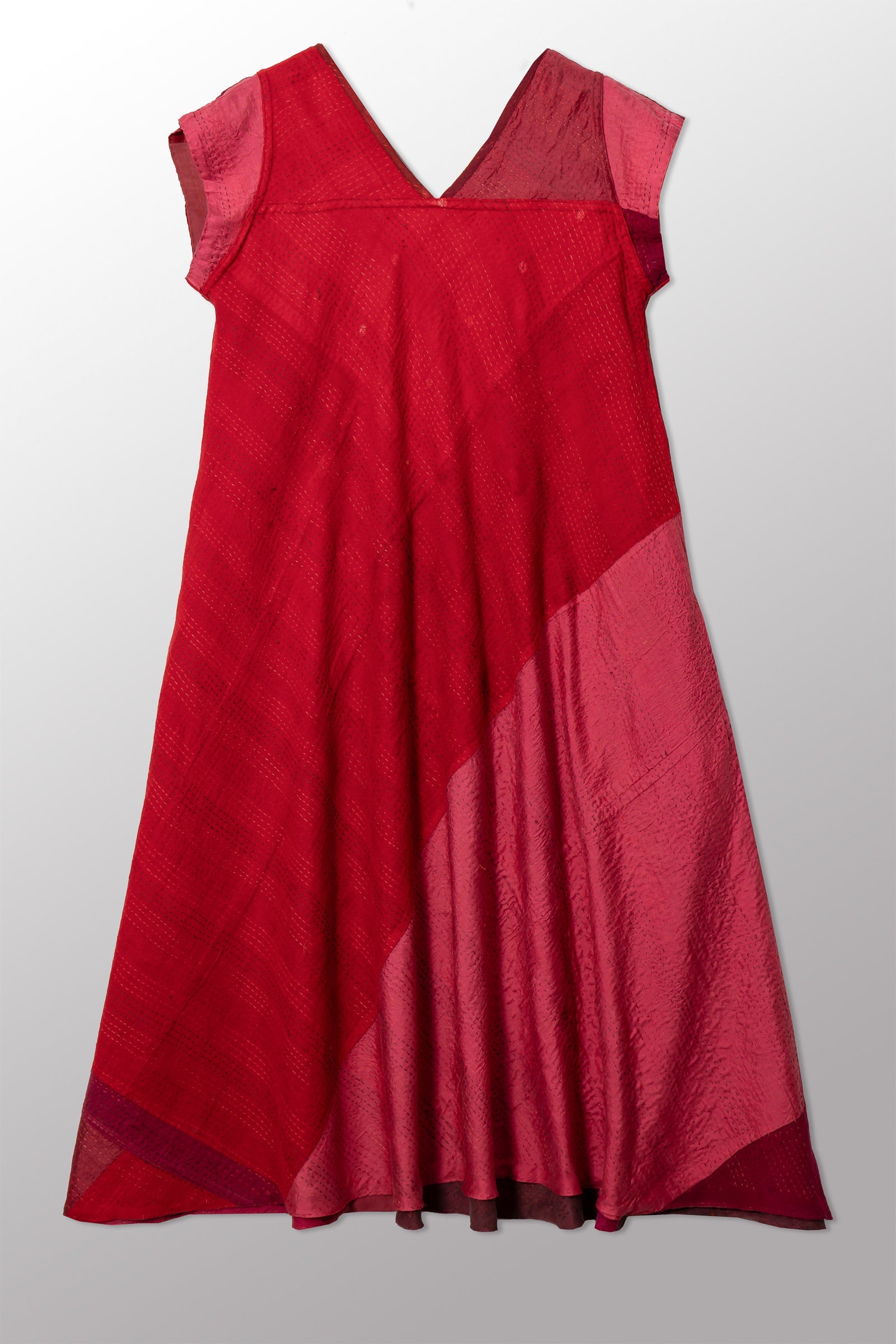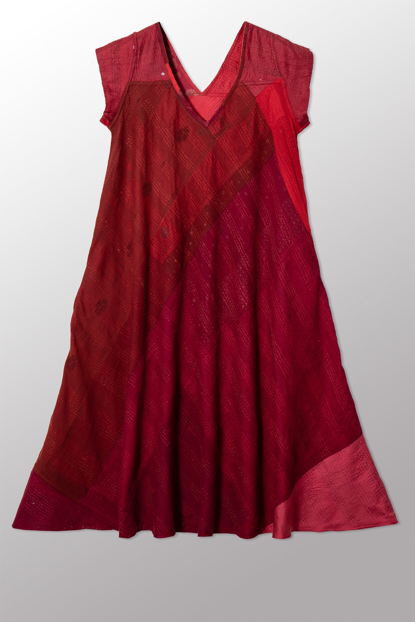 JAIPUR PATCH KANTHA CAP SLV. FLARE DRESS - jp2425-red -