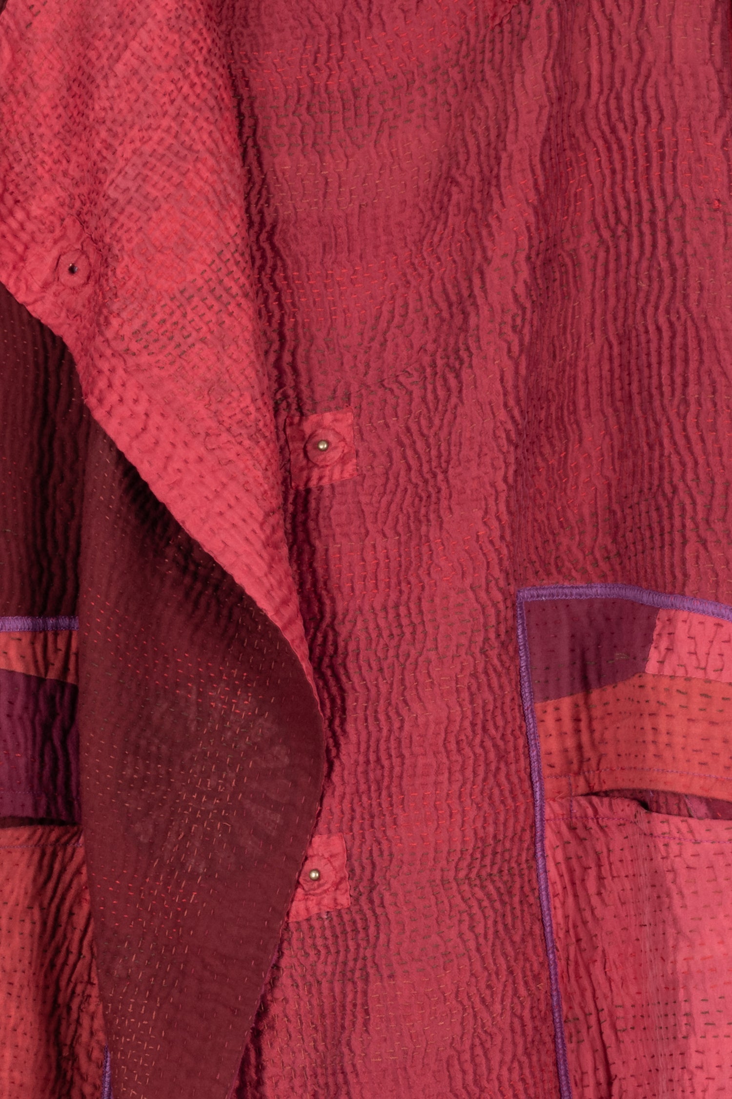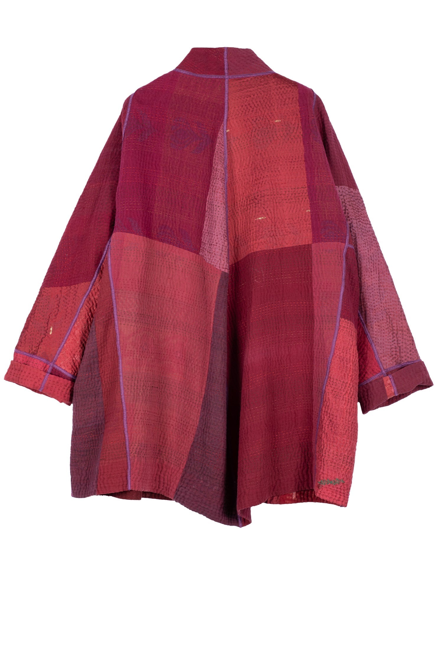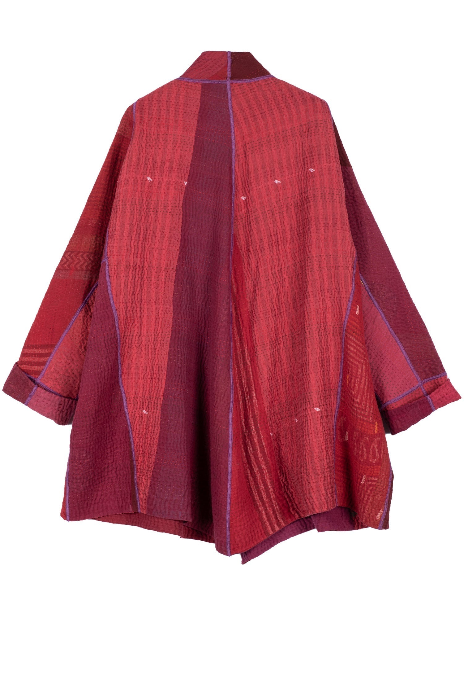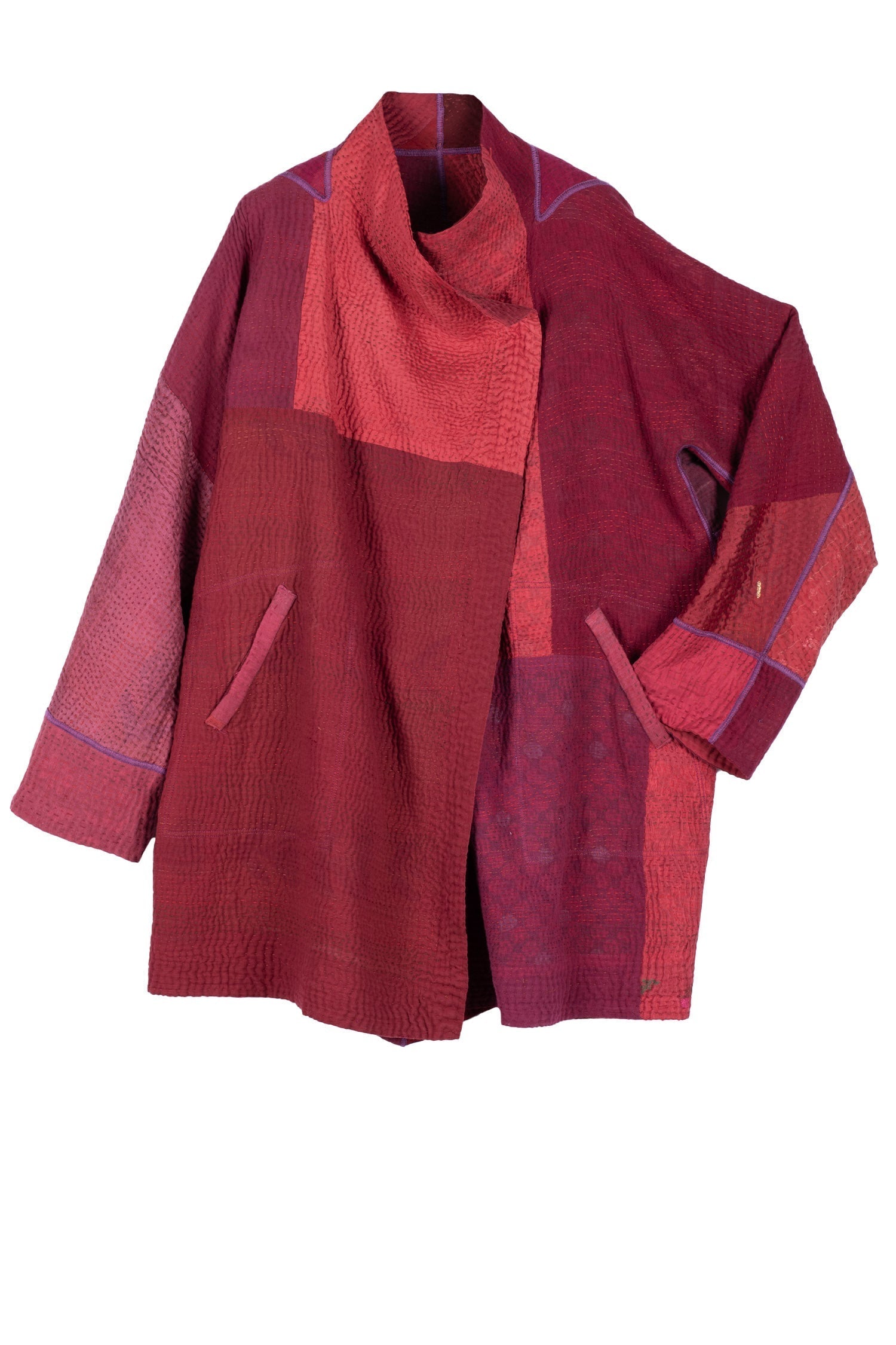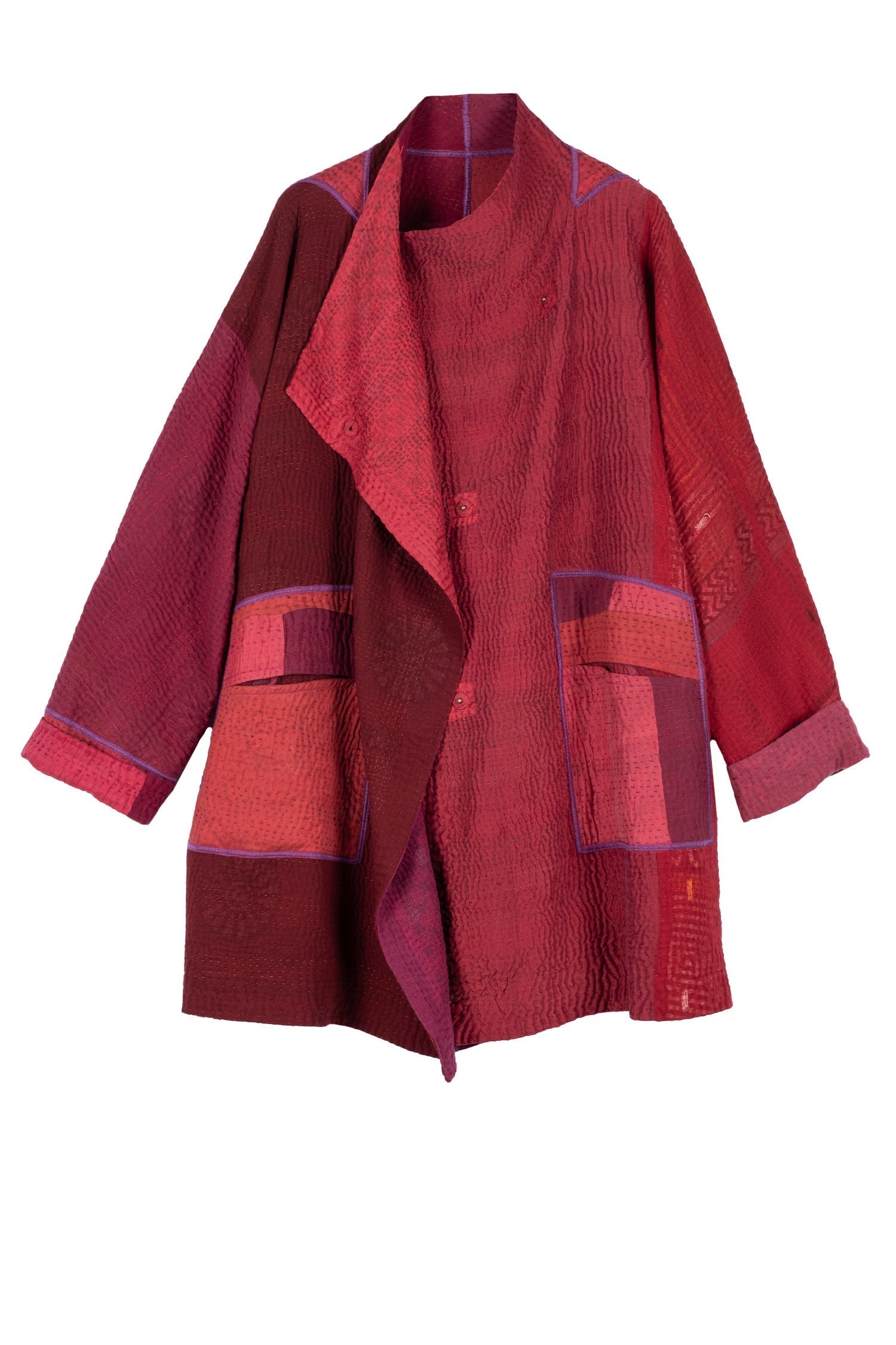 JAIPUR PATCH KANTHA FUNNEL COLLAR COAT - jp4312-red -