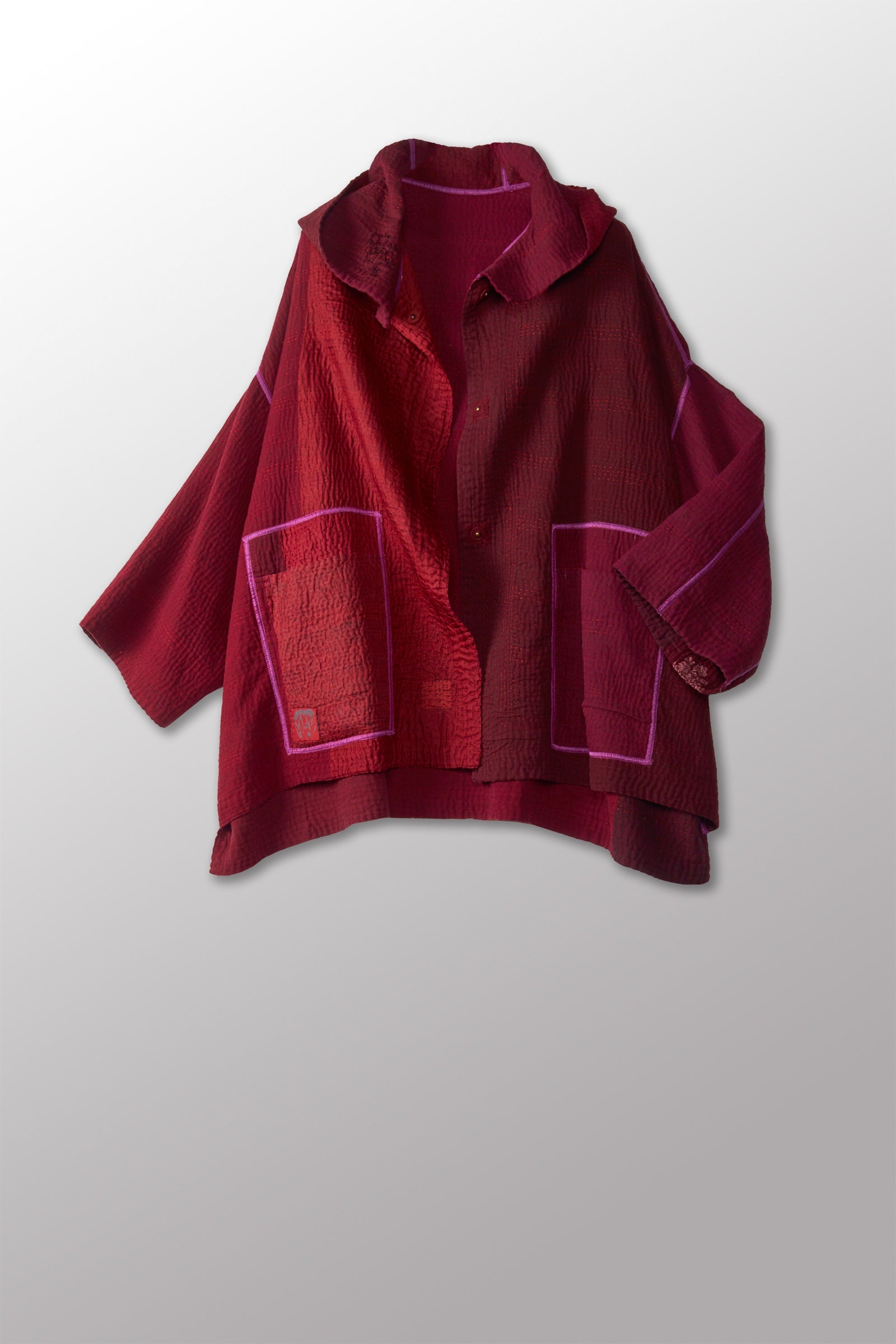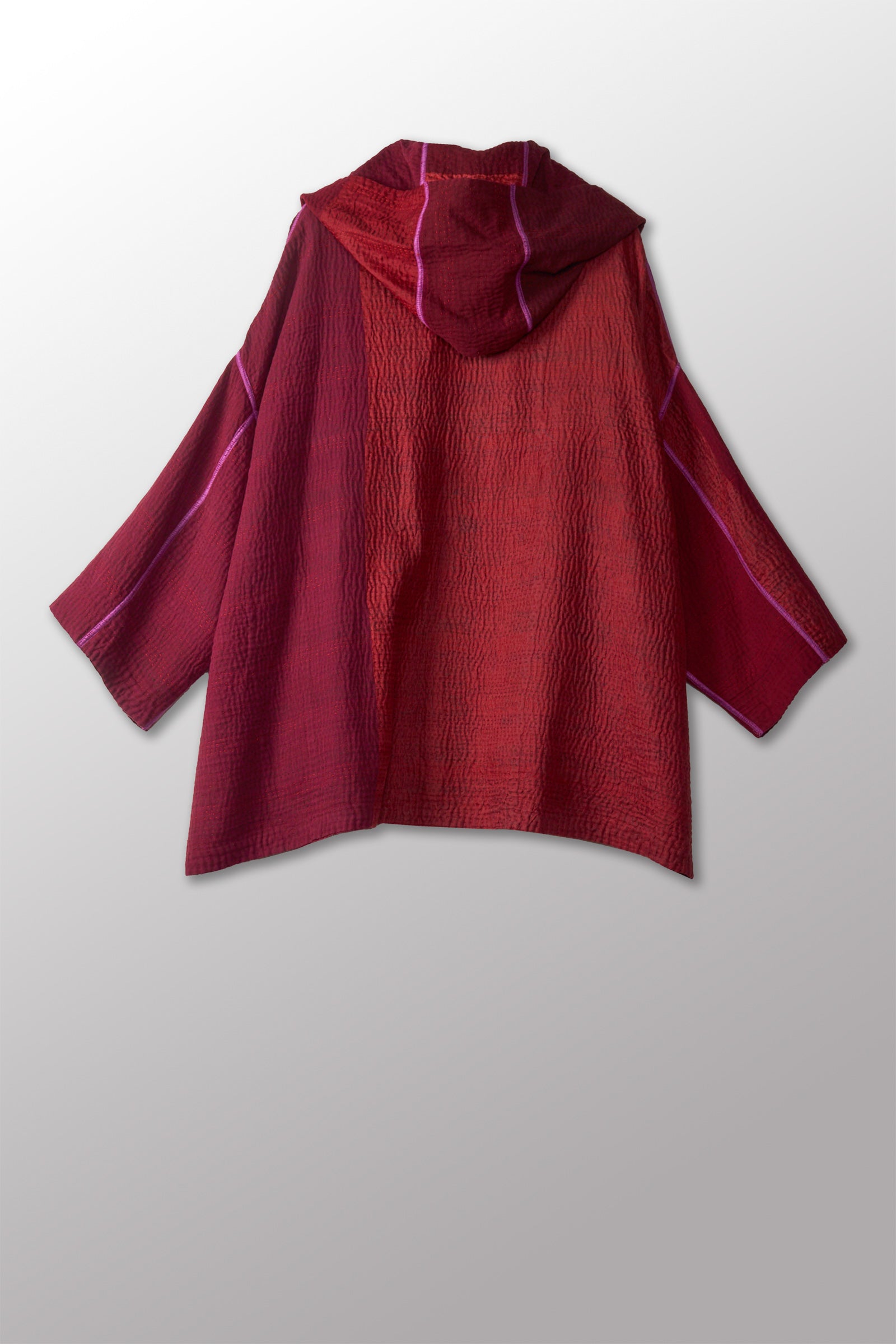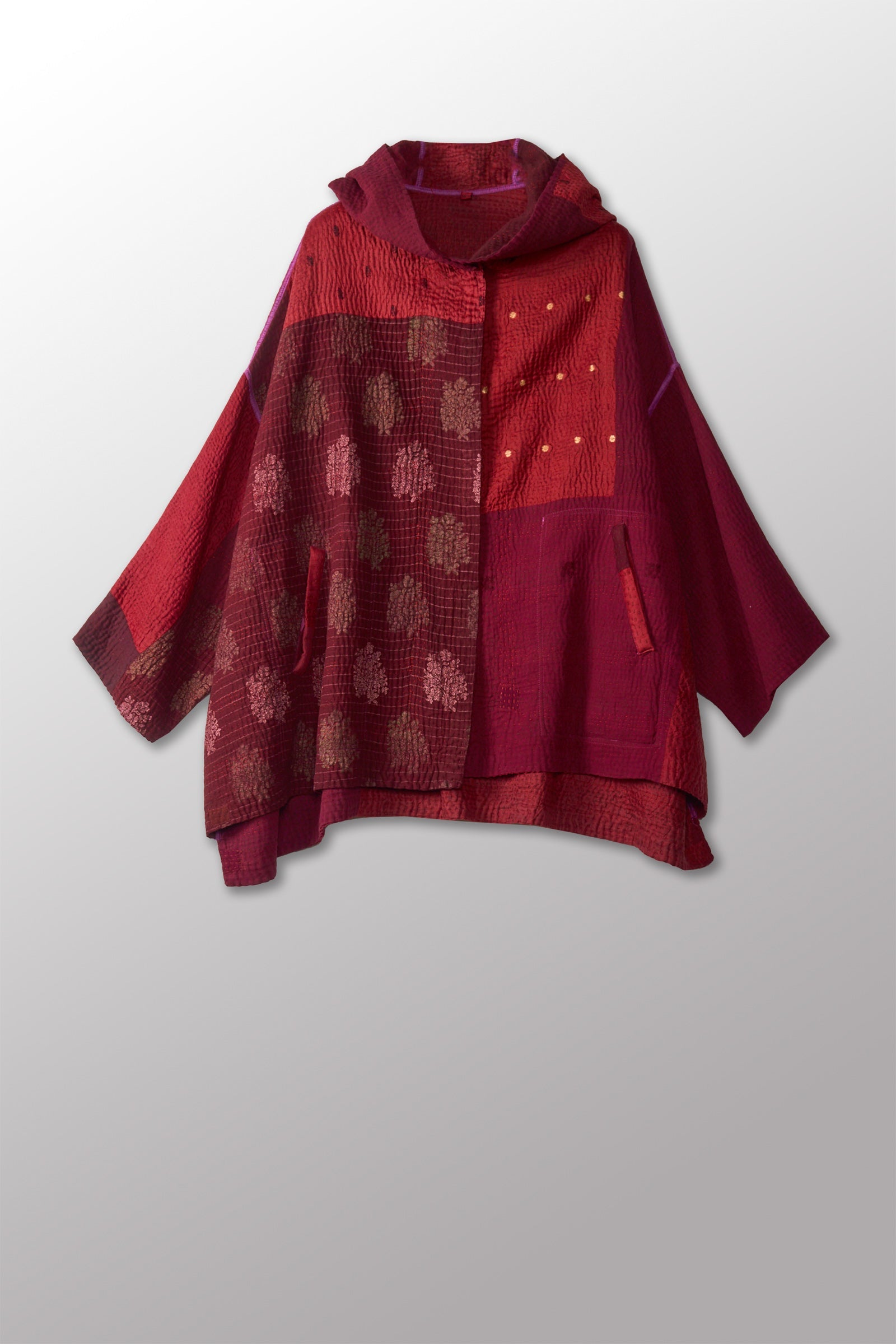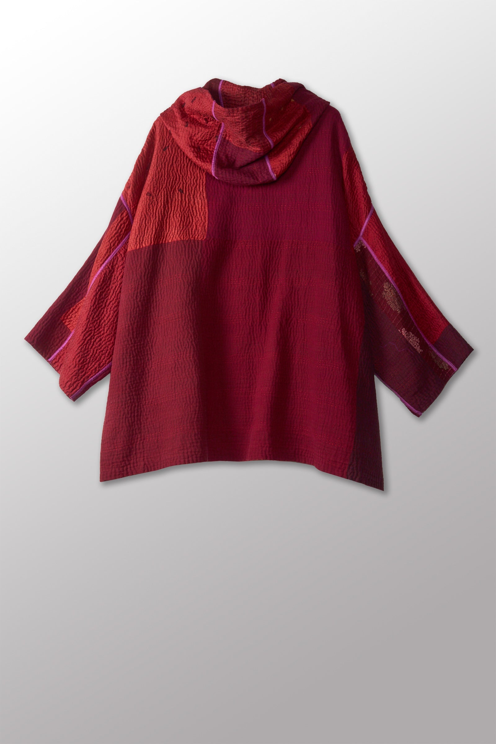 JAIPUR PATCH KANTHA HOODIE PONCHO - jp4064-red -