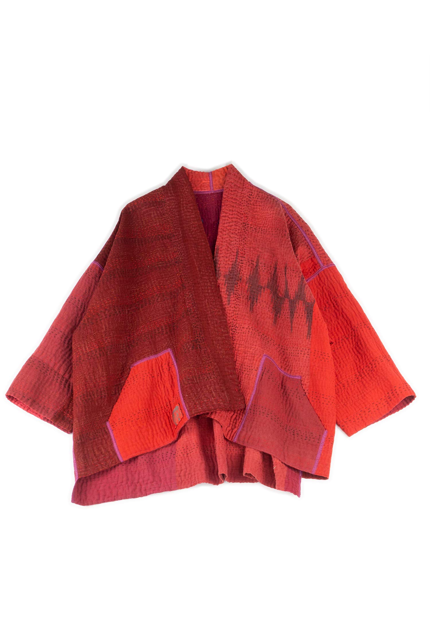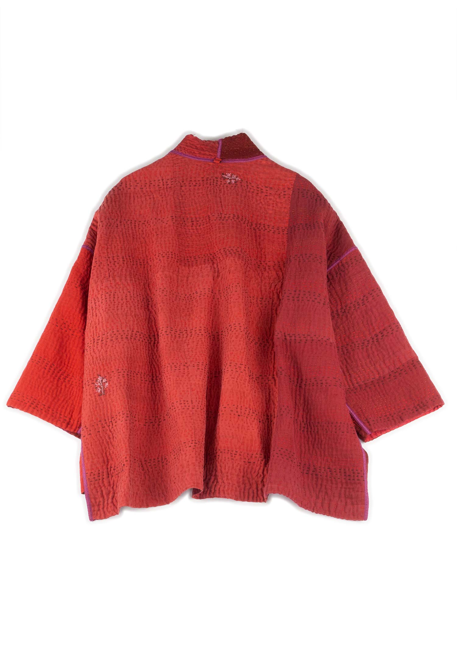 JAIPUR PATCH KANTHA MINI KIMONO JKT - jp4055-red -