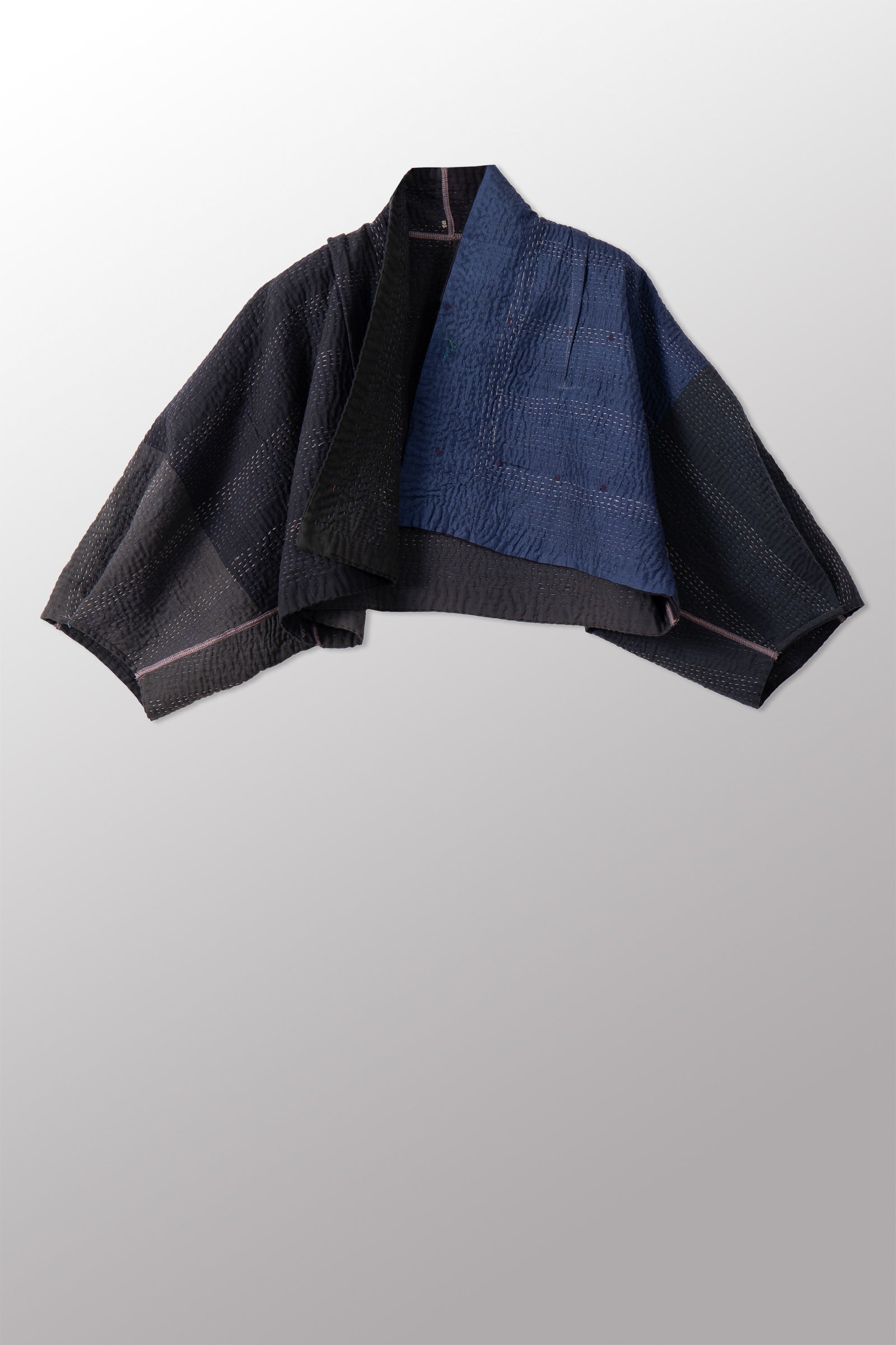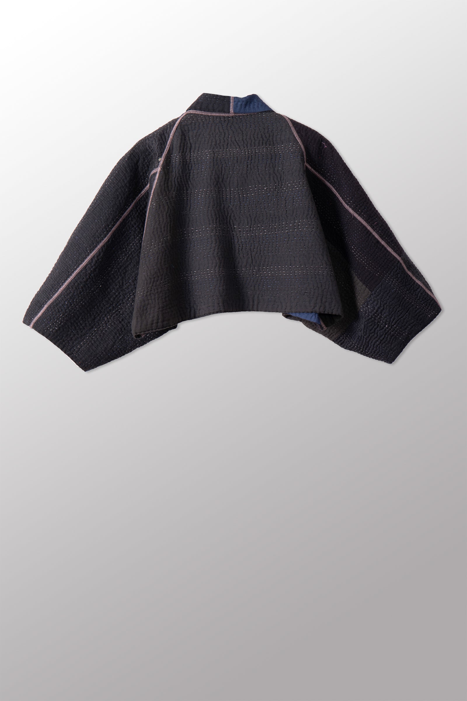 JAIPUR PATCH KANTHA PUFF SLV. SHRUG - jp4062-blk -