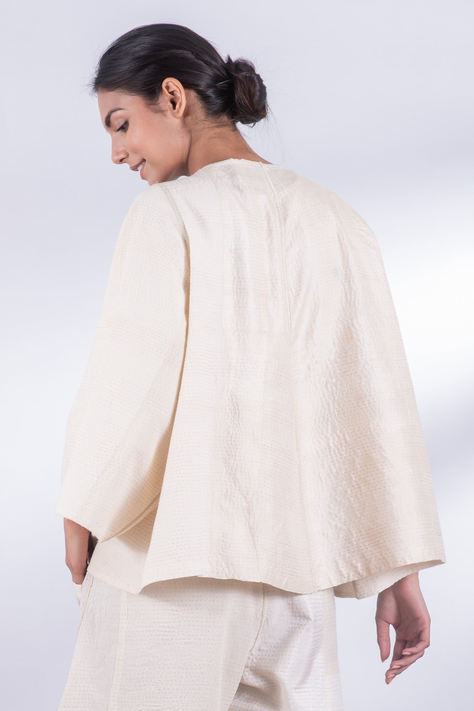 JAIPUR WHITE KANTHA BELL SHAPE JKT - jw2048-ivy -