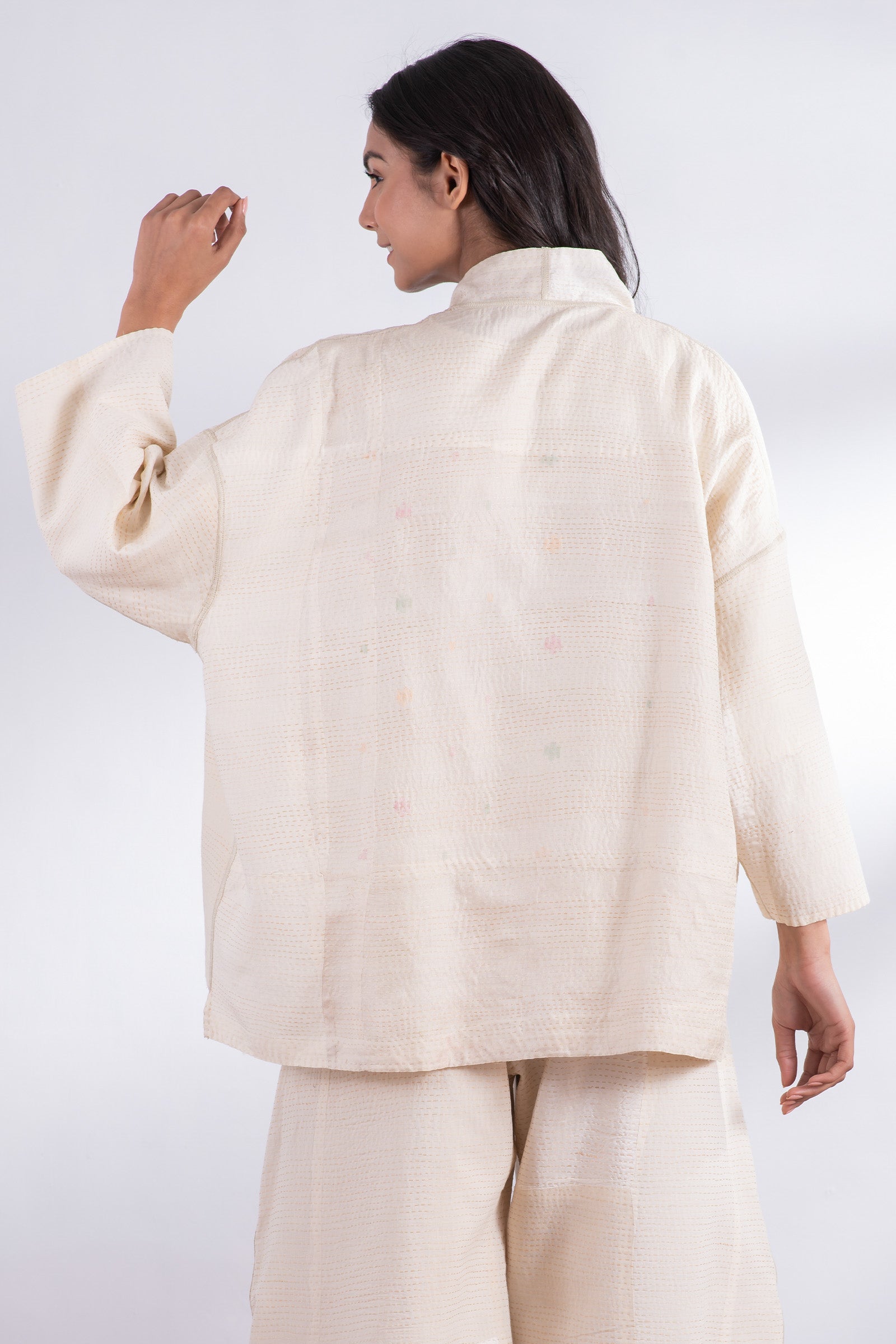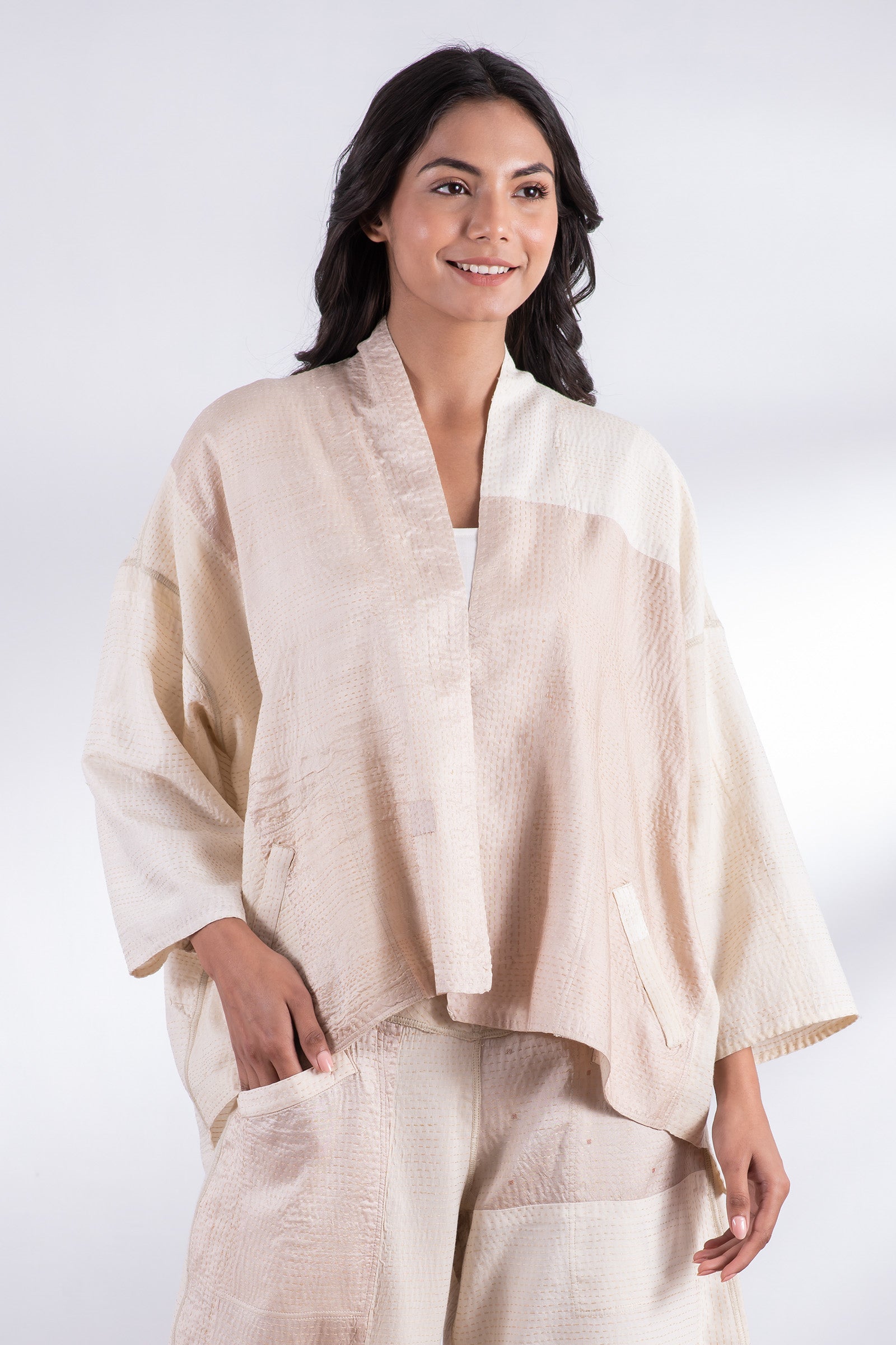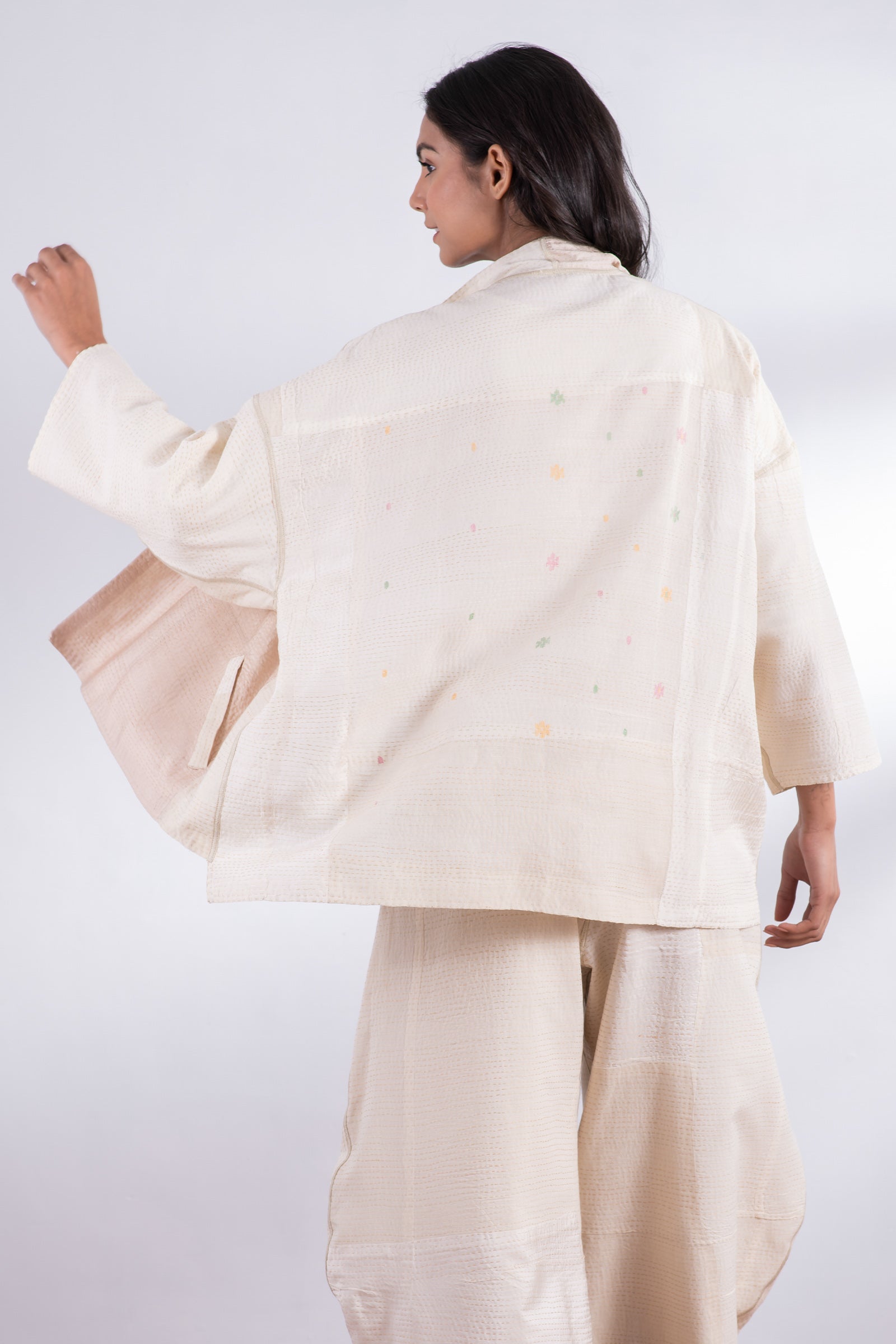 JAIPUR WHITE KANTHA MINI KIMONO JKT - jw2055-ivy -