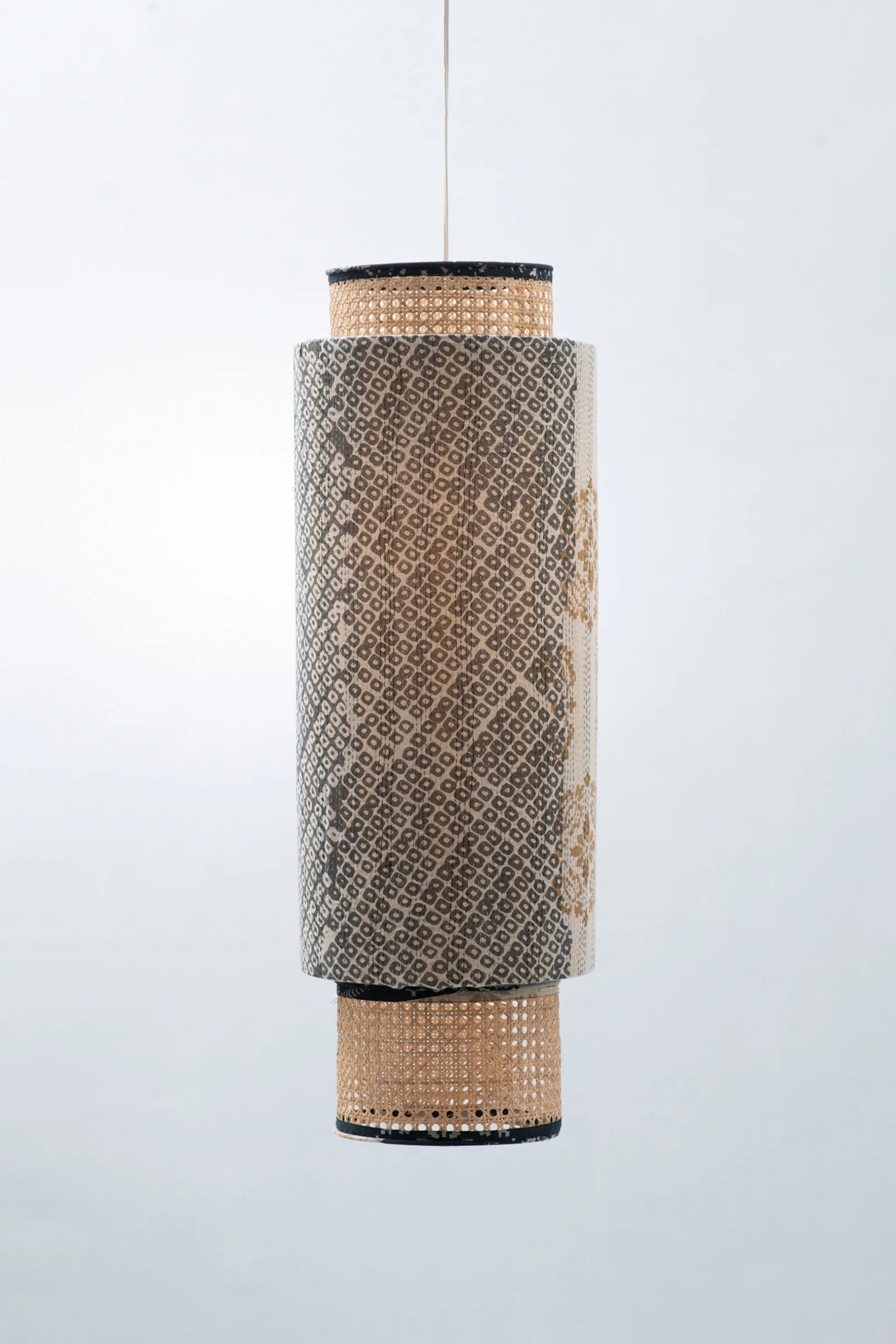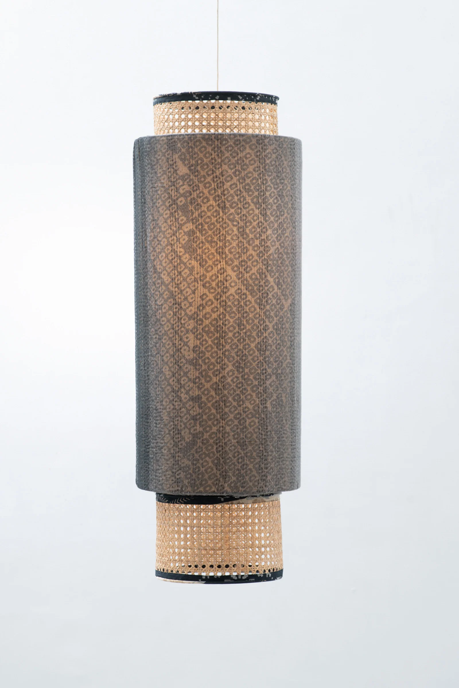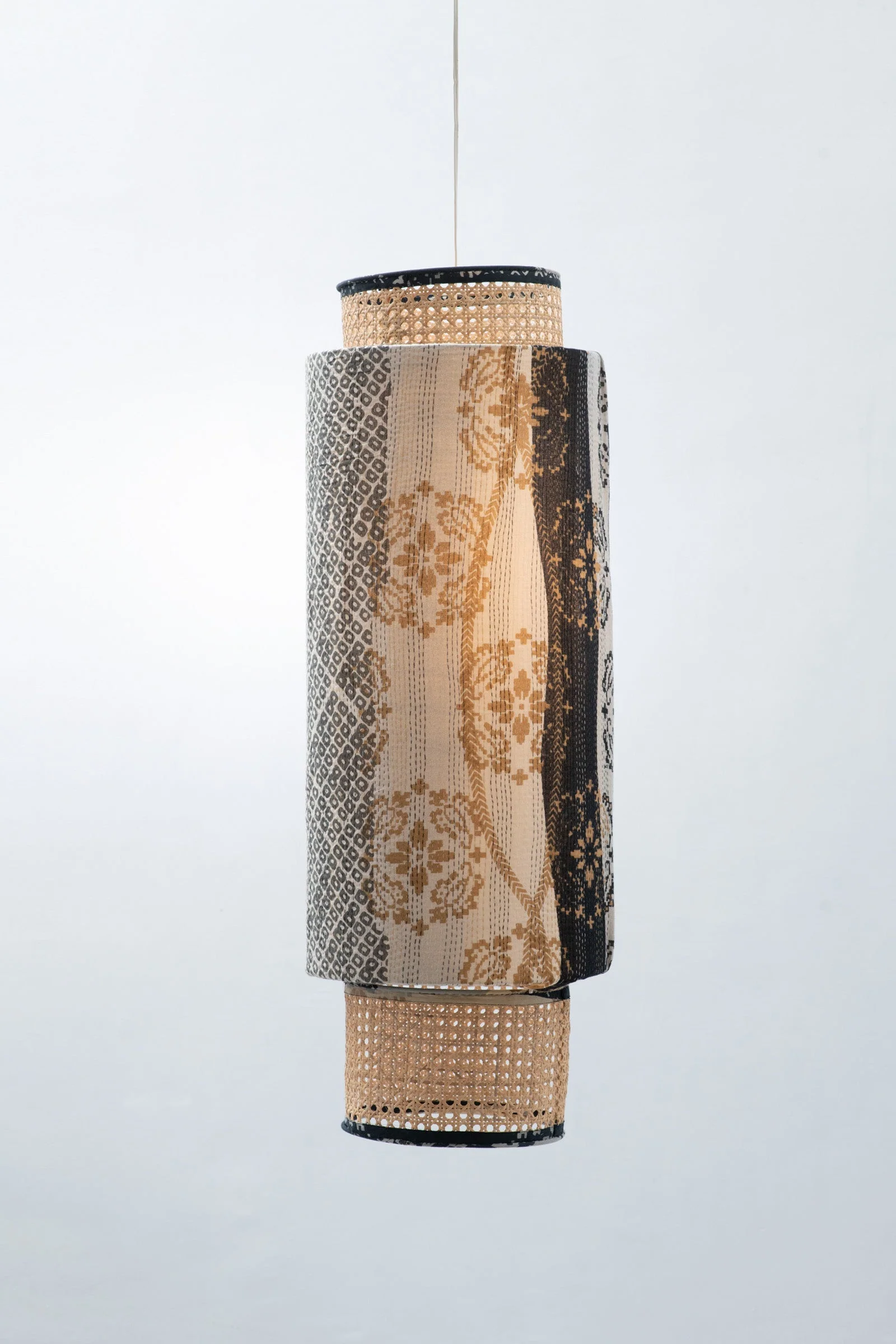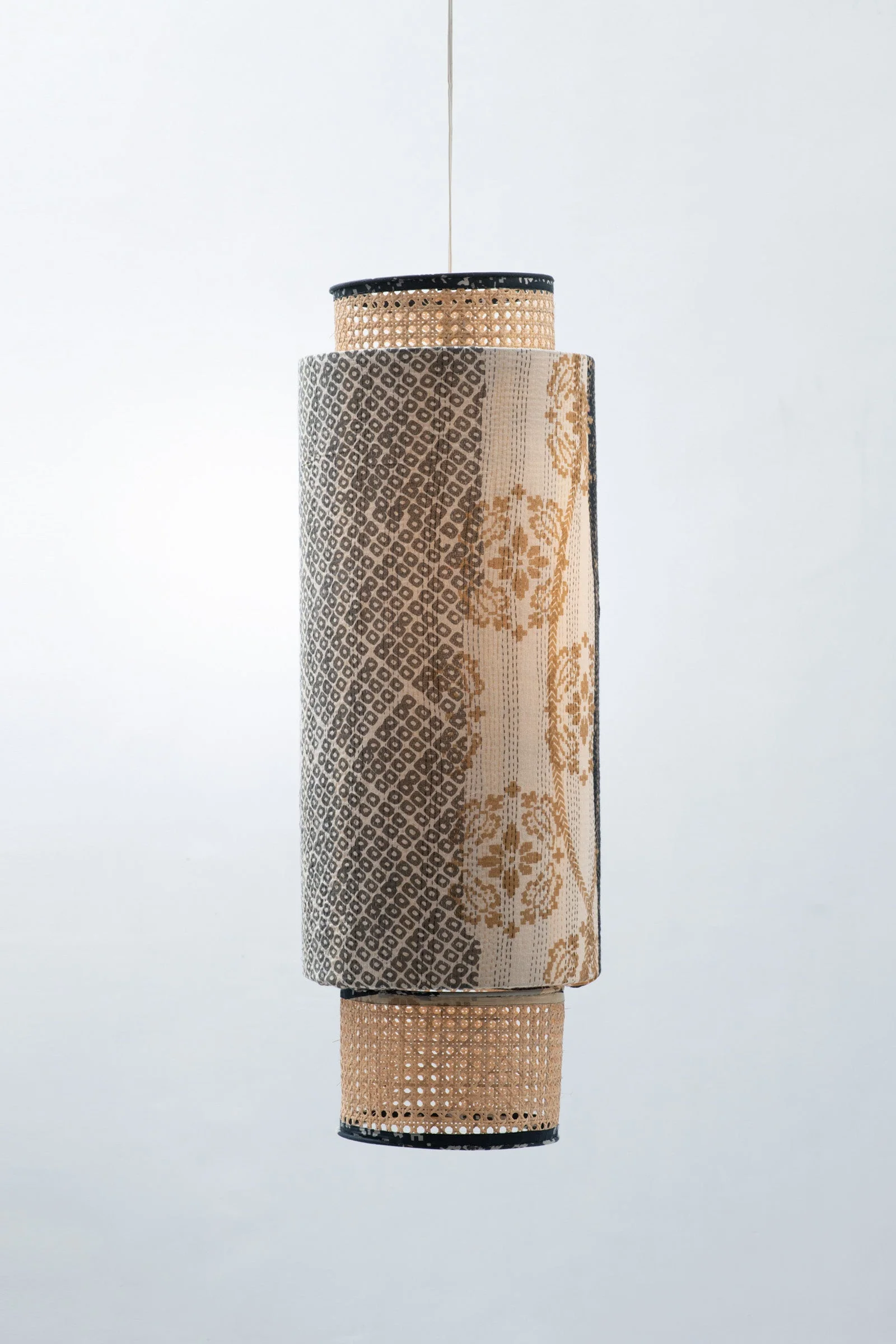 Kimono Cotton Kantha Hanging Lamp -Gray -
