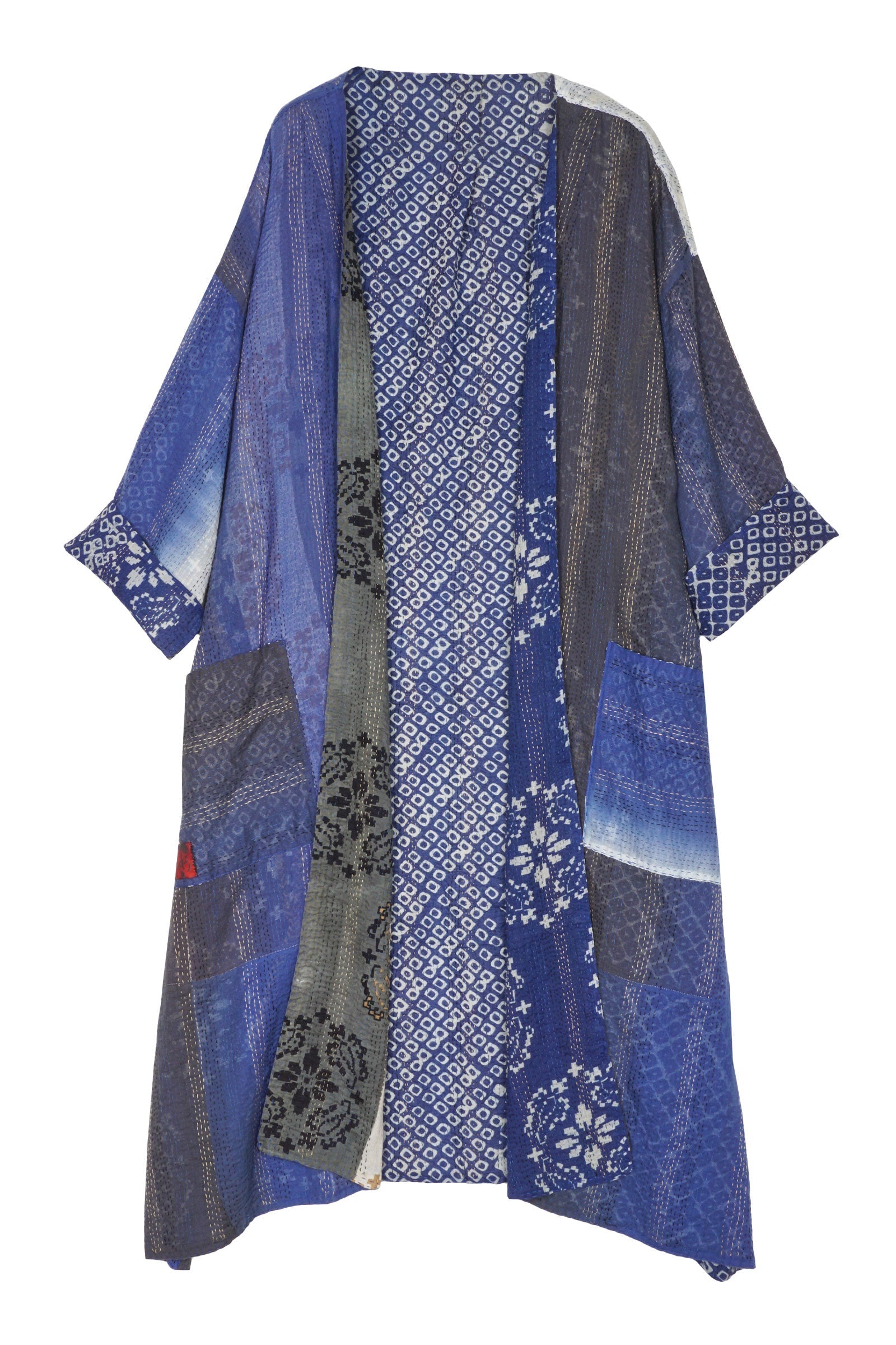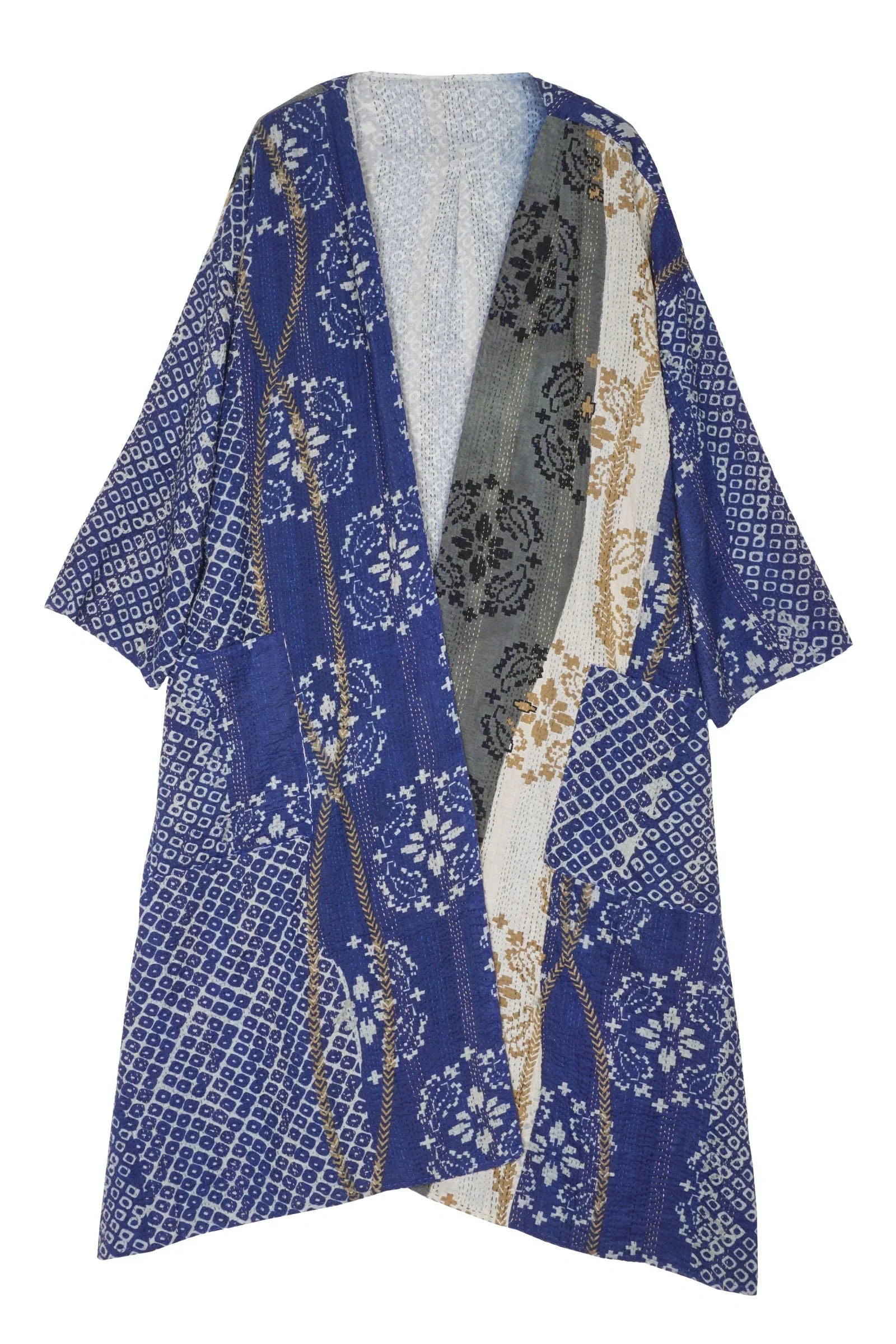 KIMONO COTTON KANTHA LONG DUSTER - kc2328-blu -