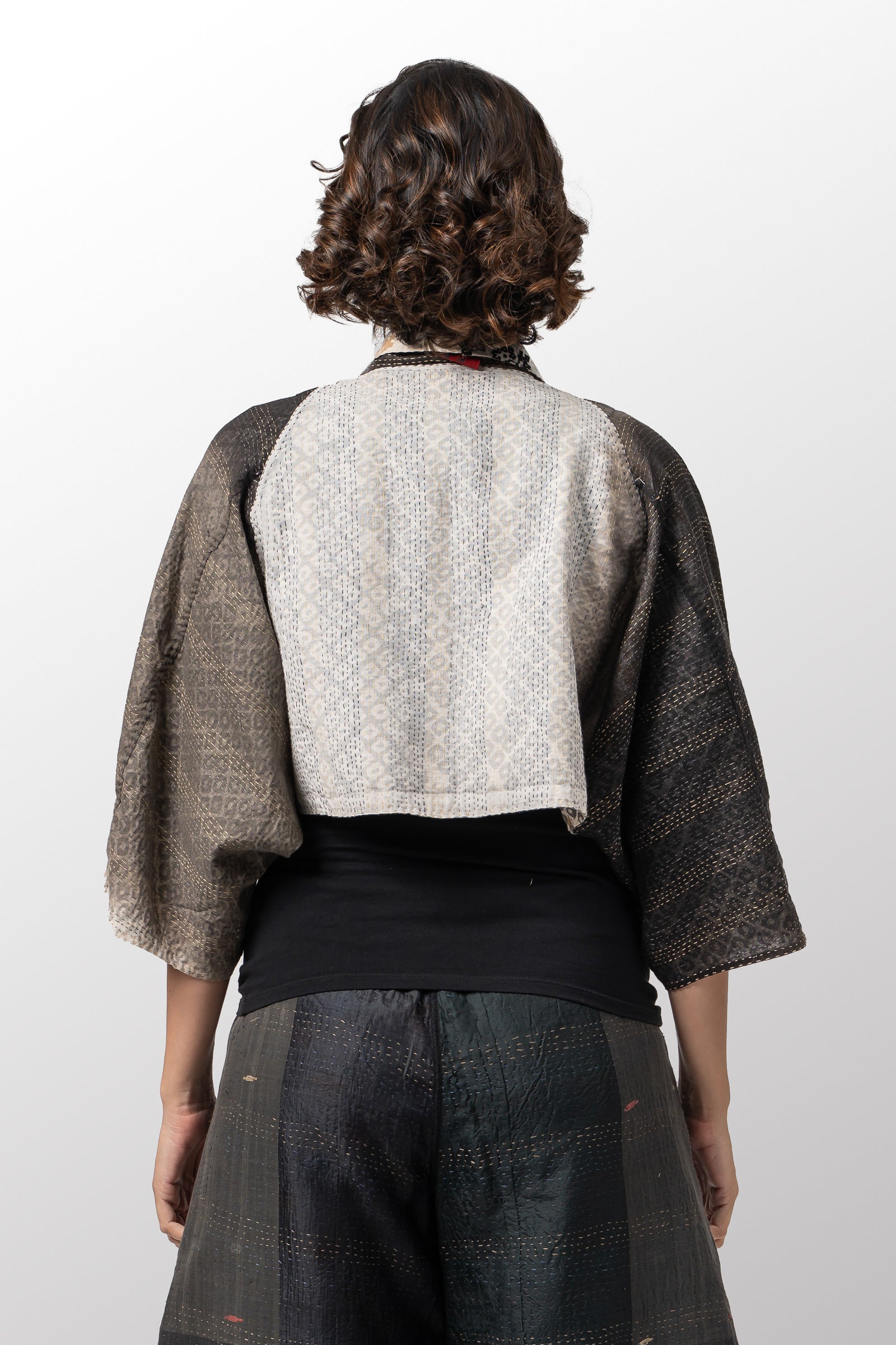 KIMONO COTTON KANTHA PUFF SLV. SHRUG - kc2062-gry -