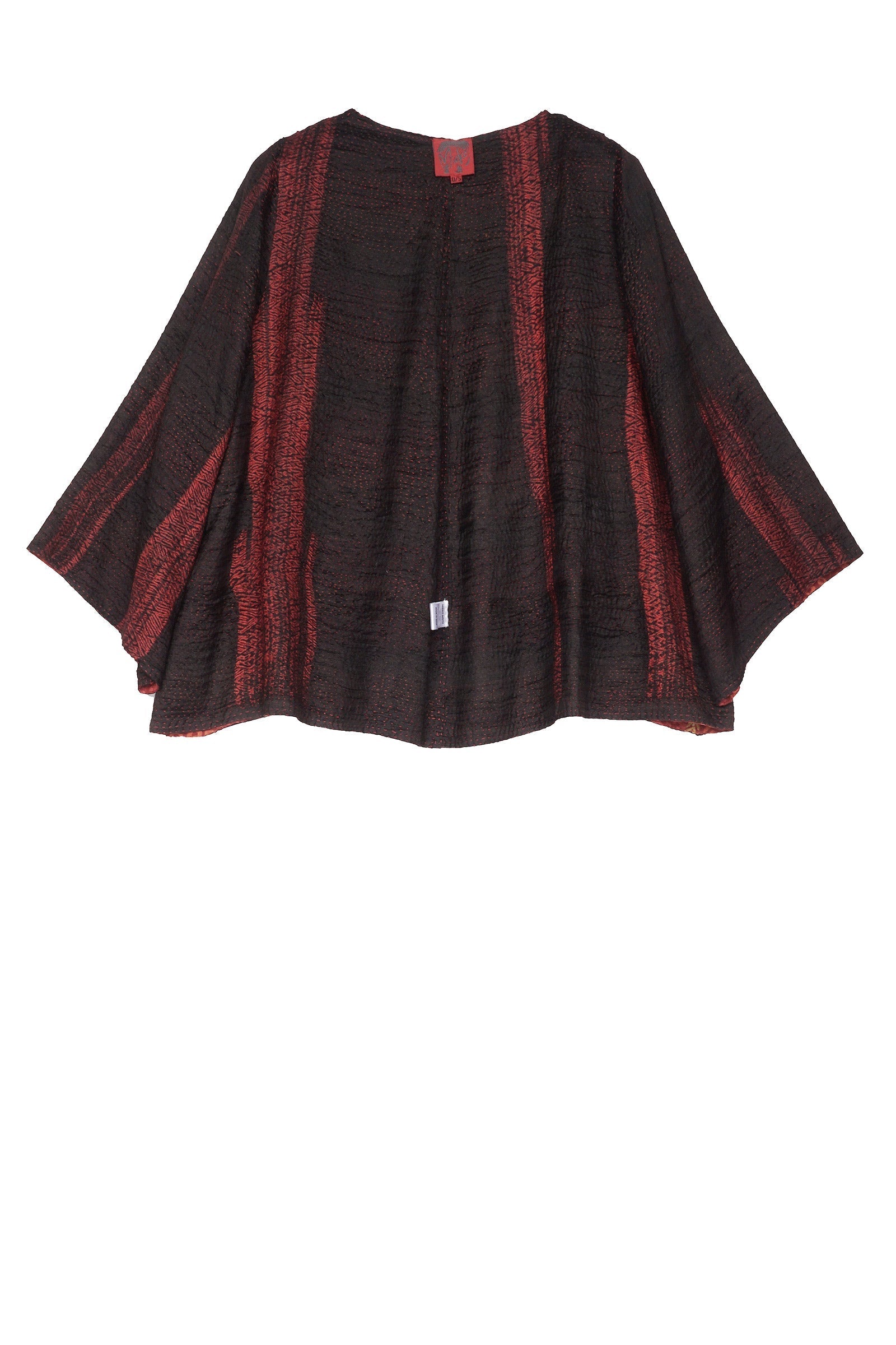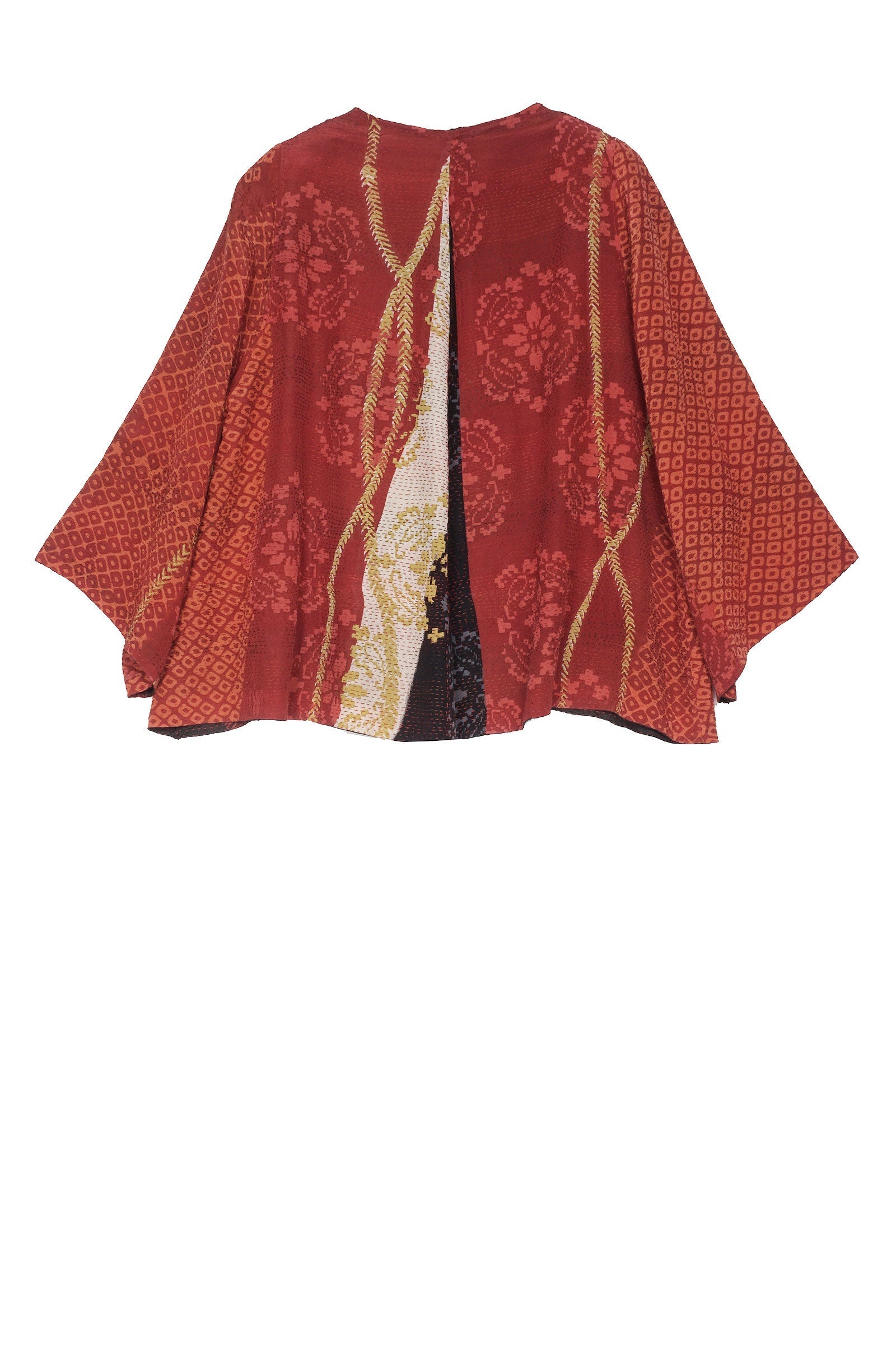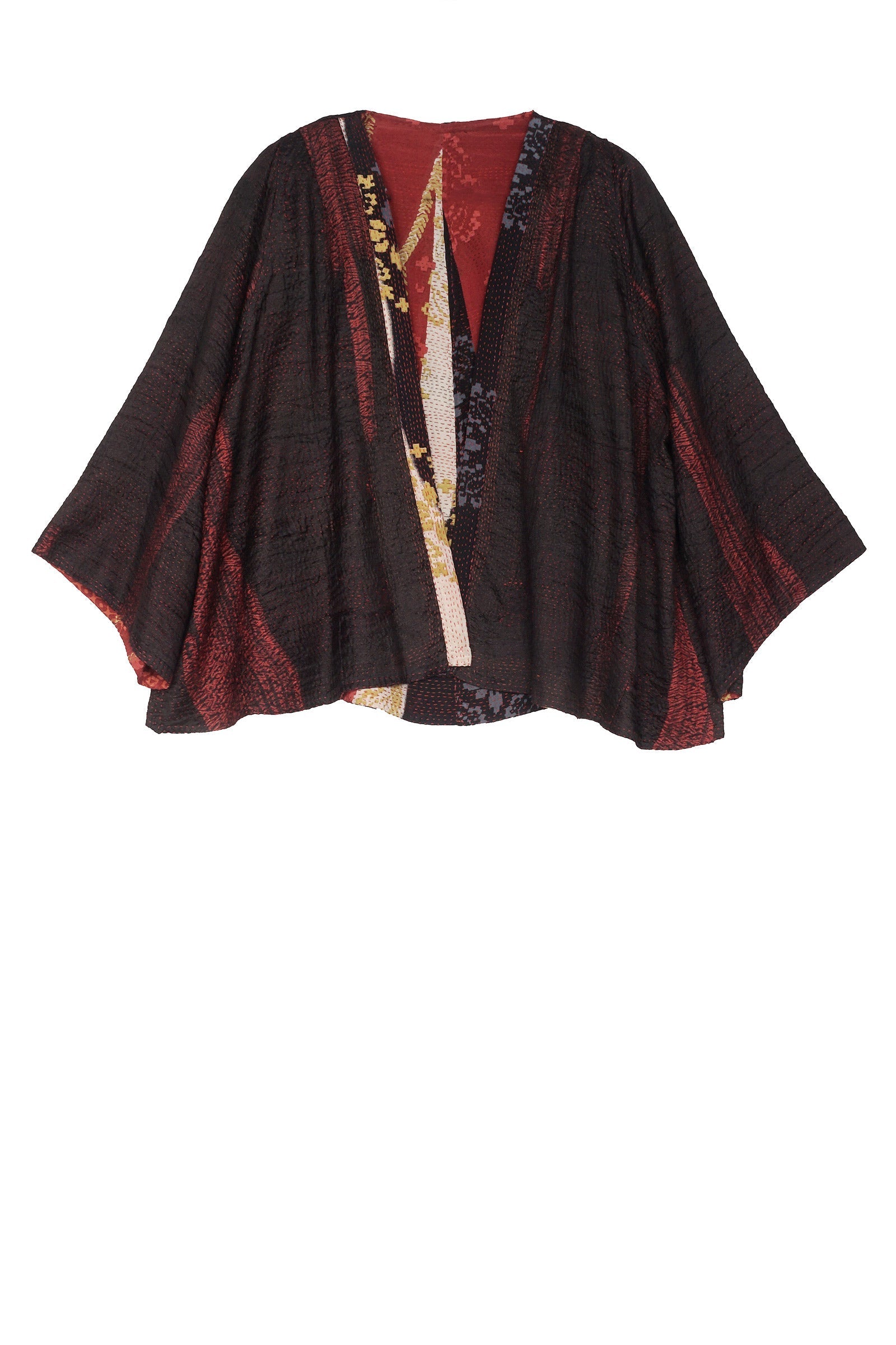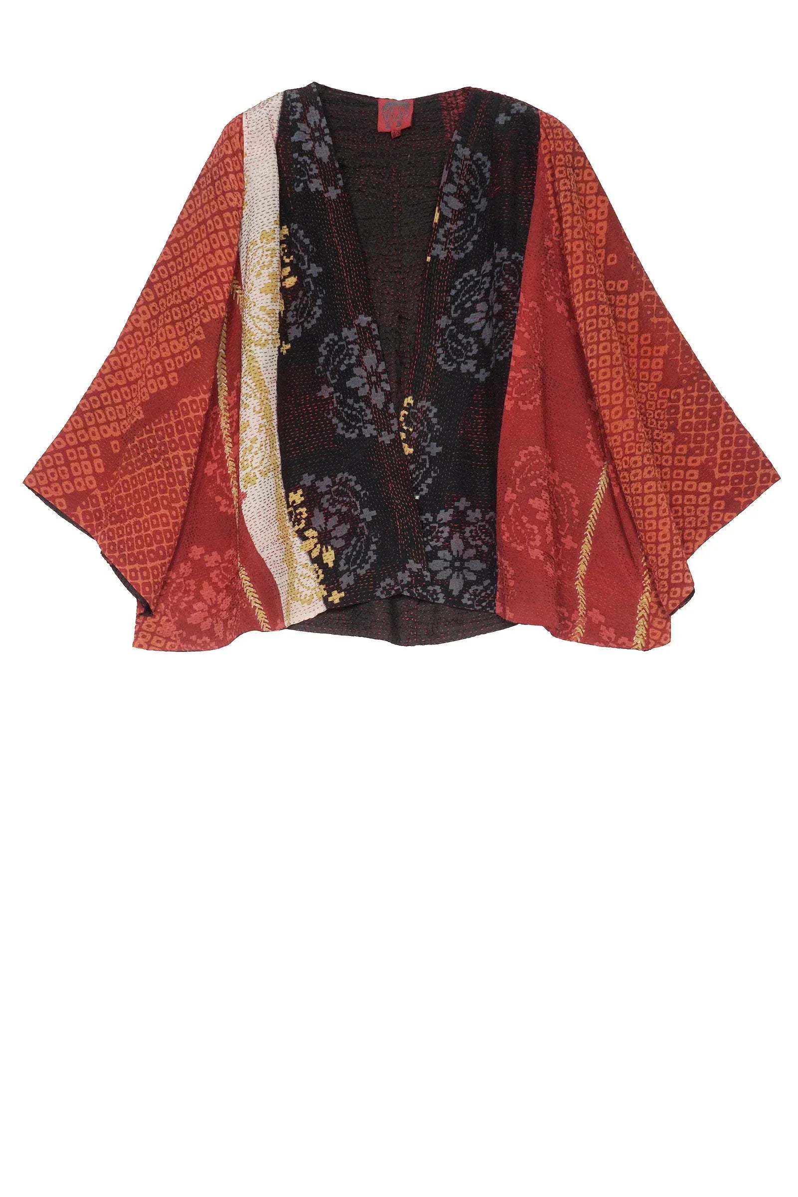 KIMONO PRINT KANTHA BELL SHAPE JKT - kp2048-red -