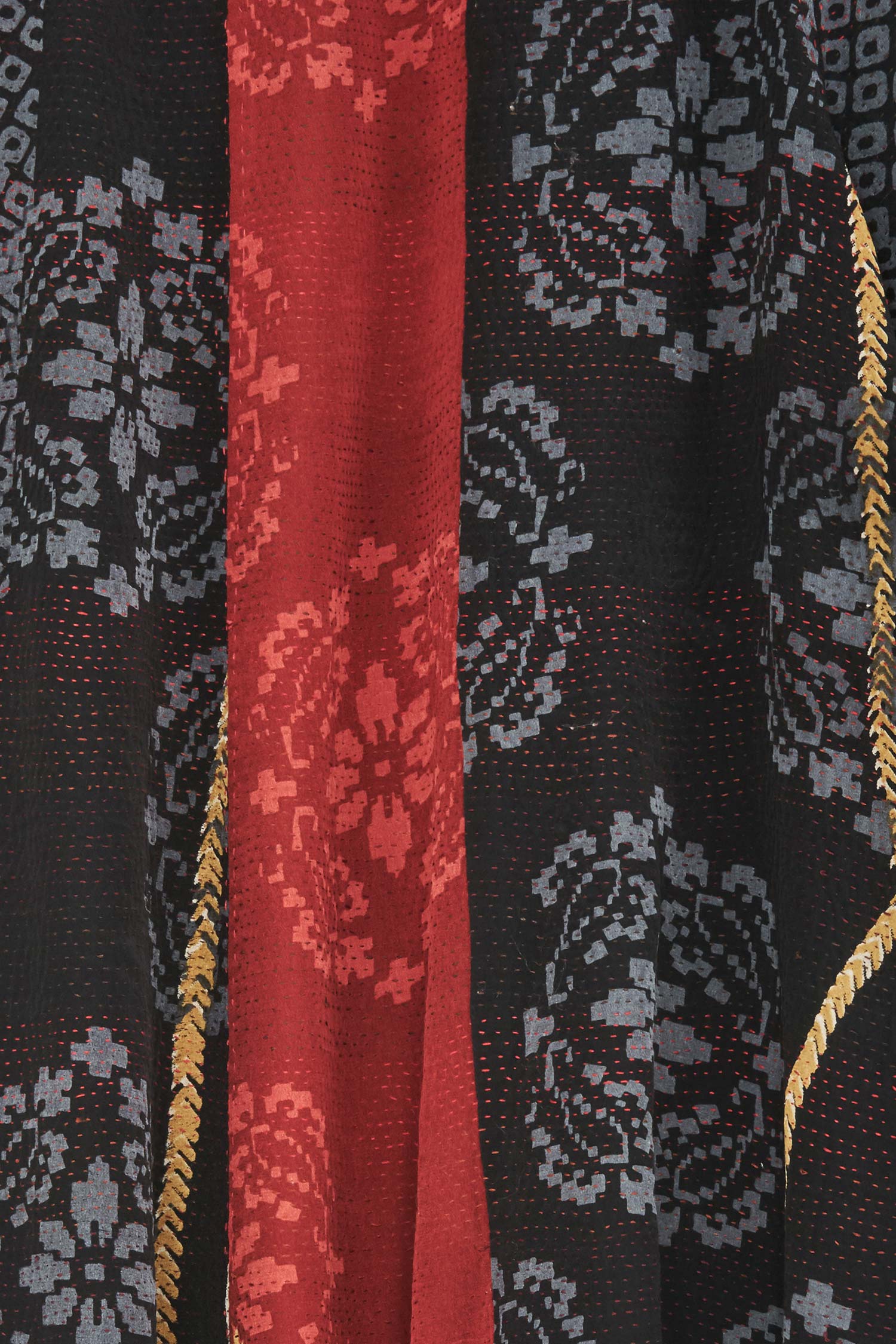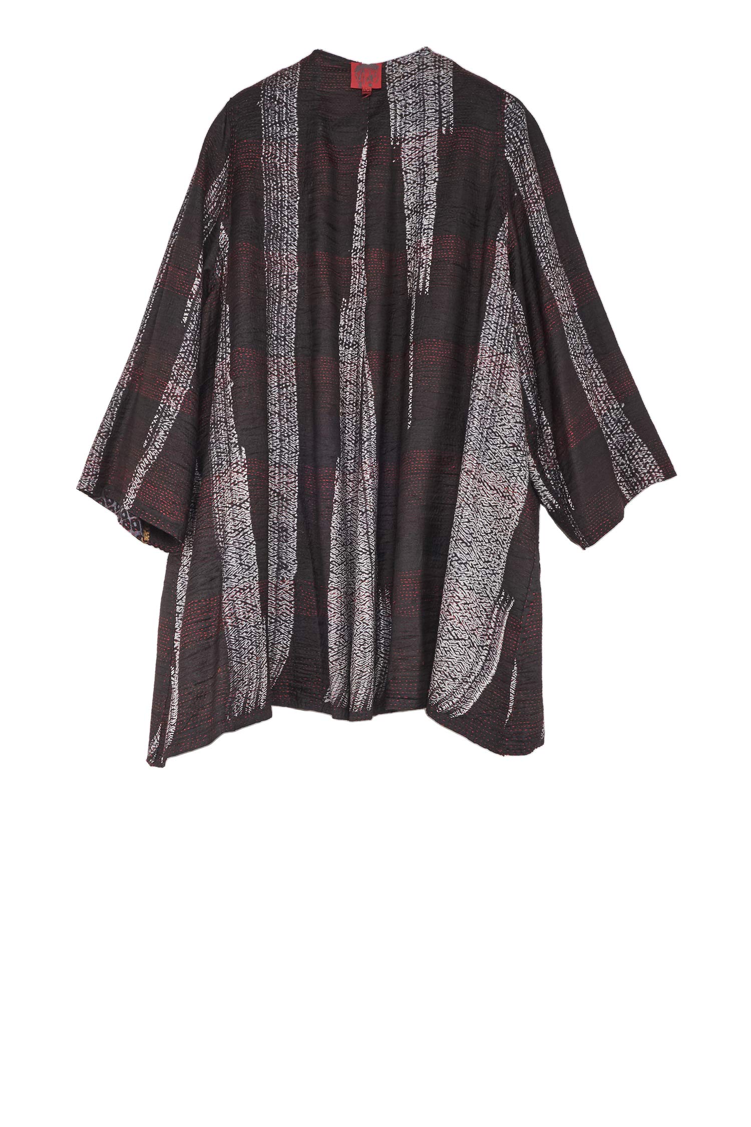 KIMONO PRINT KANTHA BELL SHAPE LONG JKT - kp2051-blk -