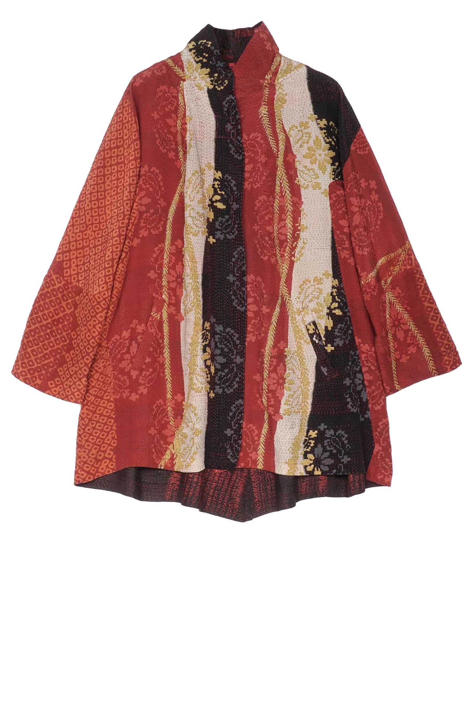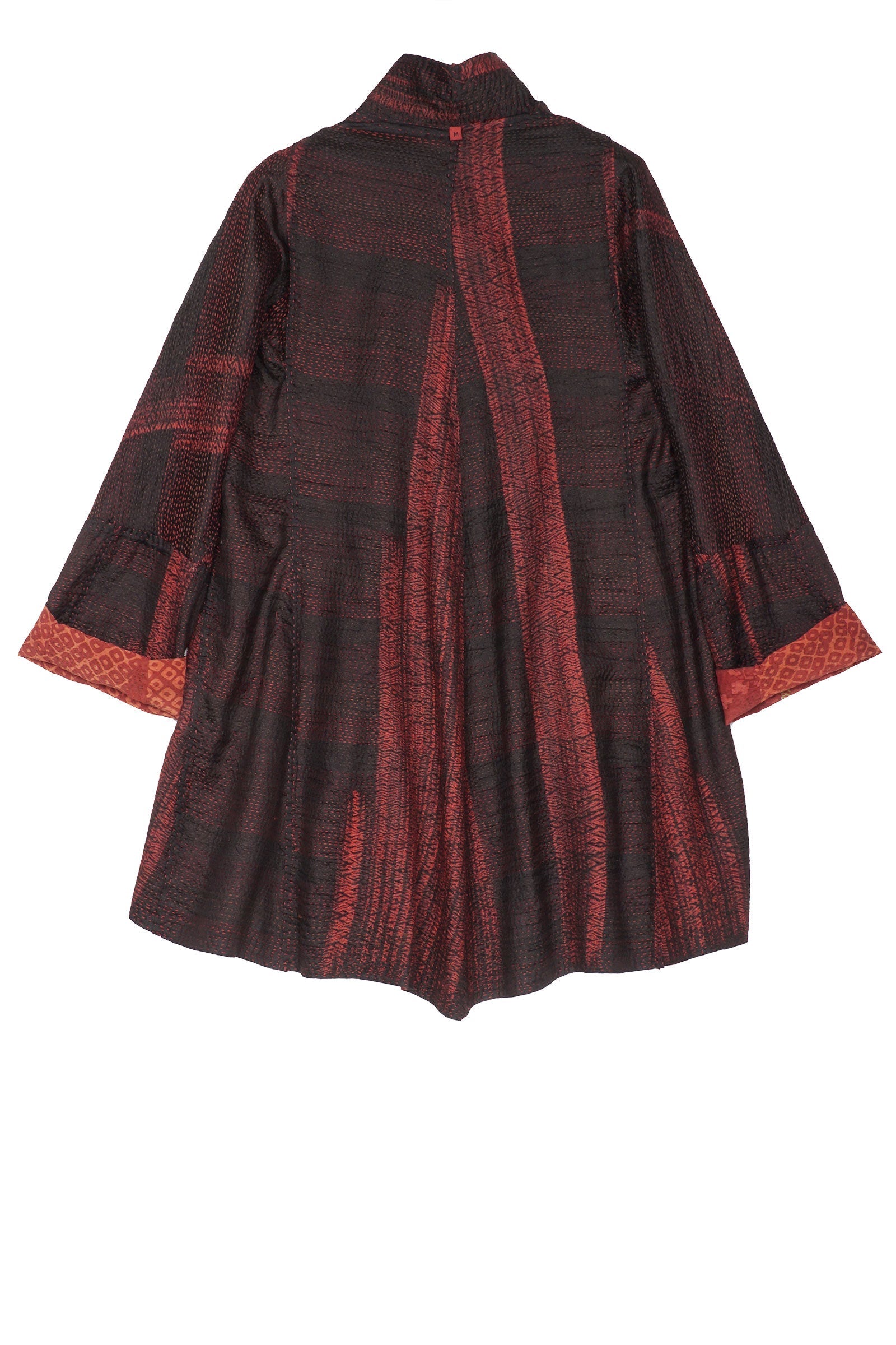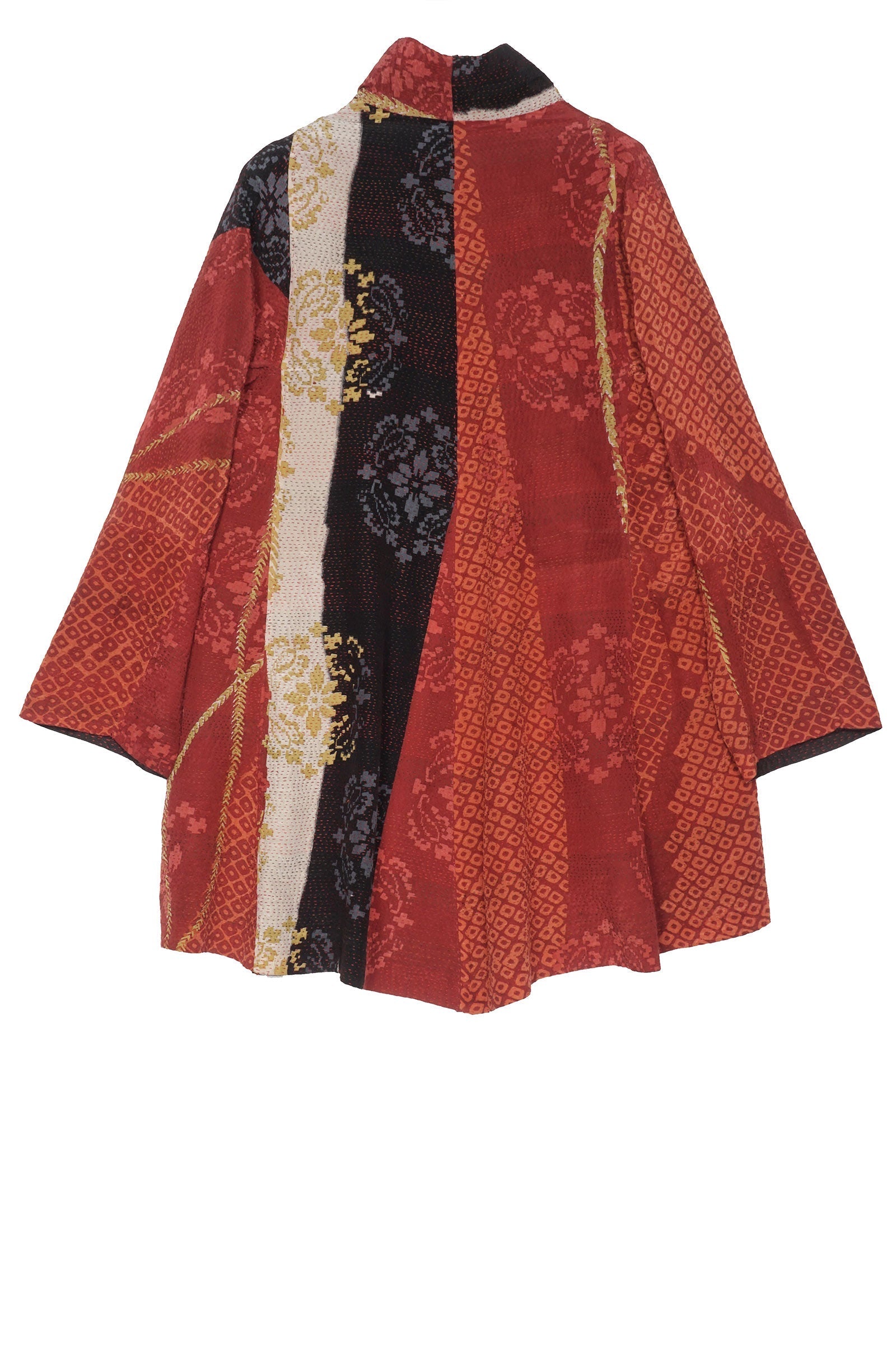 KIMONO PRINT KANTHA FLARE LONG JKT - kp2021-red -