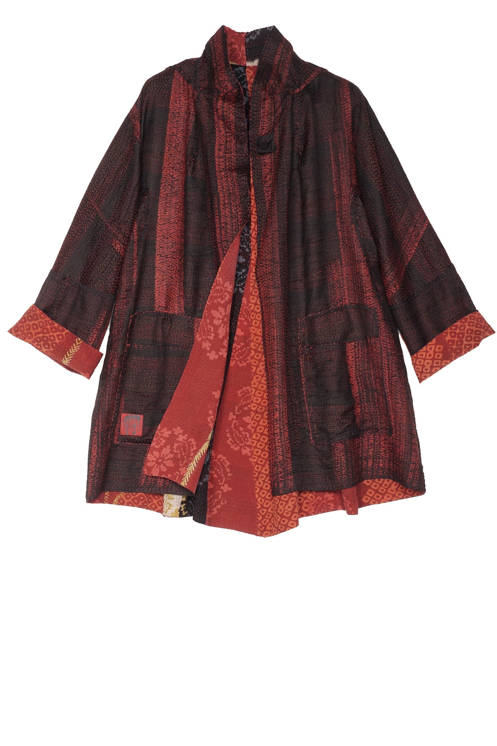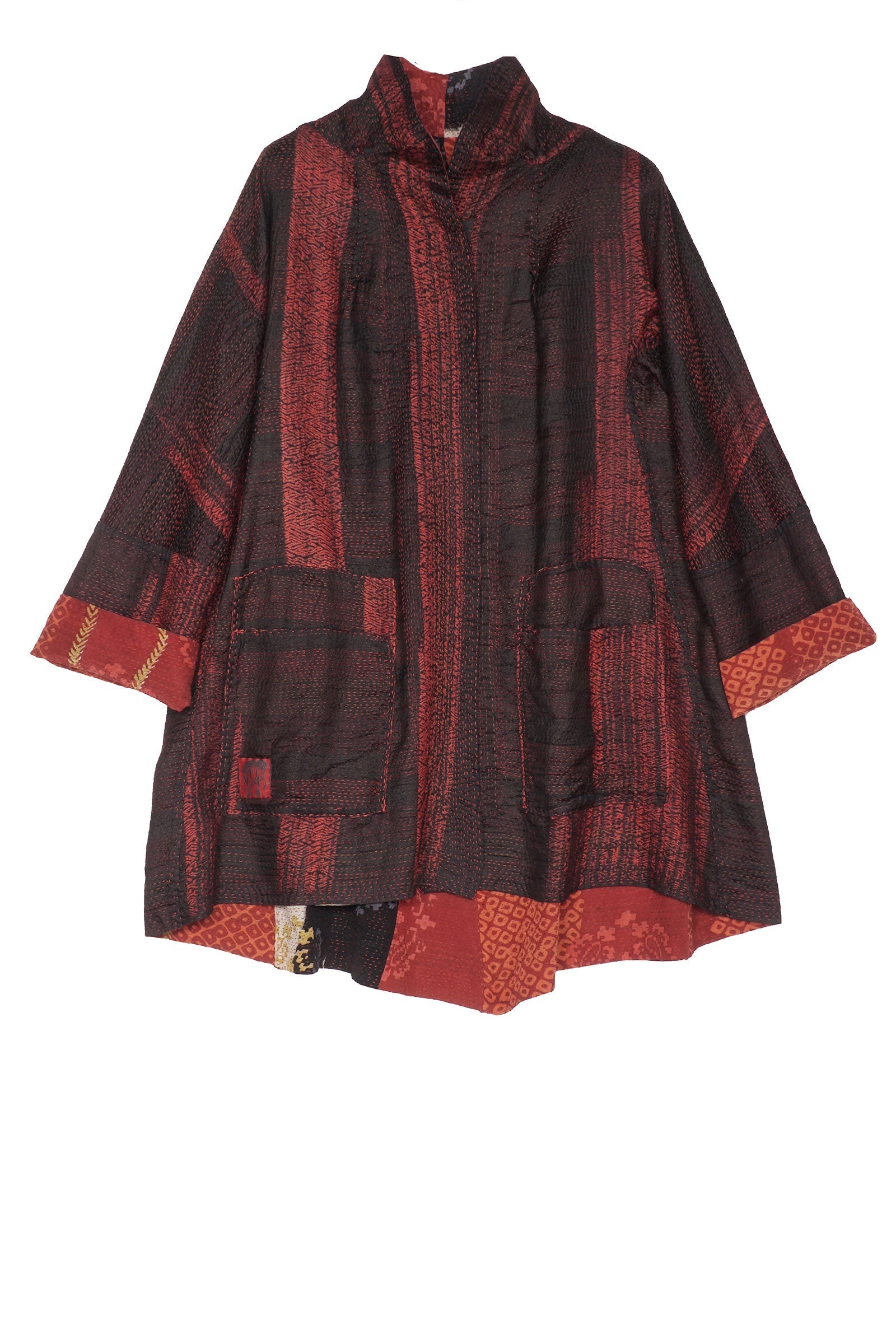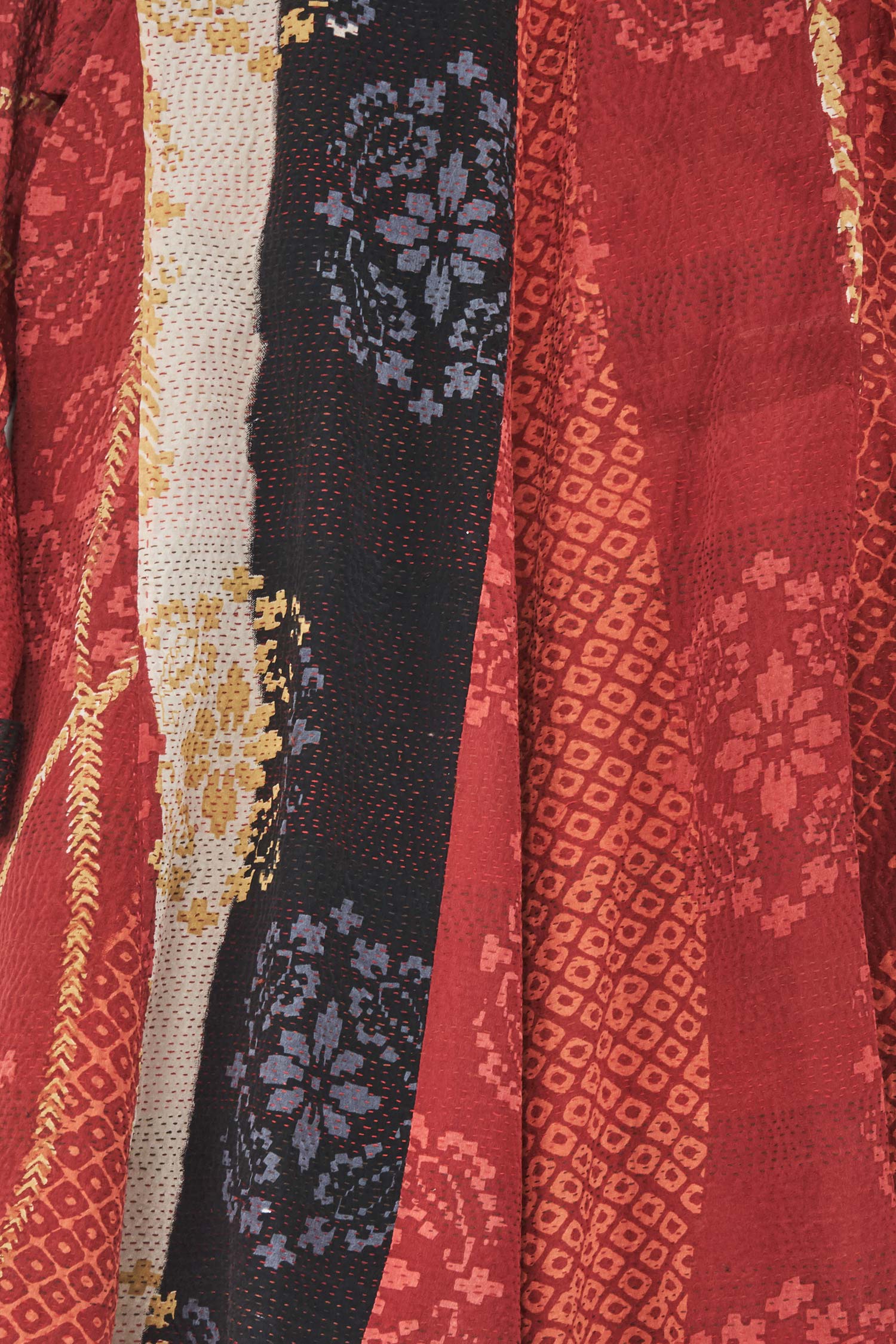 KIMONO PRINT KANTHA FLARE LONG JKT - kp2021-red -
