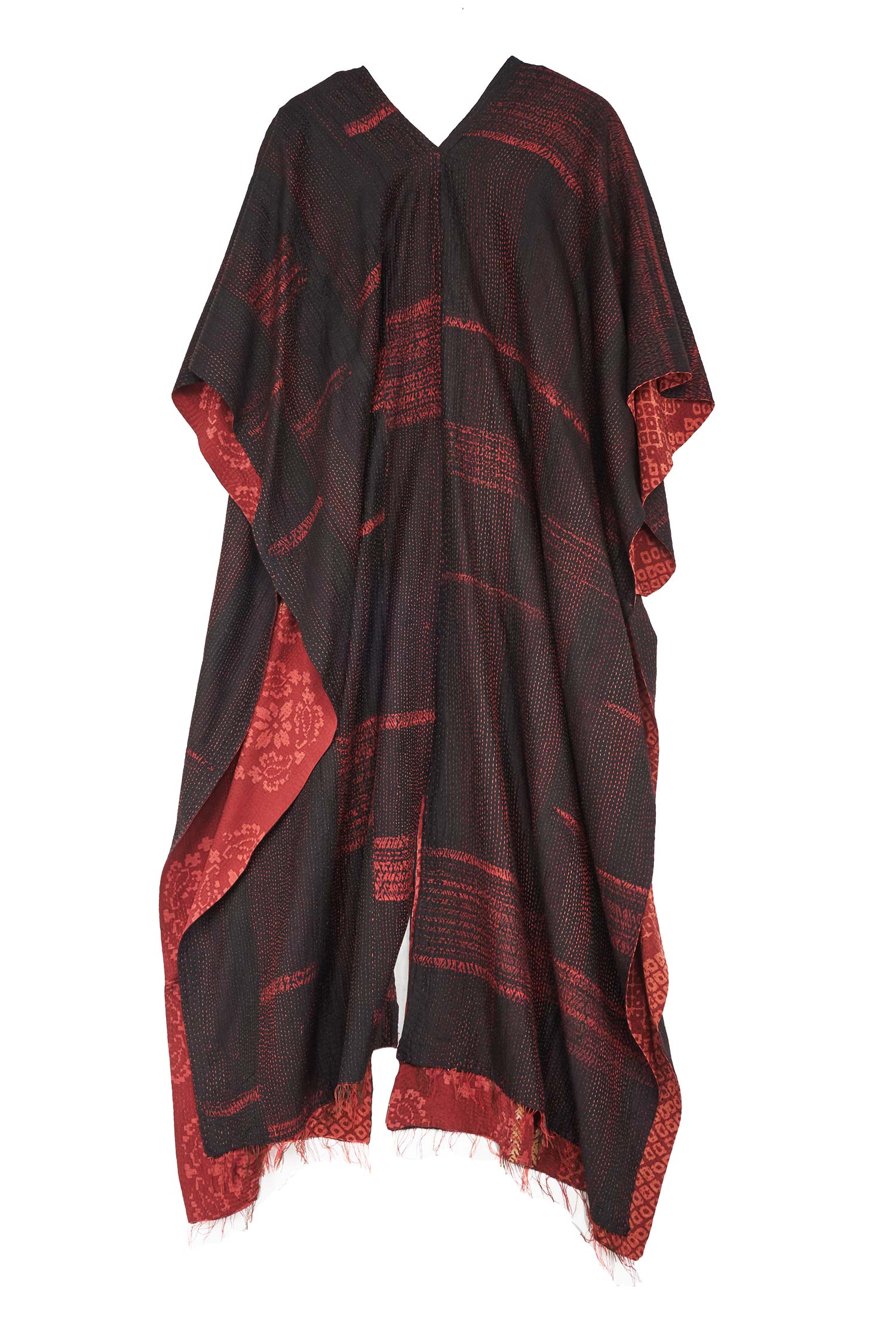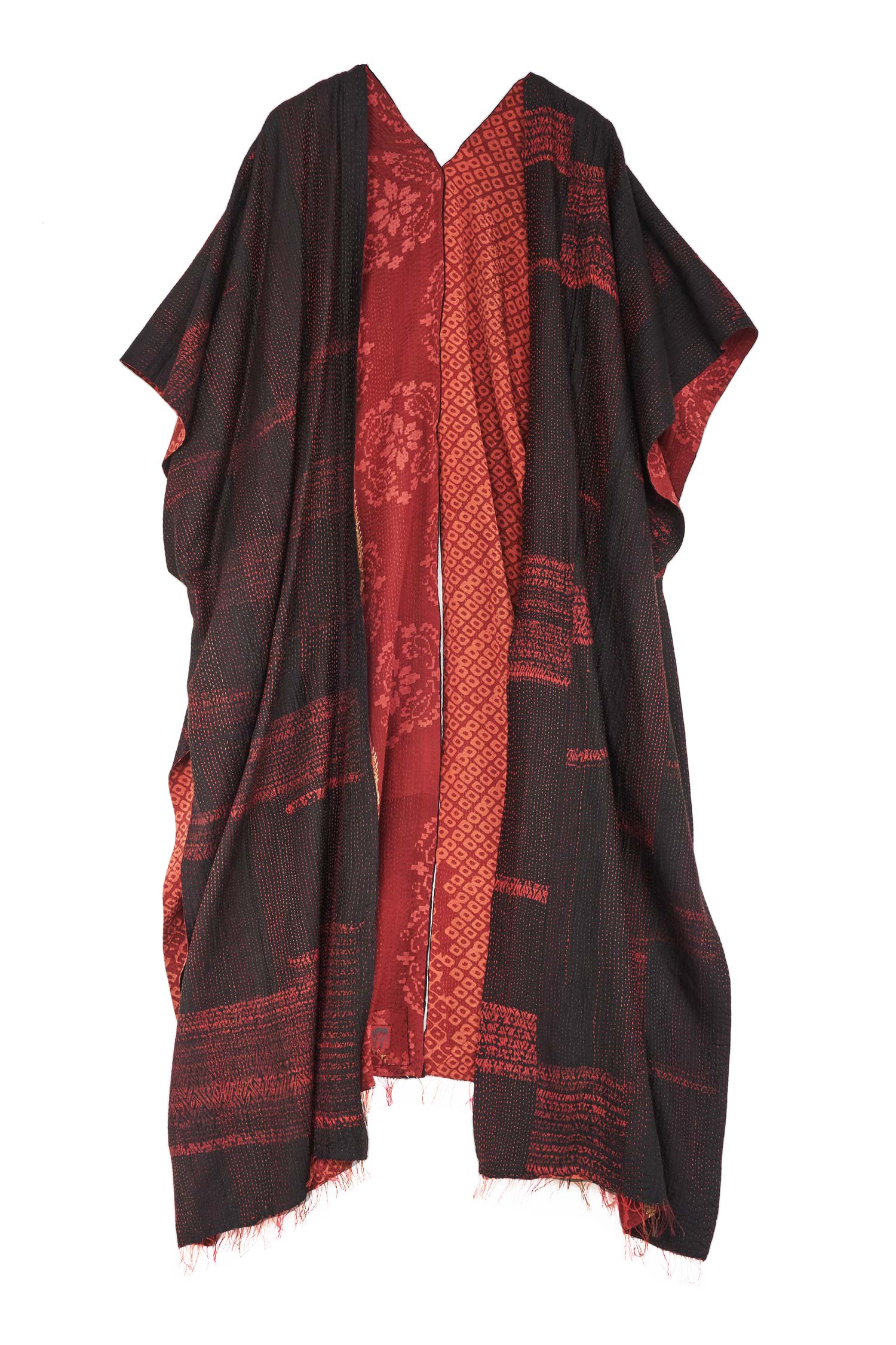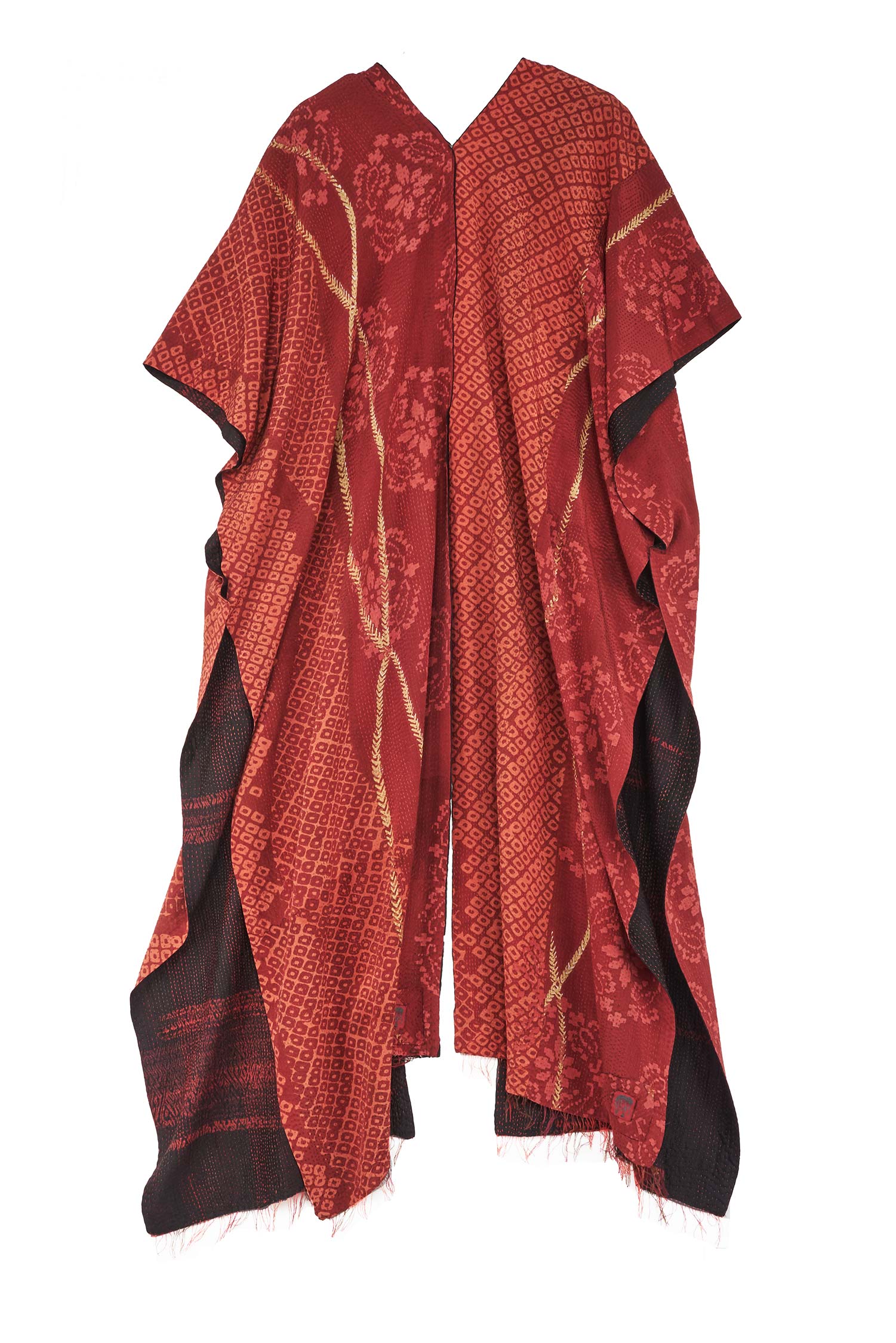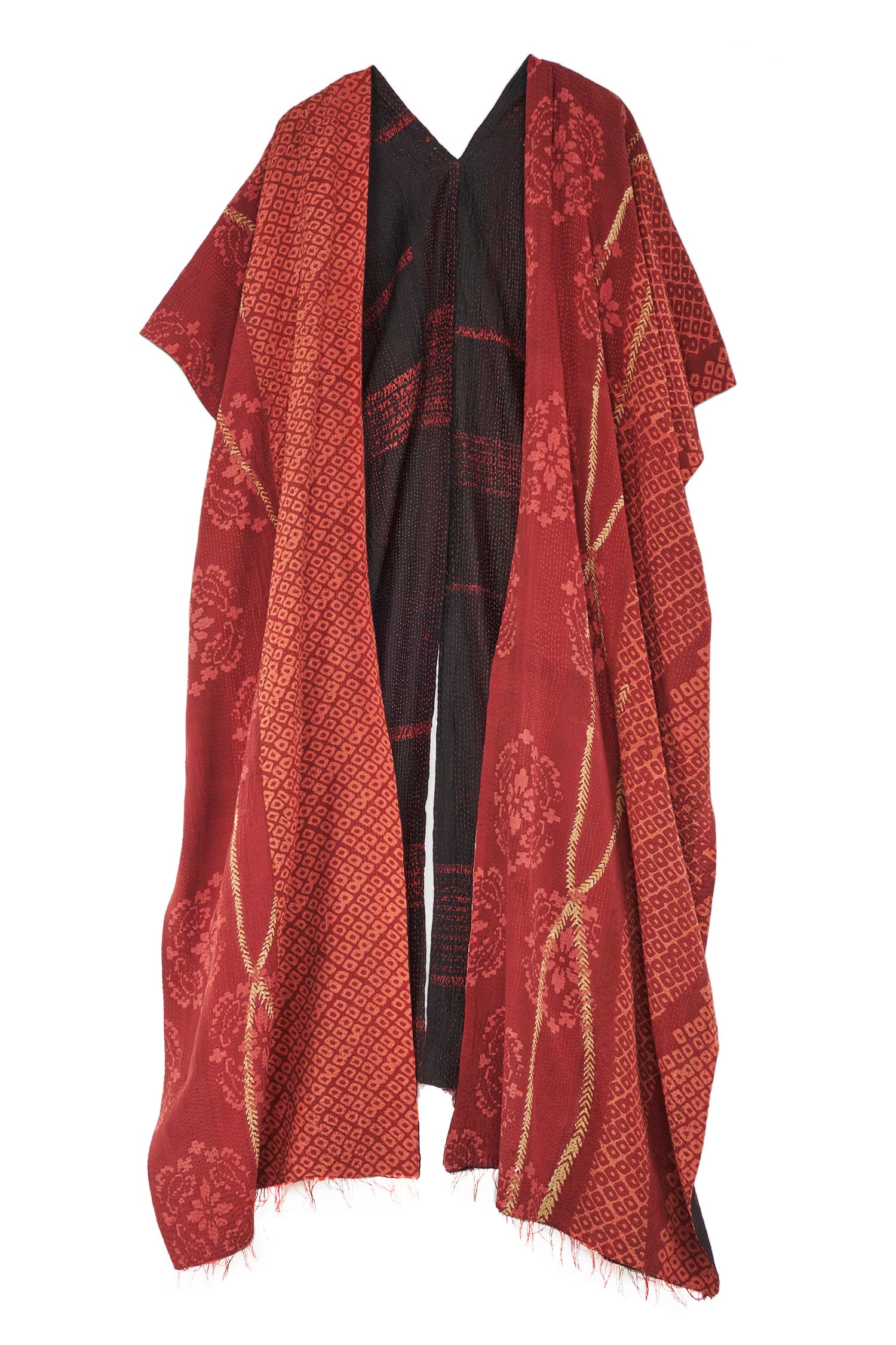 KIMONO PRINT KANTHA KIMONO PONCHO - kp2321-red -
