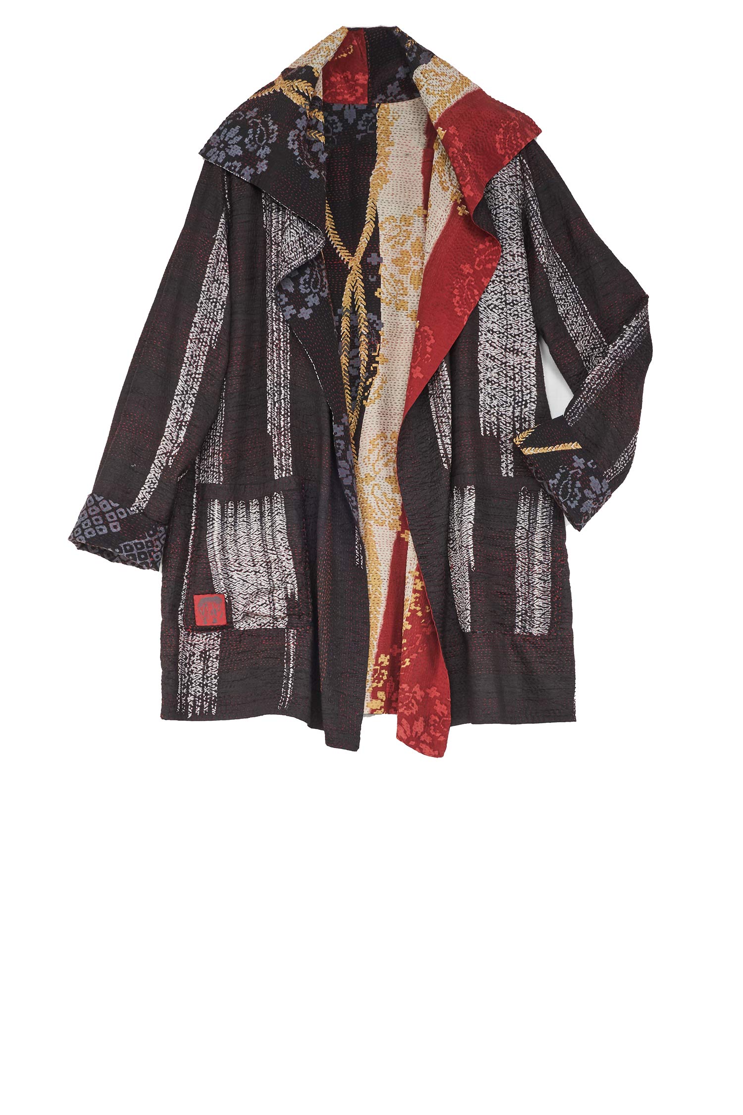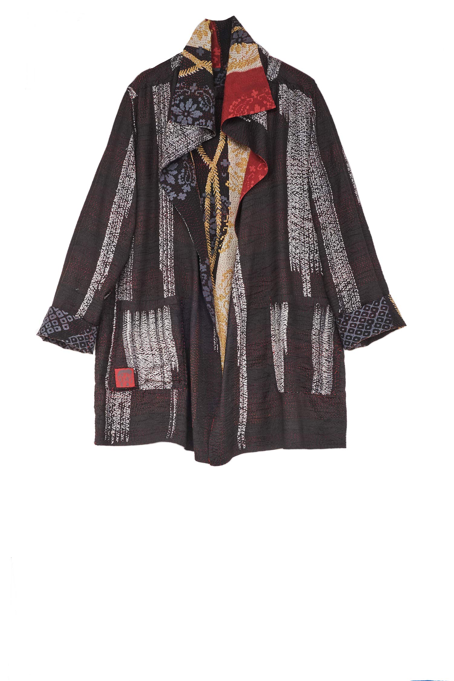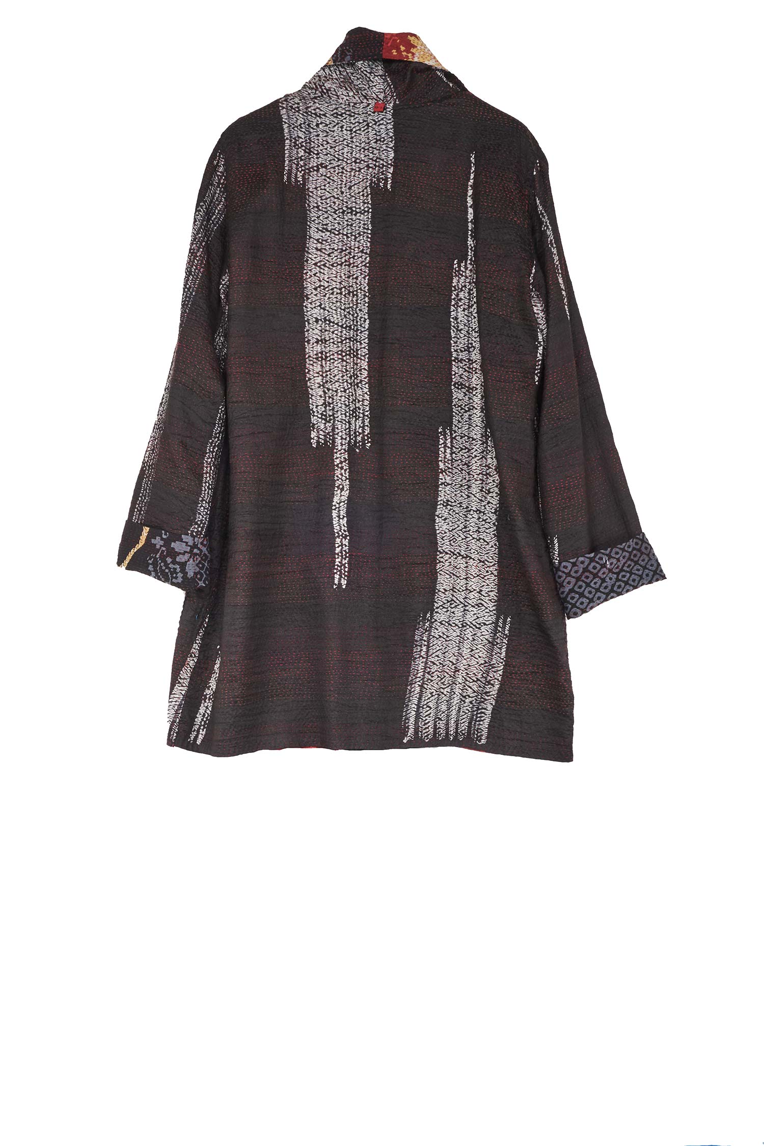 KIMONO PRINT KANTHA POCKET JKT - kp2002-blk -