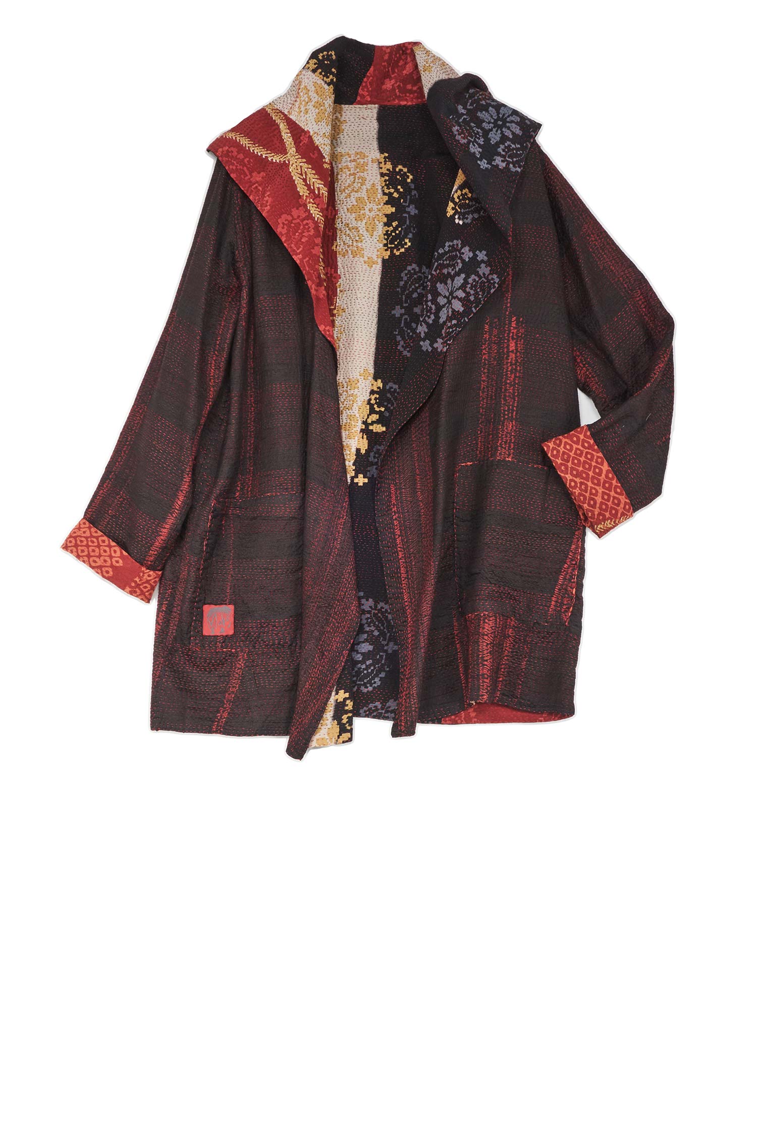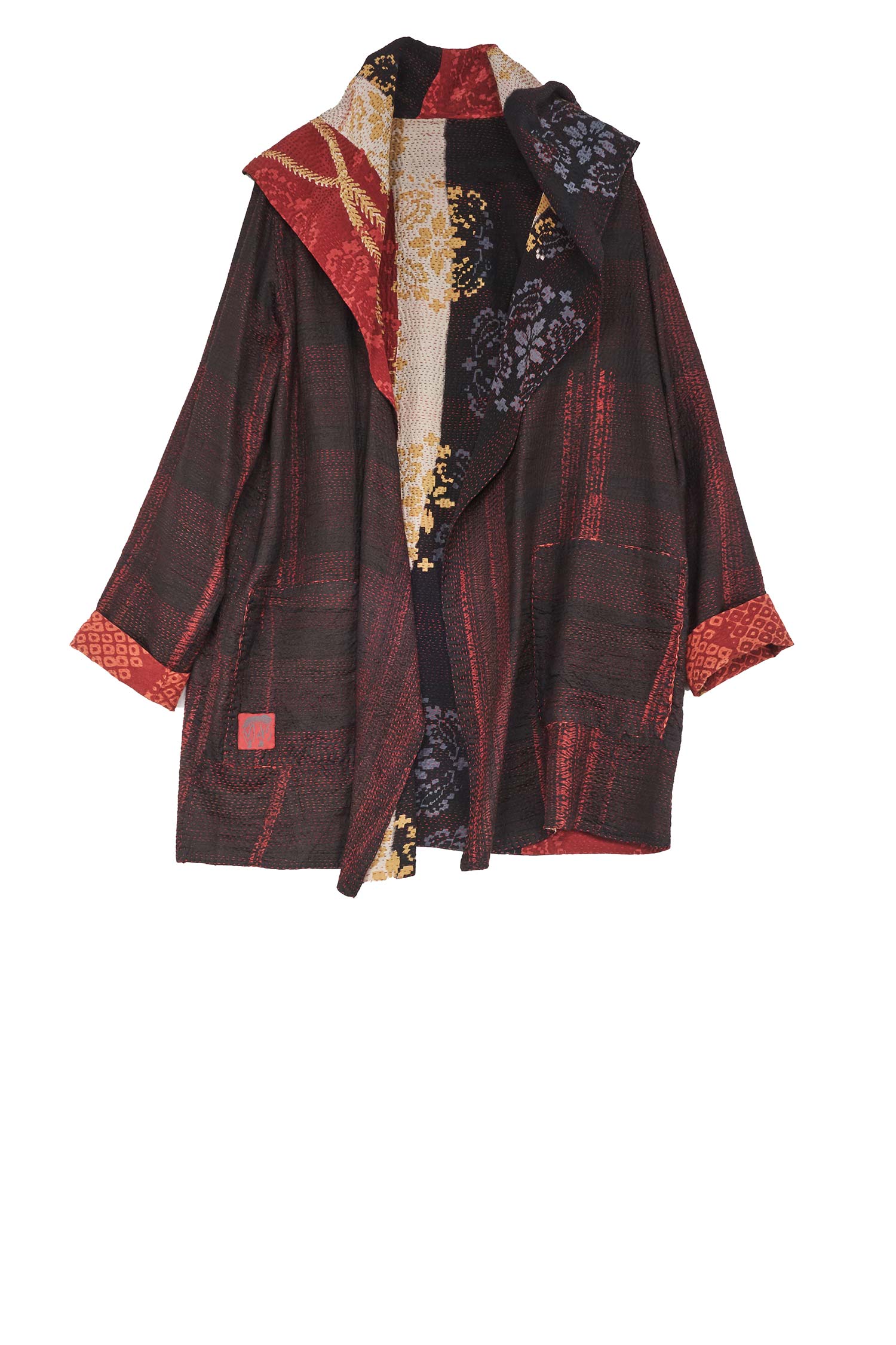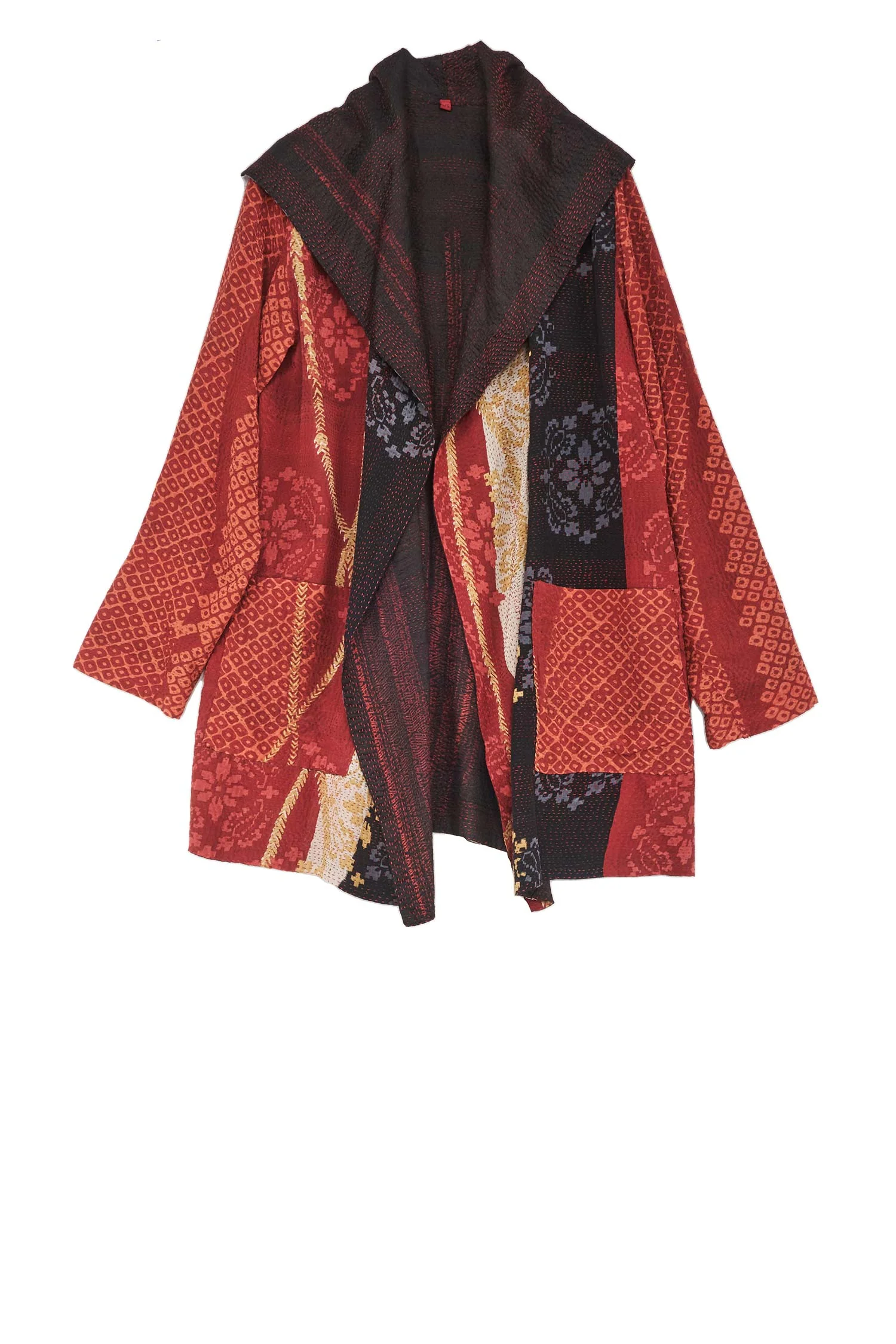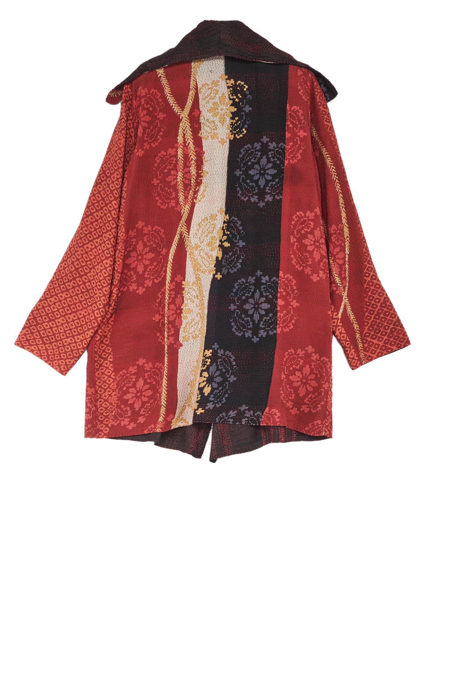 KIMONO PRINT KANTHA POCKET JKT - kp2002-red -