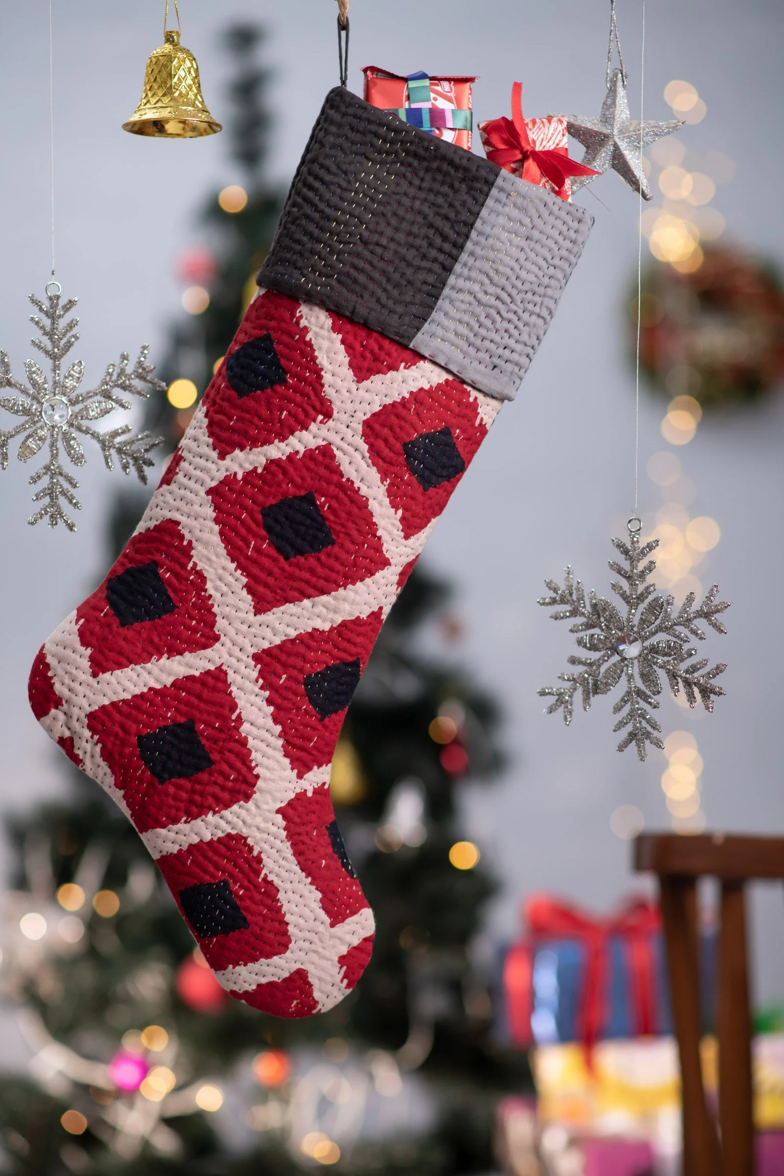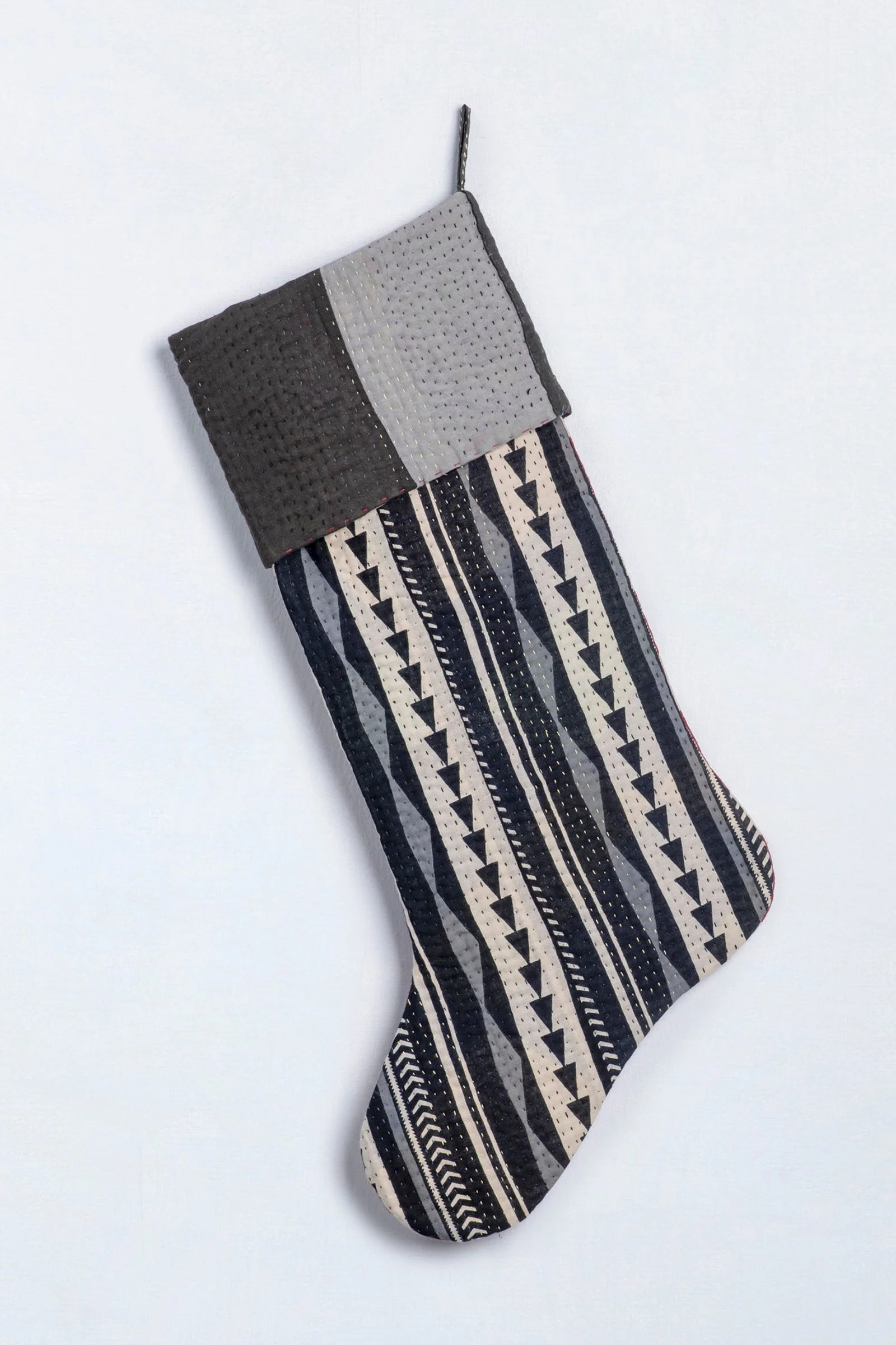 Monotone Ikat Handmade Vintage Kantha Holiday Stocking -Red -