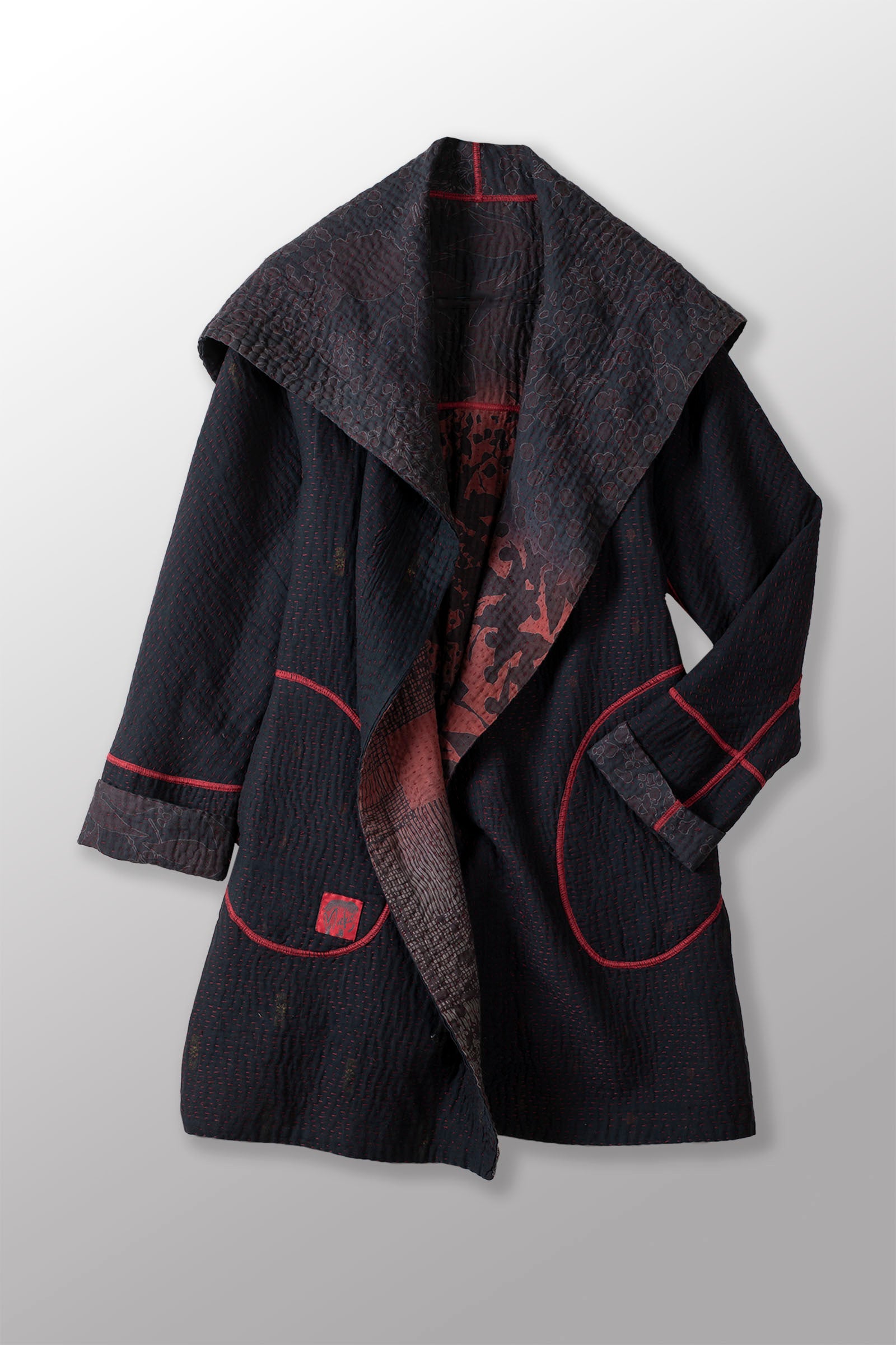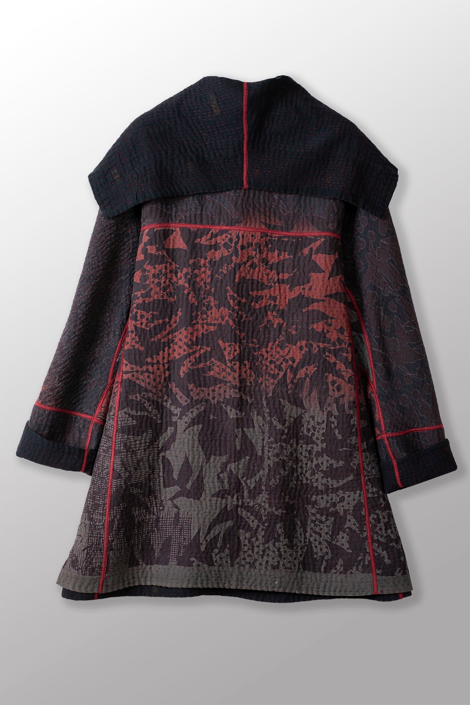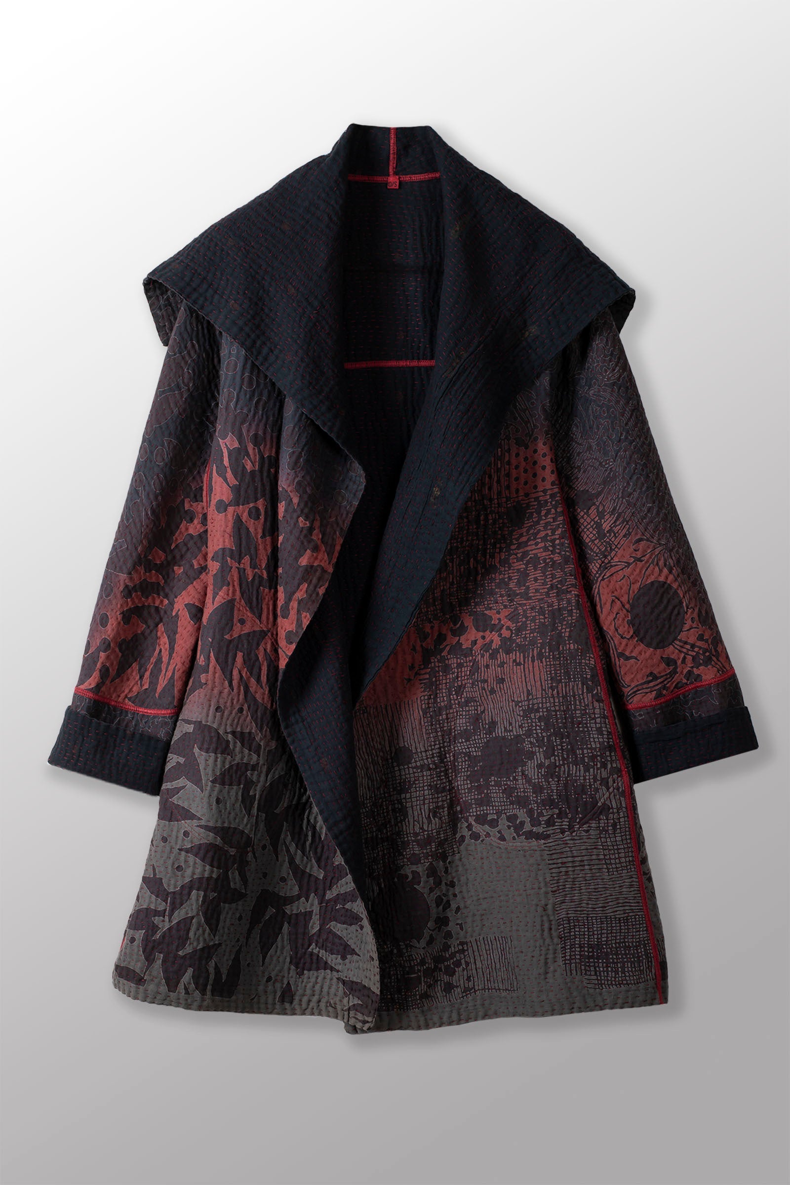 MONOTONE TWILIGHT PRINT KANTHA A-LINE COAT P - tp4336-red -