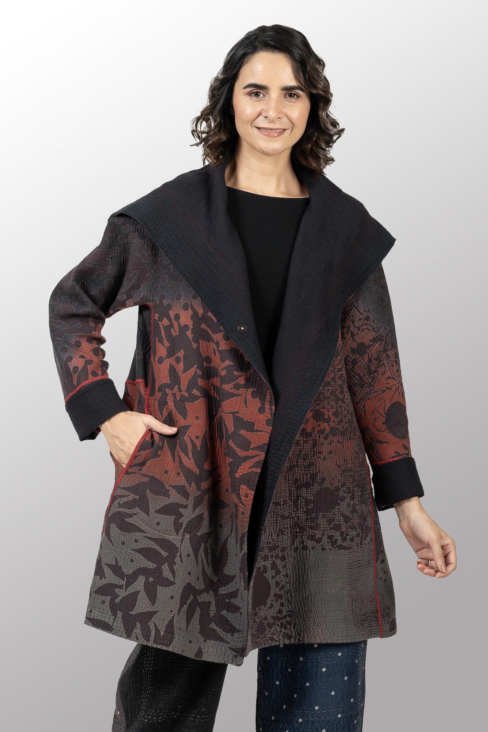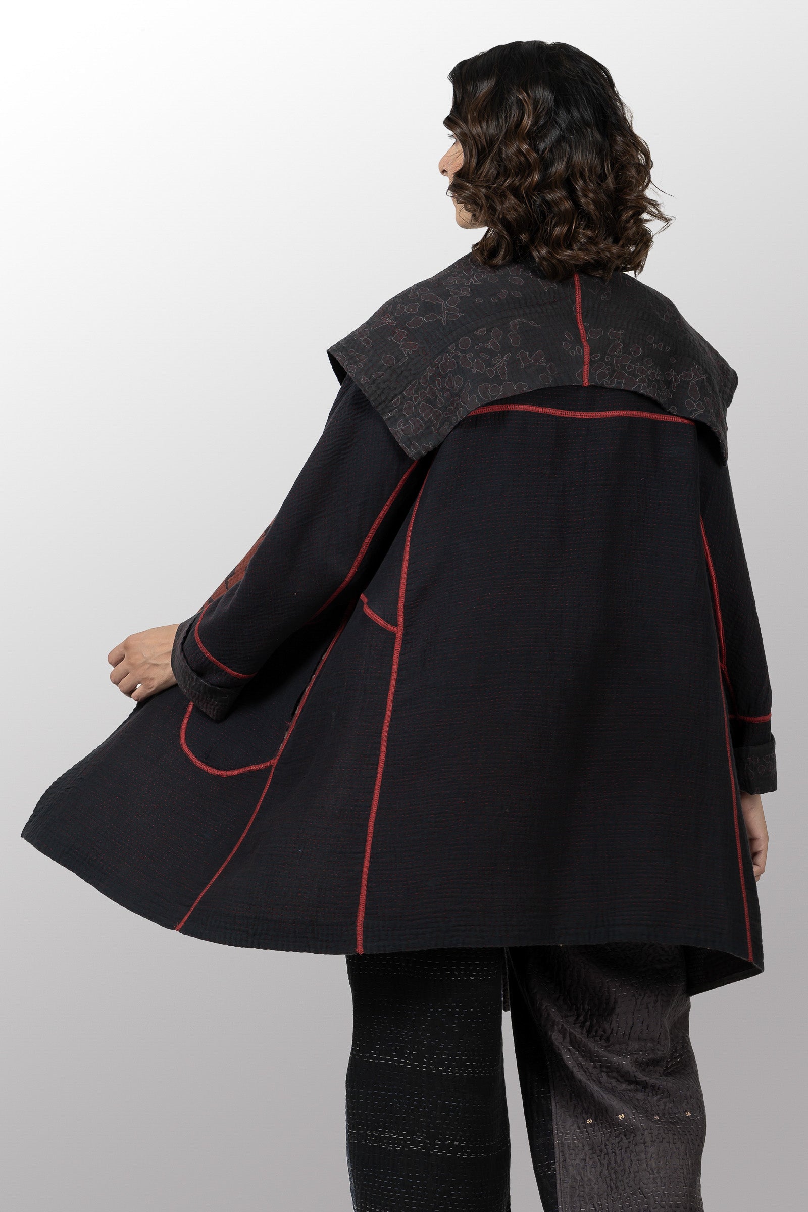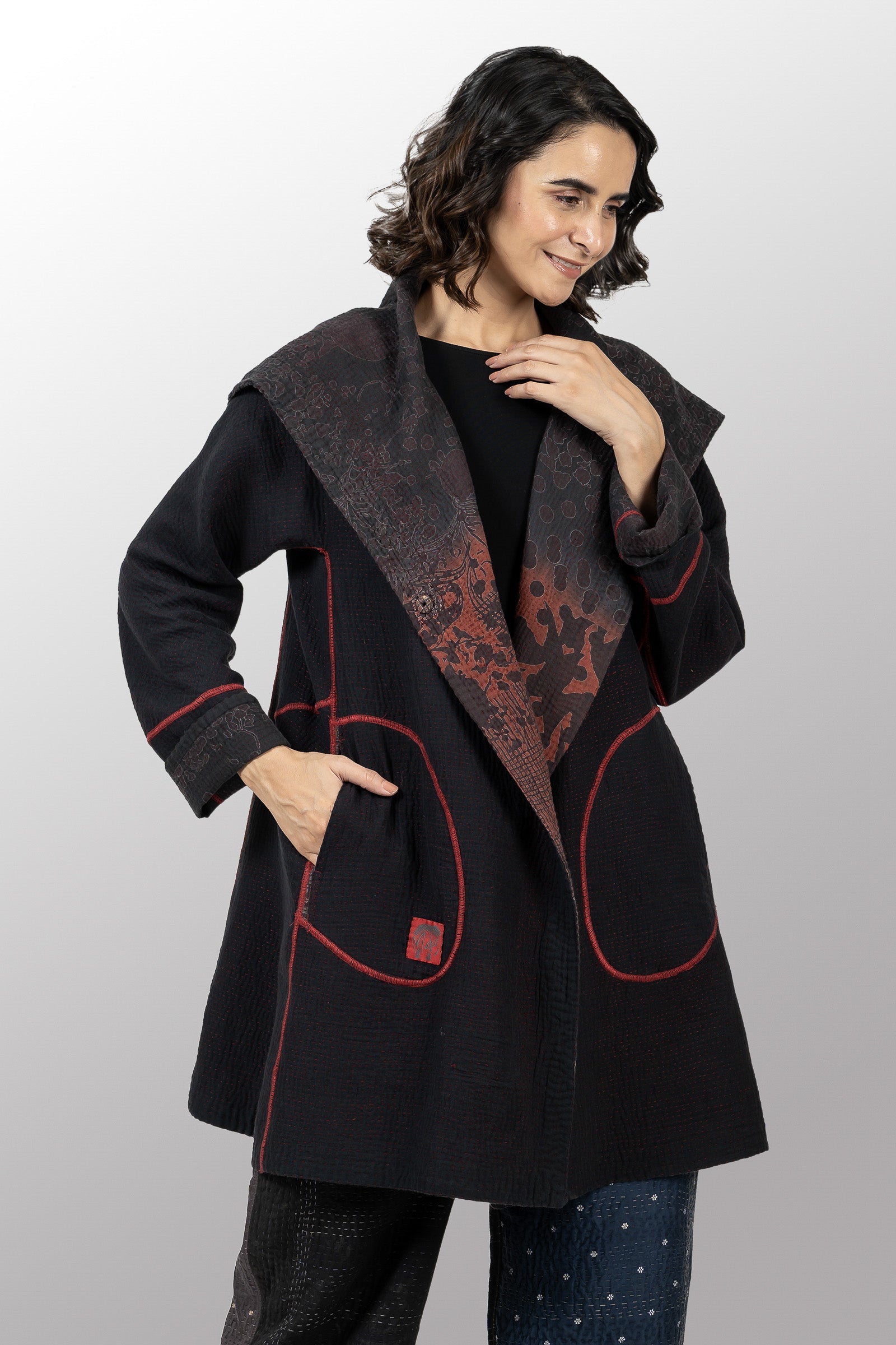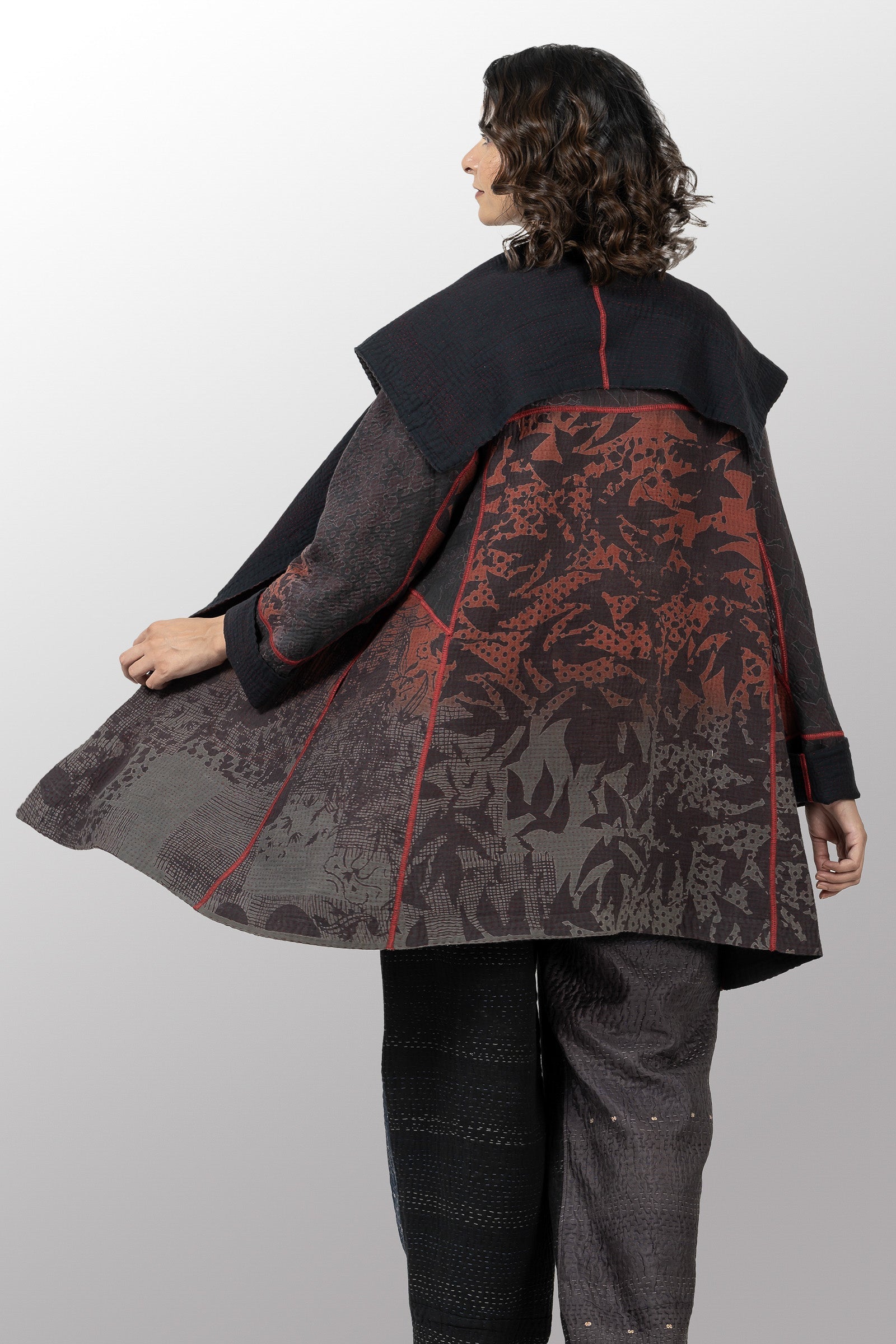 MONOTONE TWILIGHT PRINT KANTHA A-LINE COAT P - tp4336-red -
